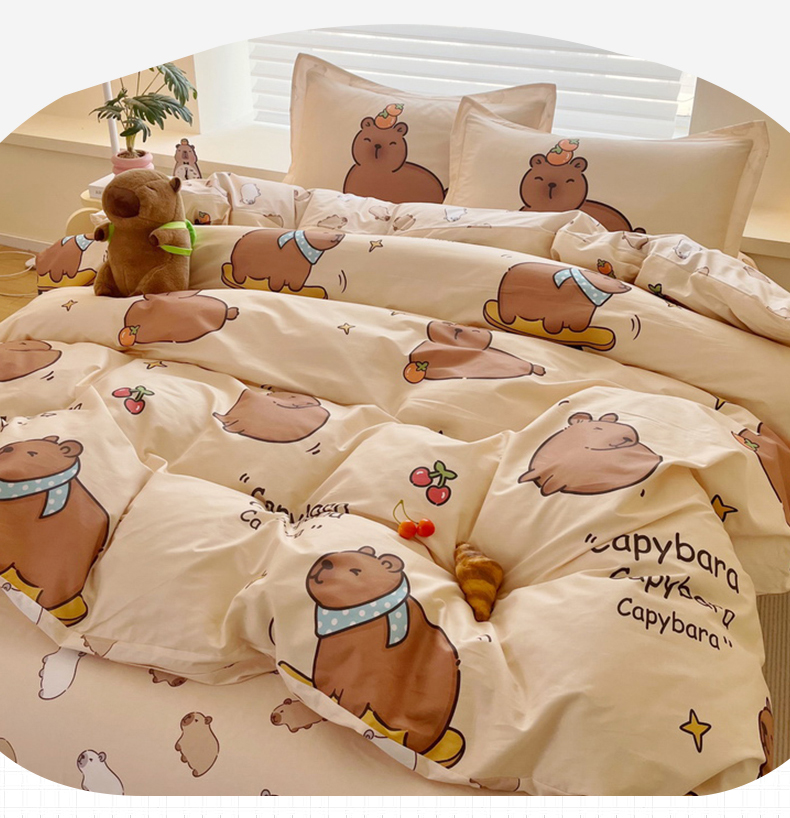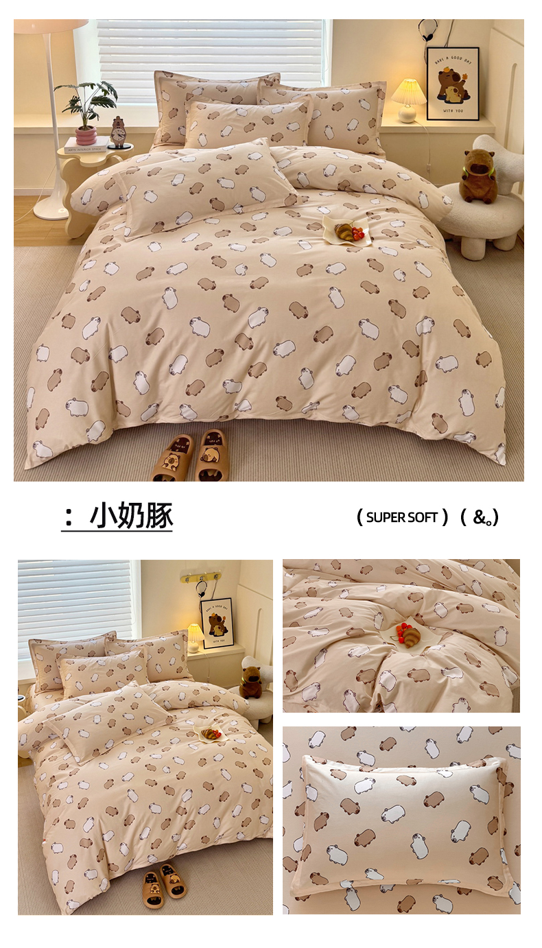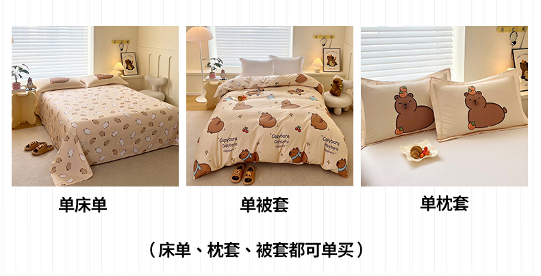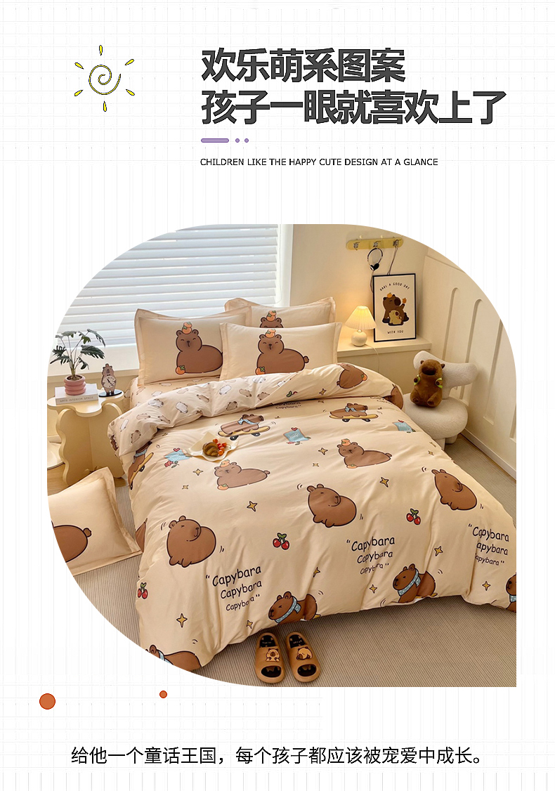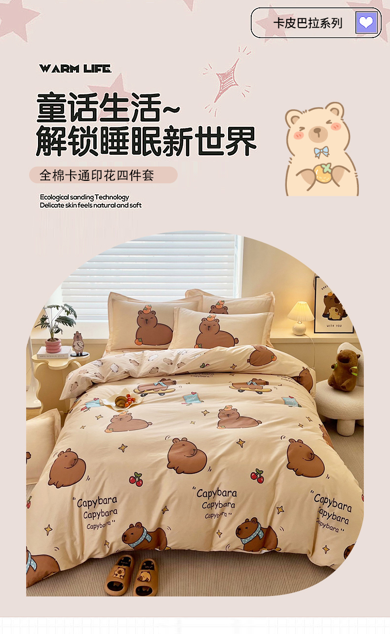 当前位置: 91家纺网 > 商品网购 > 床品套件 > 四件套 > 全棉普通四件套 > 蘭菲家纺 2025新款全棉小版卡皮巴拉系列四件套 卡豚