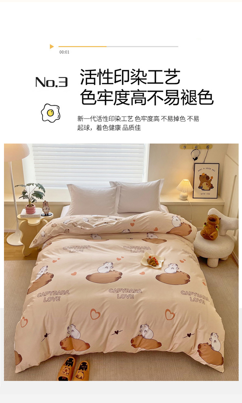 蘭菲家纺 2025新款全棉小版卡皮巴拉系列单品被套 陪伴拉