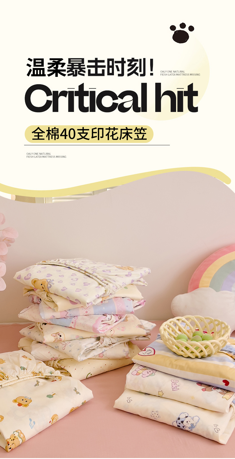 • 91家纺网 家纺一手货源 找家纺 DoDo 兜兜 2026新款卡通全棉纯棉小清新单品床笠系列 (可定做尺寸) 假日小狗