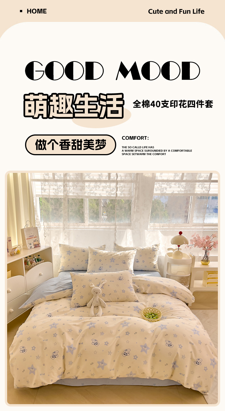 商品名称:DoDo 兜兜 2026新款卡通全棉纯棉小清新三四件套系列 (可定做尺寸) 星星仔