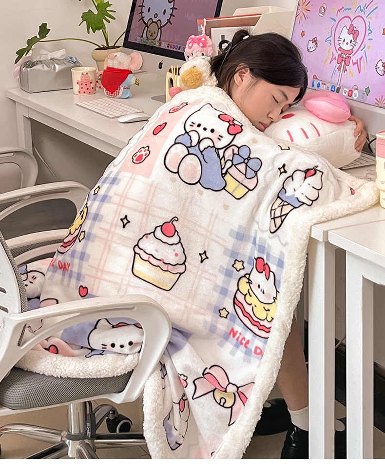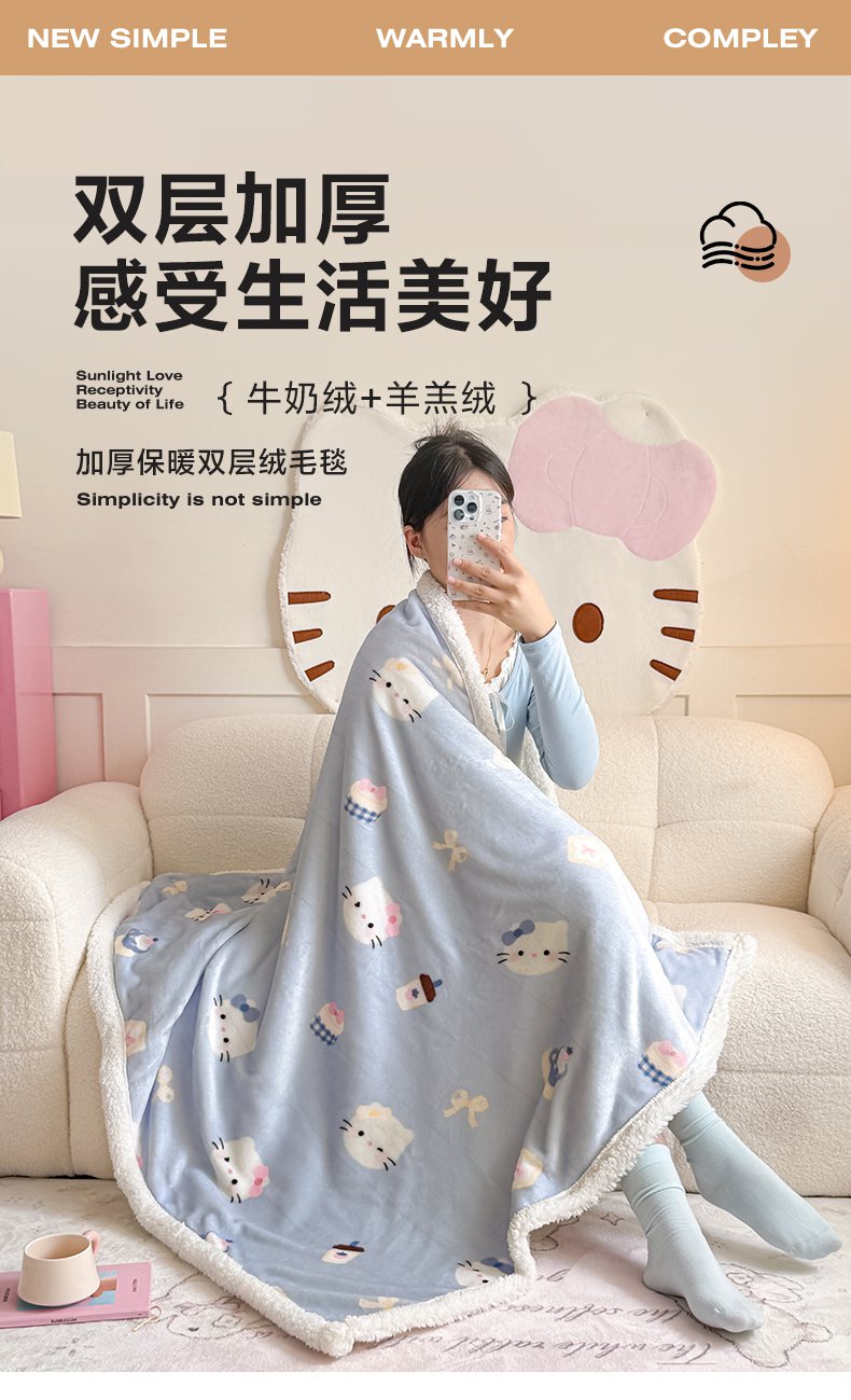 川悦生活 2025新款牛奶绒羊羔绒毯子毛毯 毛毯甜茶小猫