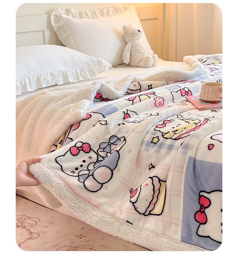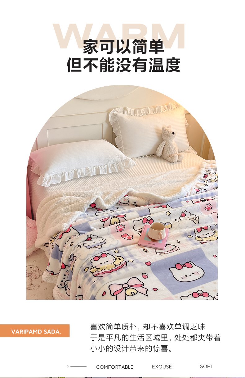 商品名称:川悦生活 2025新款牛奶绒羊羔绒毯子毛毯 毛毯甜茶小猫