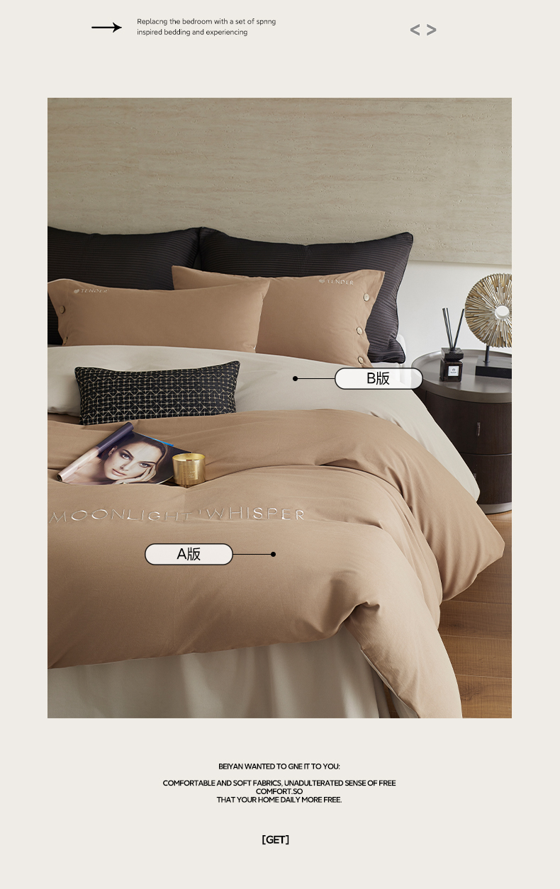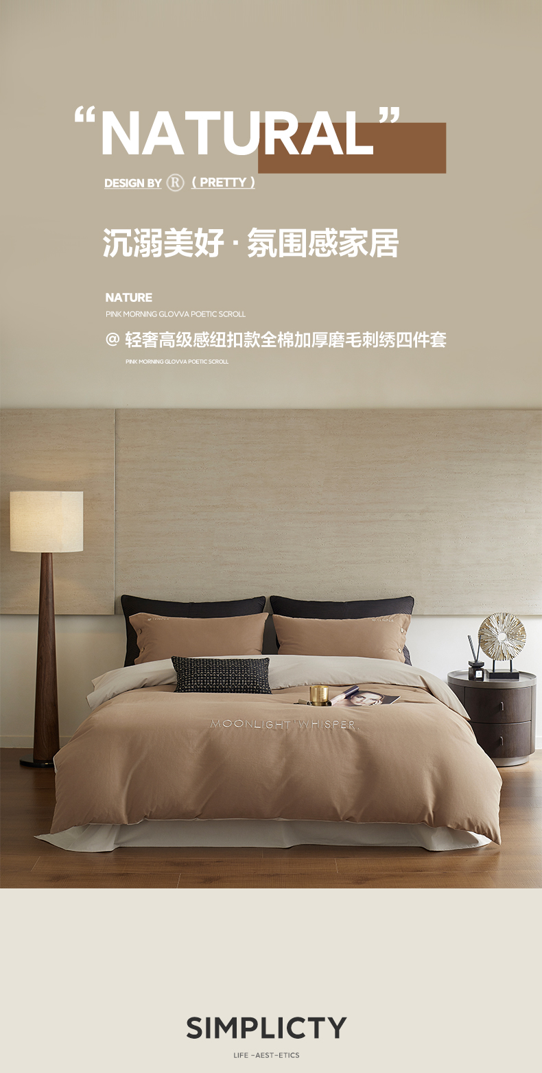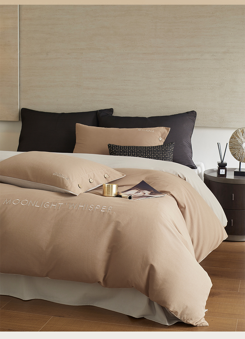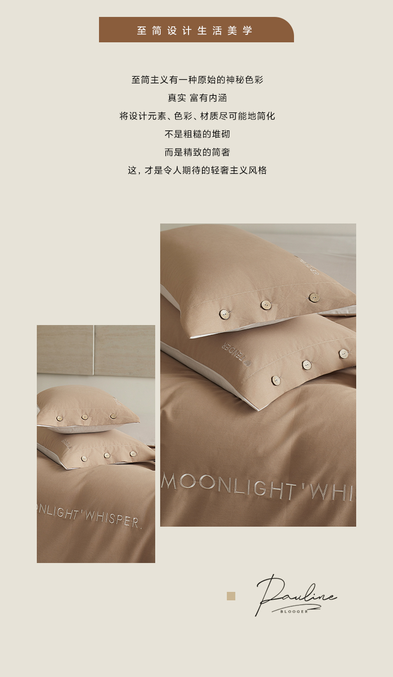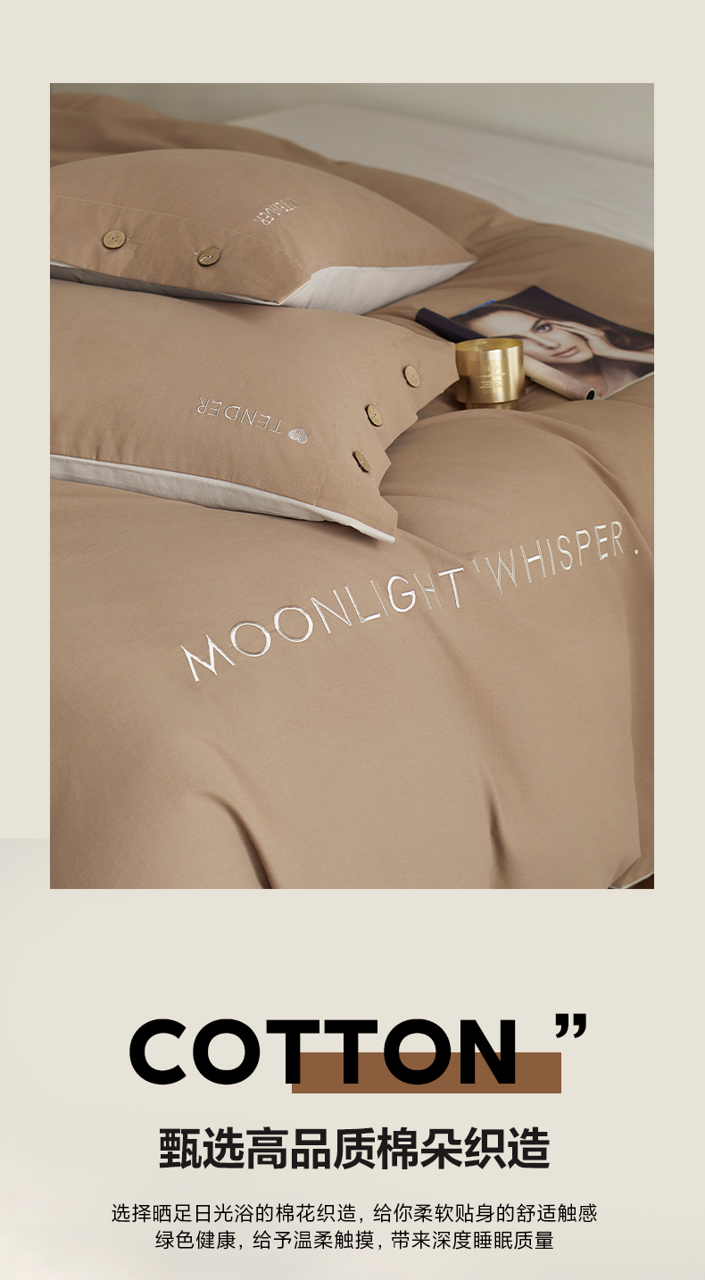 当前位置: 91家纺网 > 商品网购 > 床品套件 > 四件套 > 全棉普通四件套 > 艾咪-Amy ntmy 2025轻奢高级感纽扣款全棉纯棉加厚磨毛刺绣四件套 漫月咖米