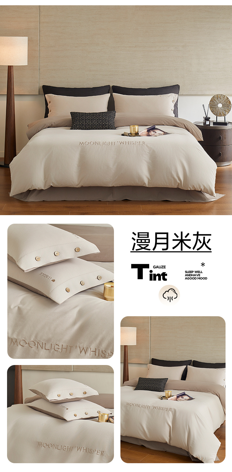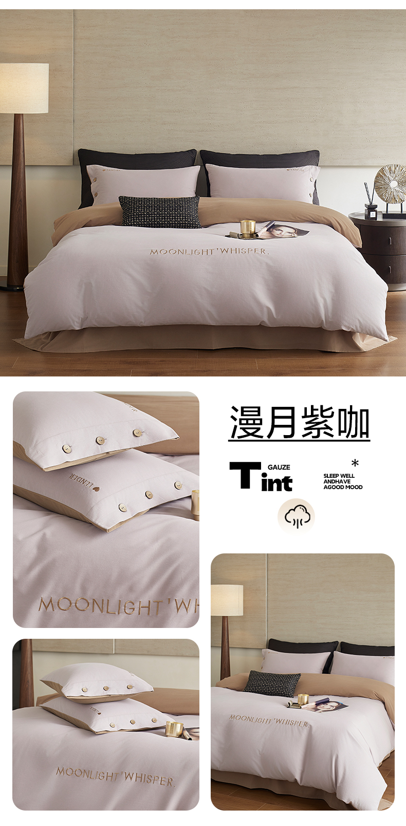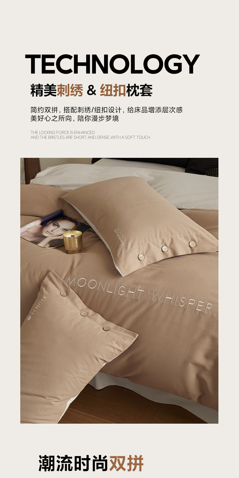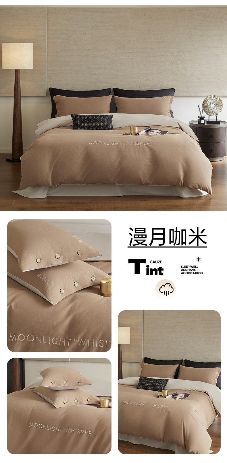 当前位置: 91家纺网 > 商品网购 > 床品套件 > 四件套 > 全棉普通四件套 > 艾咪-Amy ntmy 2025轻奢高级感纽扣款全棉纯棉加厚磨毛刺绣四件套 漫月咖米