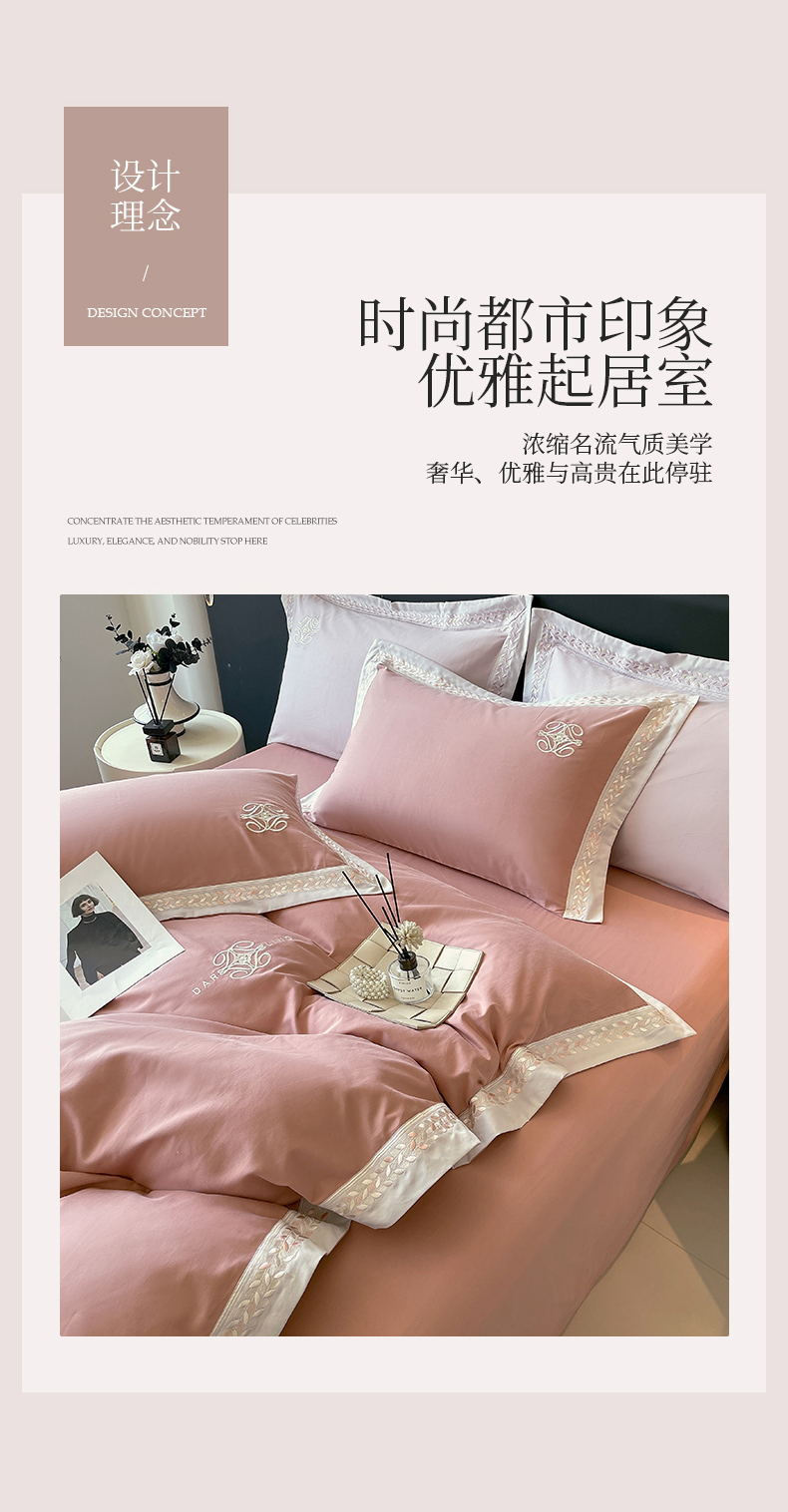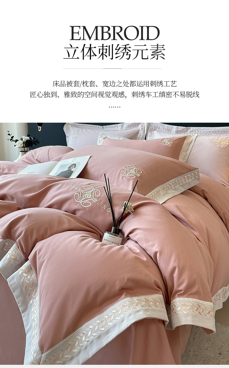 (总)鼎飞家纺 2025新款全棉磨毛刺绣四件套系列-梵,梵-卡布基诺,梵-雅灰,梵-奶油白,梵-蕊粉,梵-荞麦