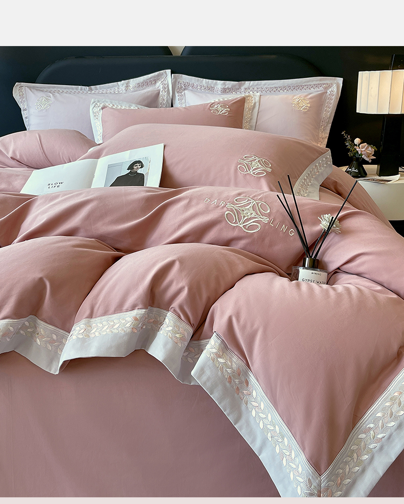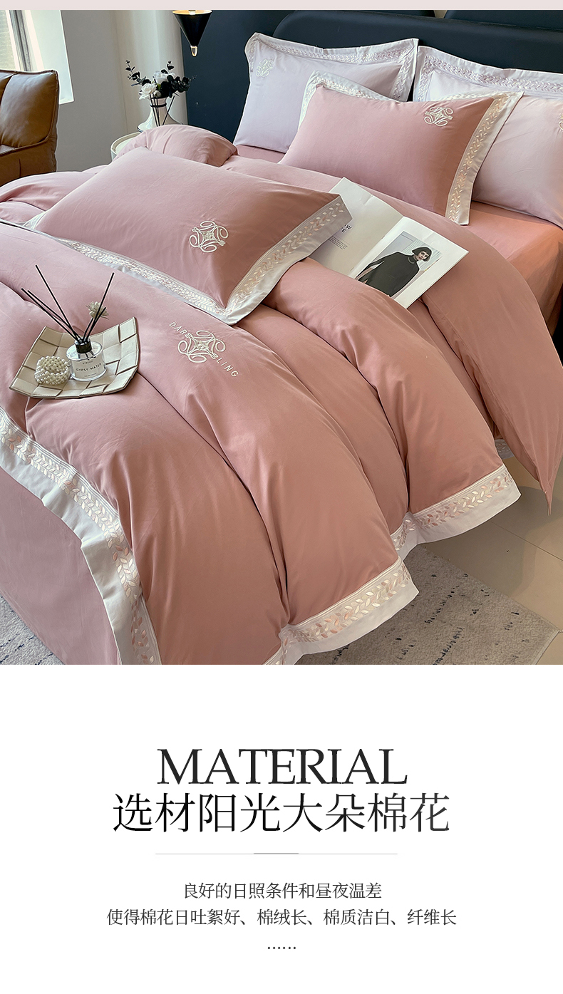 (总)鼎飞 2022新款长绒棉绣花四件套-戴妮,戴妮-黎光白,戴妮-维克蓝绿,戴妮-莺色粉