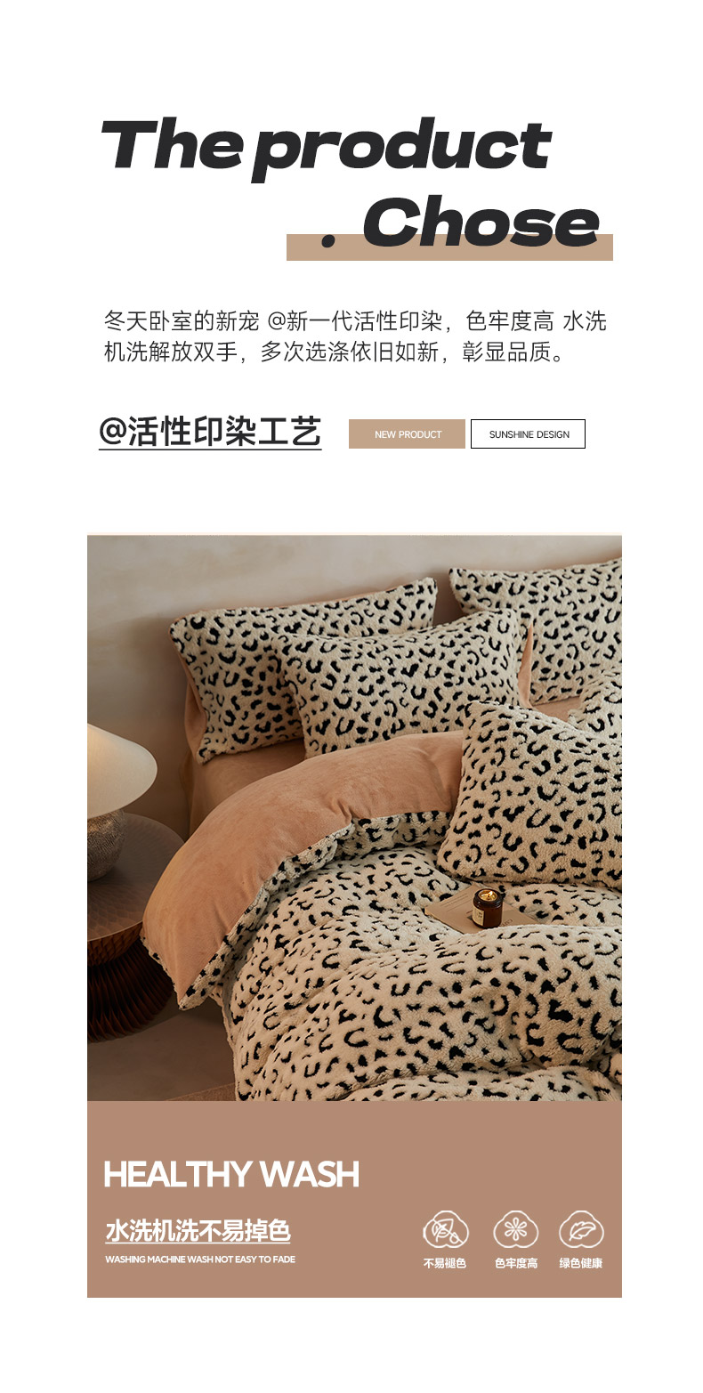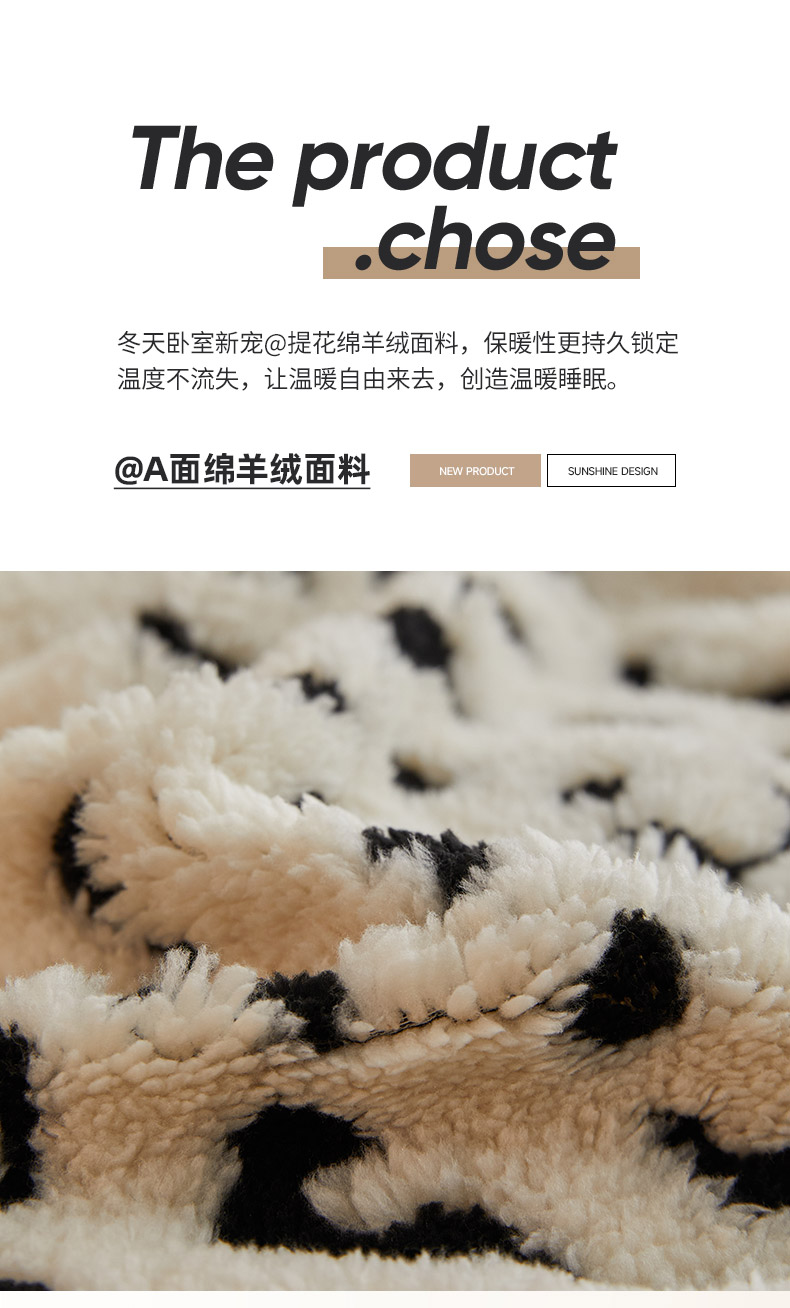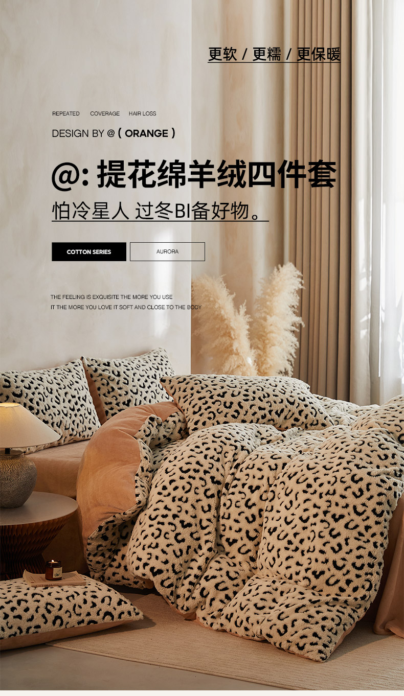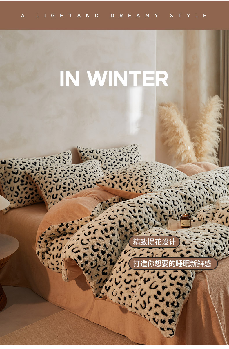 当前位置: 91家纺网 > 商品网购 > 床品套件 > 四件套 > 其它四件套 > 吾诺家居 2025秋冬新款提花绵羊绒四件套 豹纹白