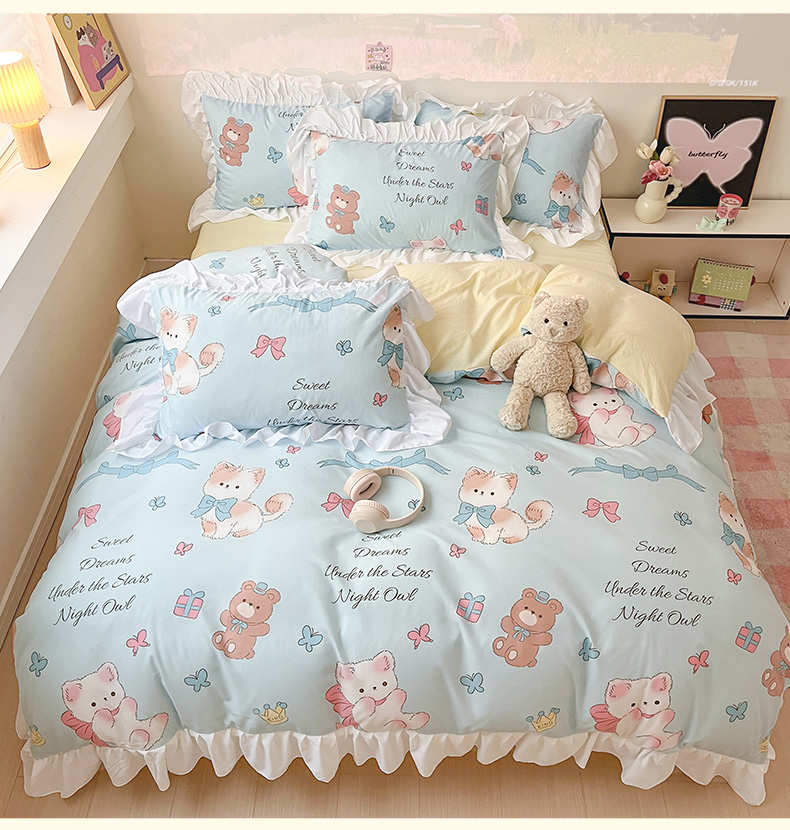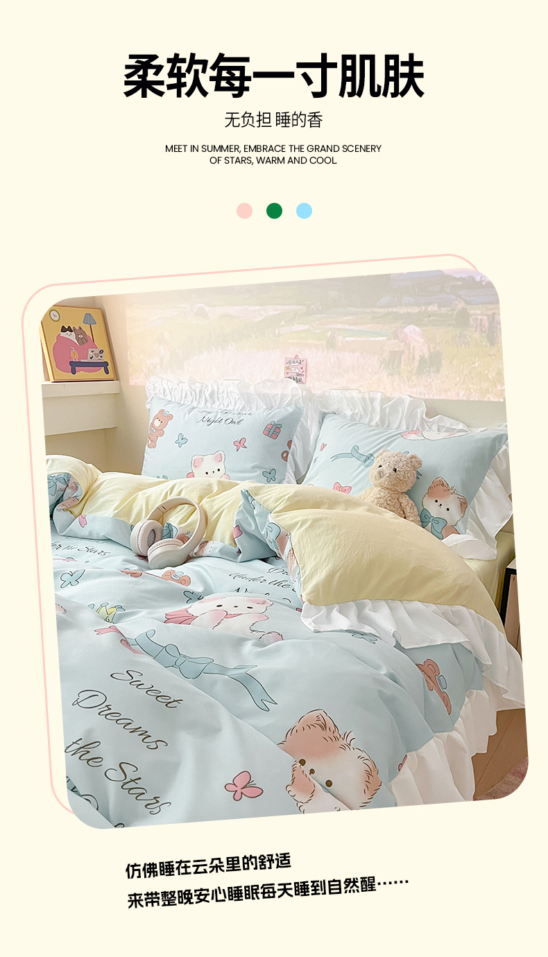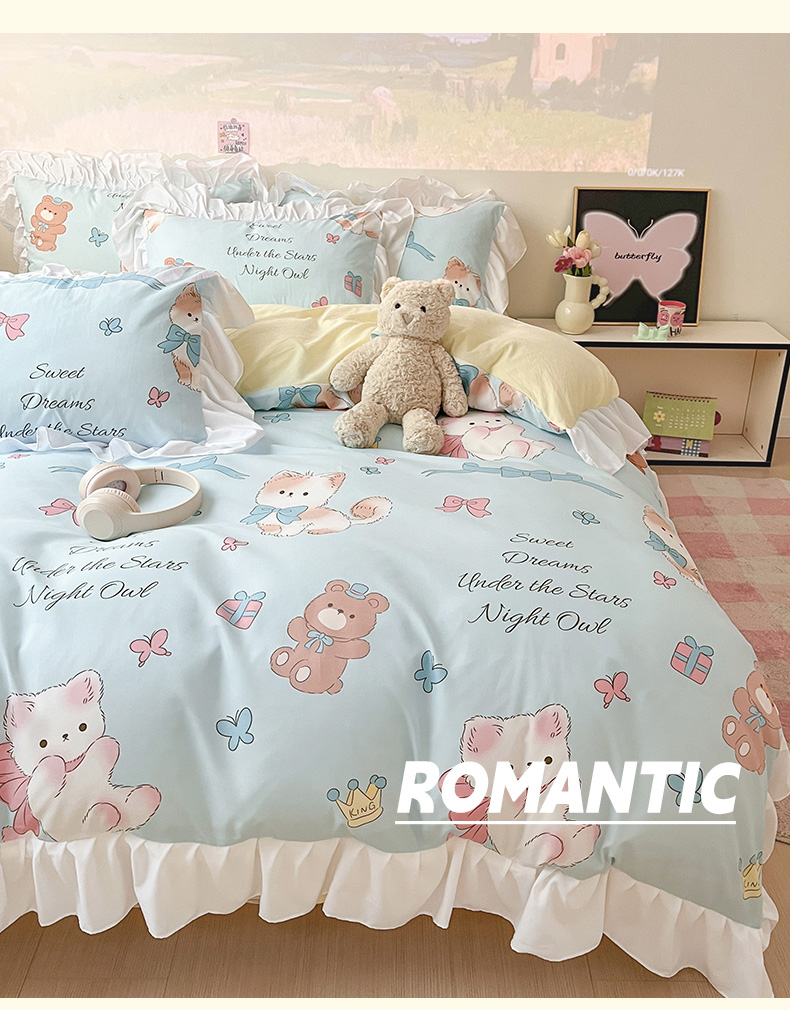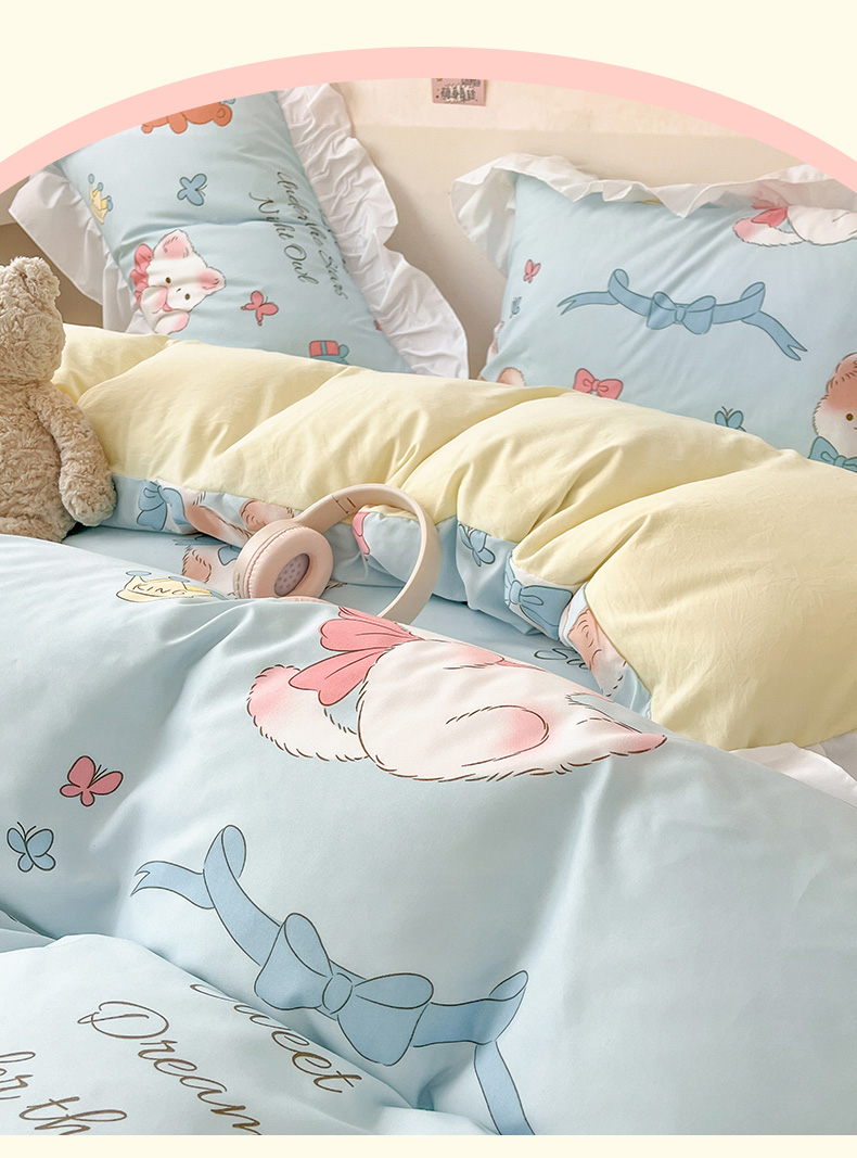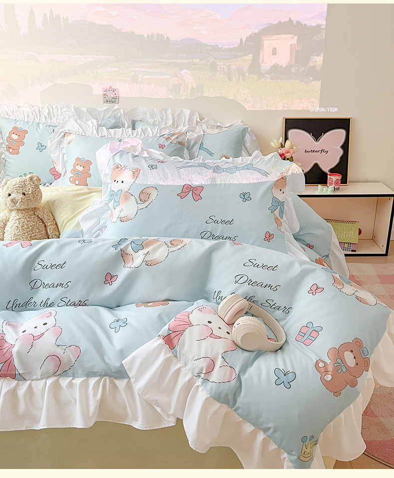 当前位置: 91家纺网 > 商品网购 > 床品套件 > 三件套 > 曼陀罗 2025新款云柔棉韩式INS减龄花边款卡通学生宿舍上下铺三件套 童话梦