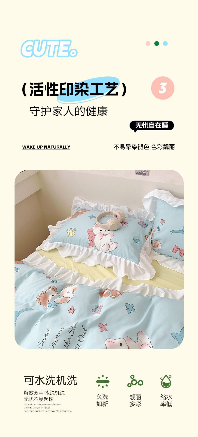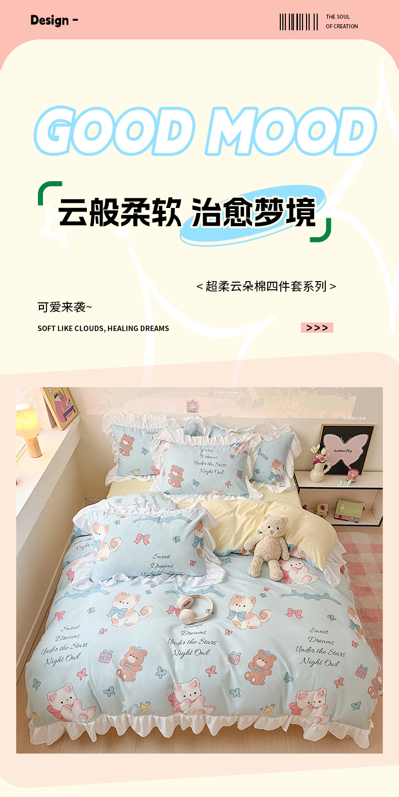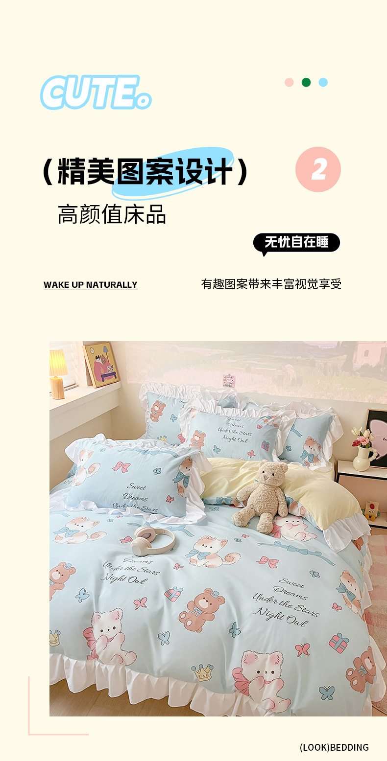 当前位置: 91家纺网 > 商品网购 > 床品套件 > 三件套 > 曼陀罗 2025新款云柔棉韩式INS减龄花边款卡通学生宿舍上下铺三件套 童话梦
