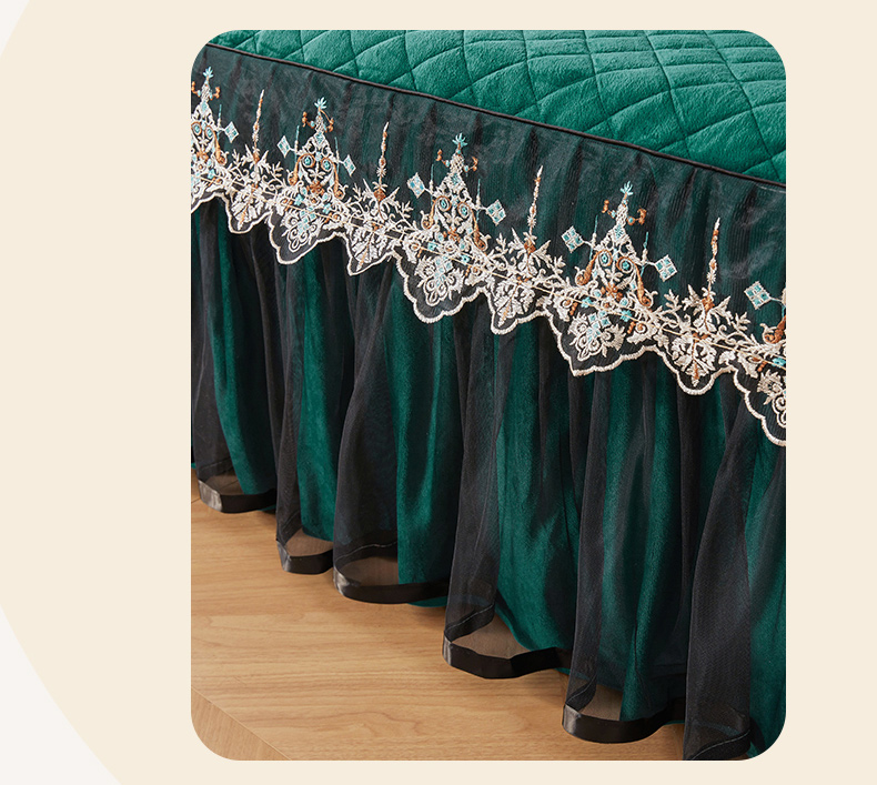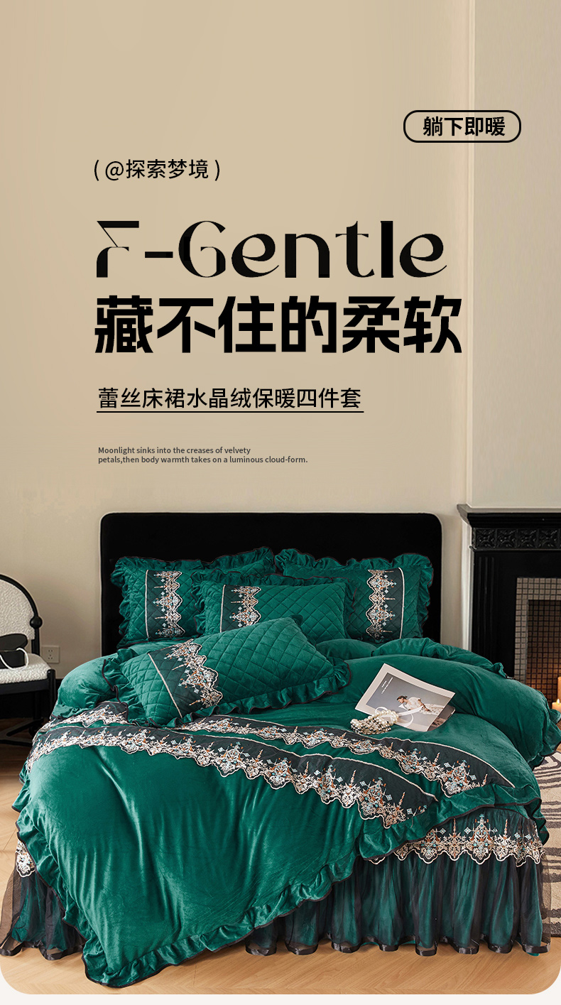 • 91家纺网 家纺一手货源 找家纺 恋尚 2025新款水晶绒保暖床裙三件套-梵蒂莎(床裙控价130起) 梵蒂莎-绿