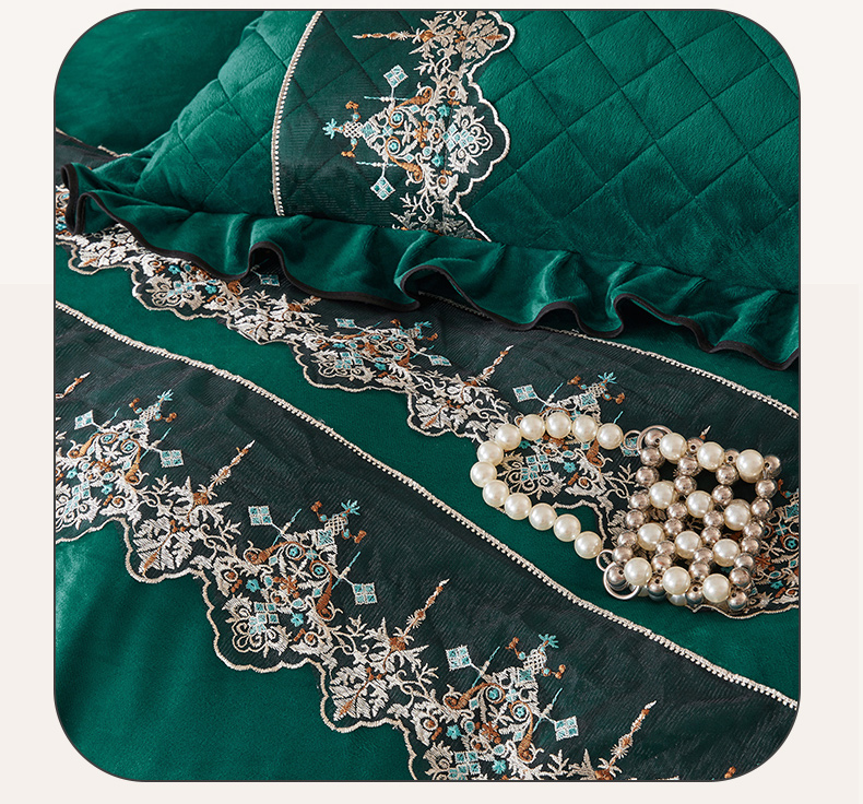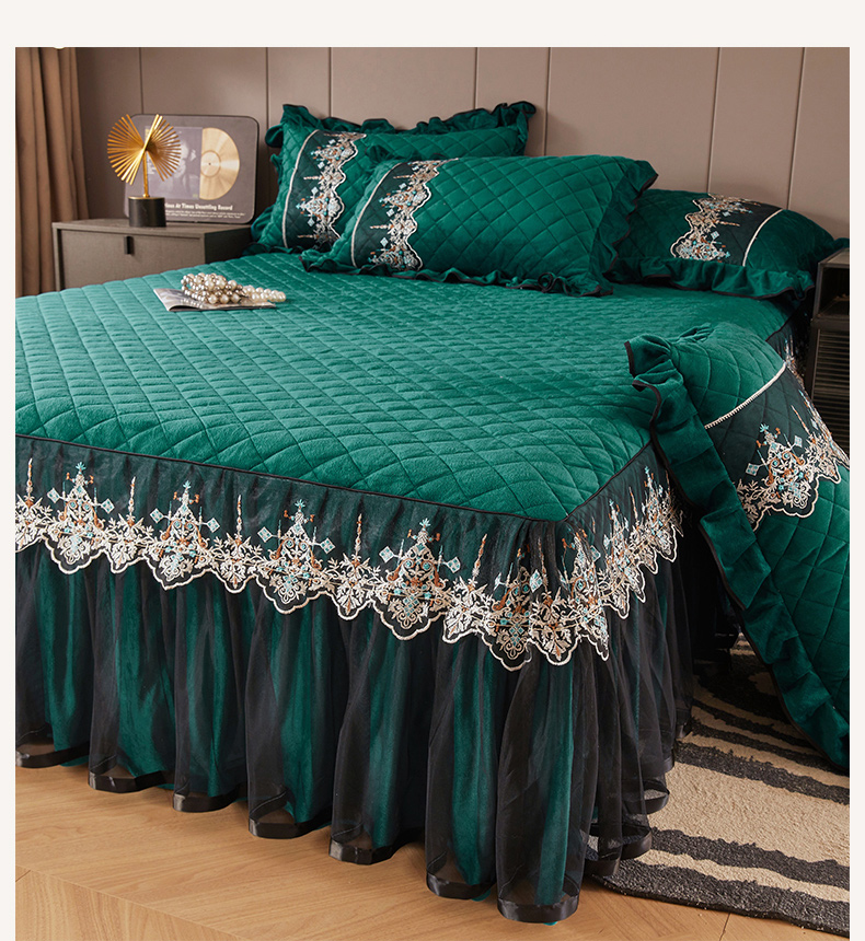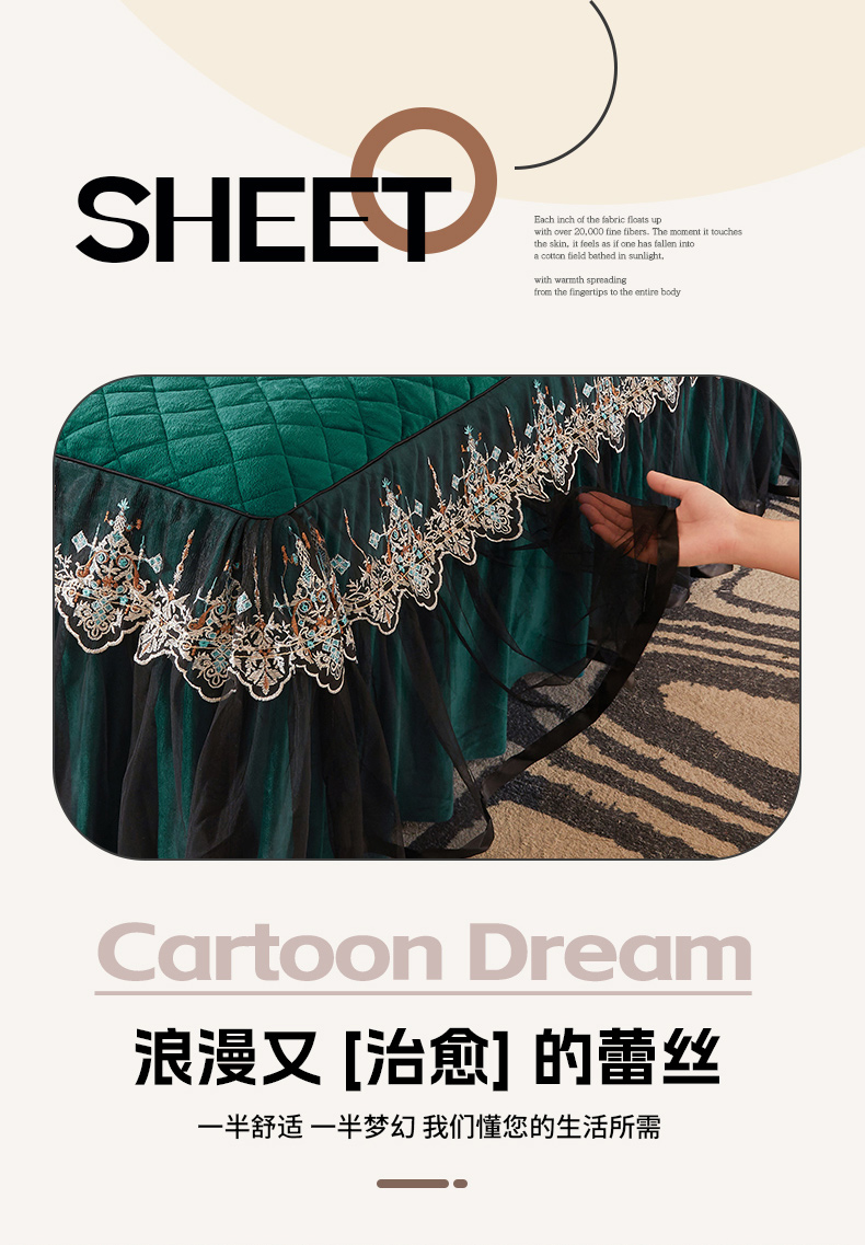 恋尚 2025新款水晶绒保暖床裙三件套-梵蒂莎(床裙控价130起) 梵蒂莎-绿