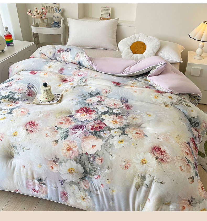 小禹仔家纺 2025新款亲肤柔软大豆被数码印花针织棉大豆被冬被子被芯春秋被 云裳兰,云裳兰