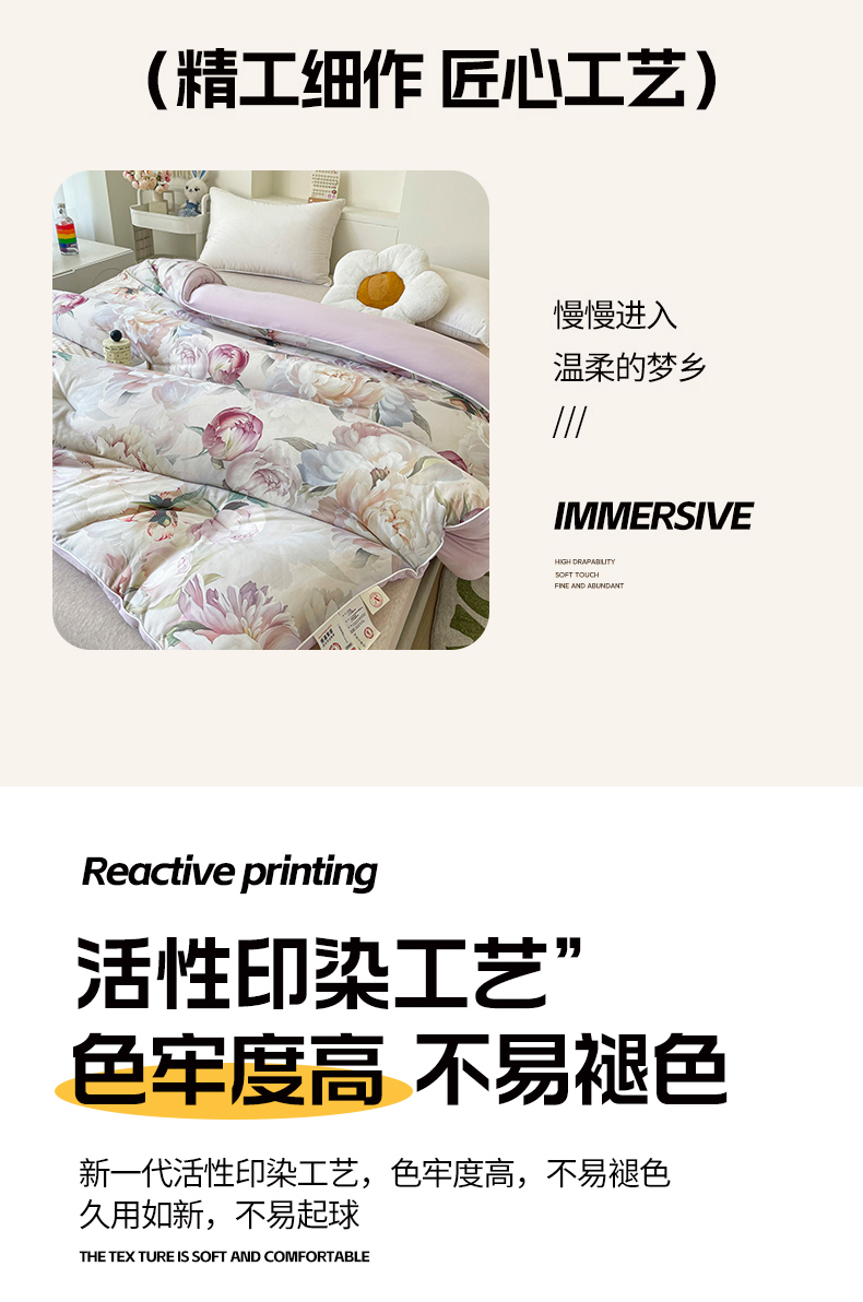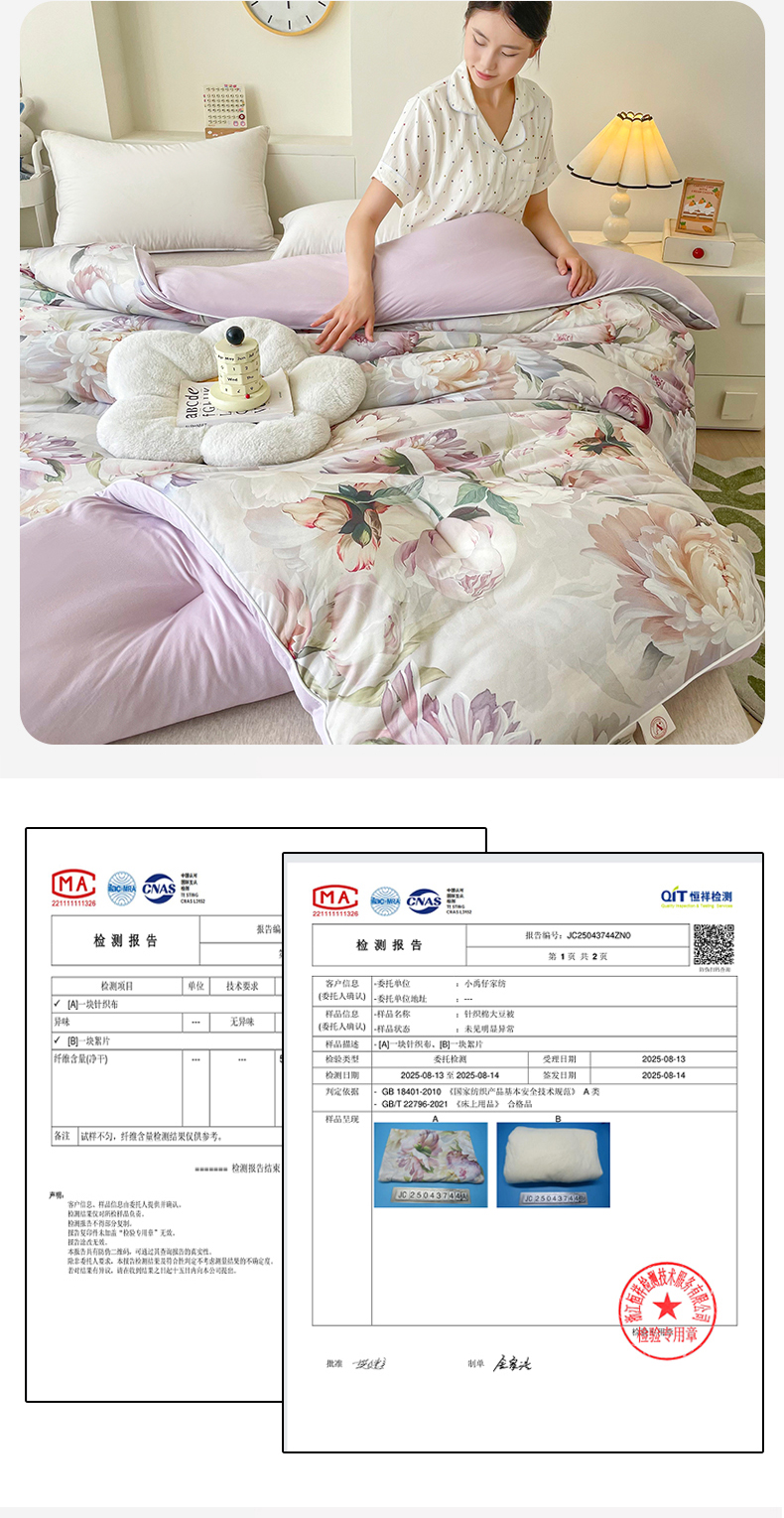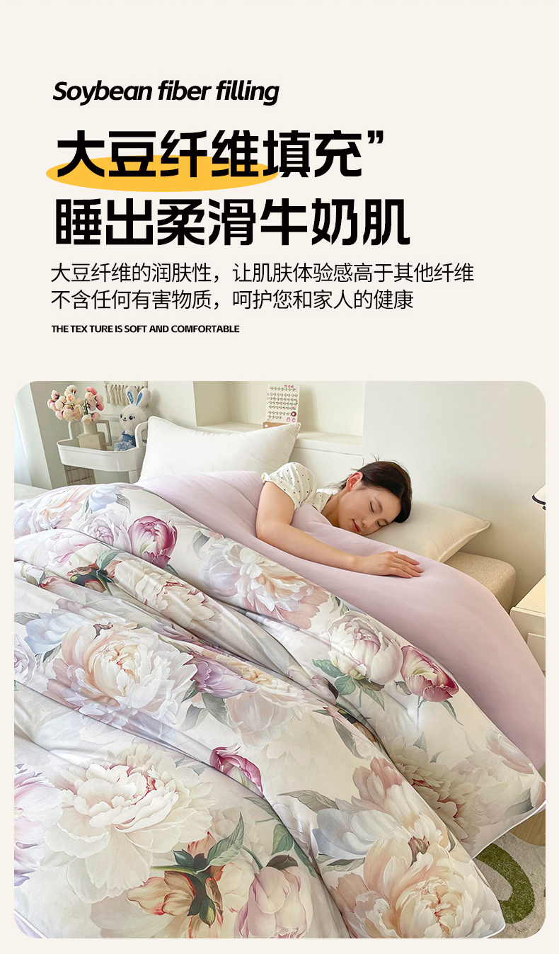 • 填充纤维种类: 大豆蛋白改性聚酯纤维