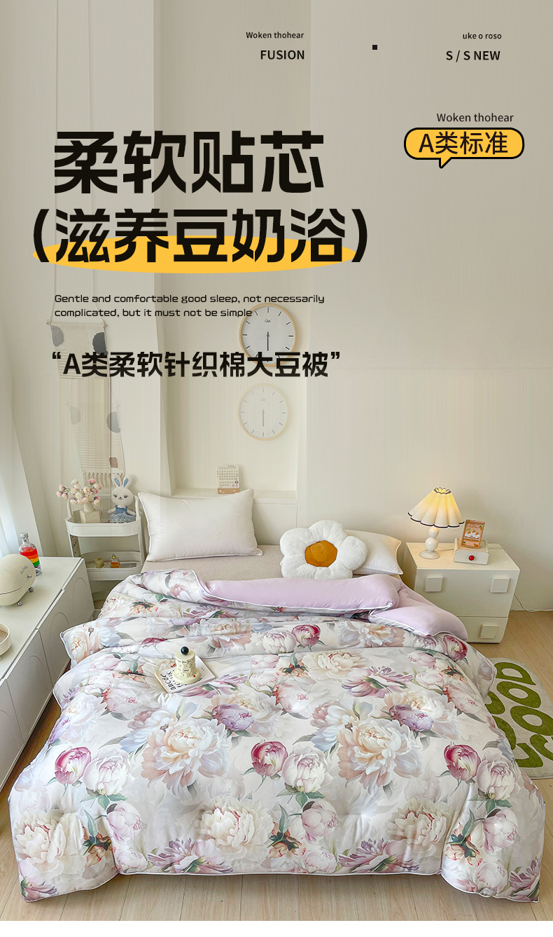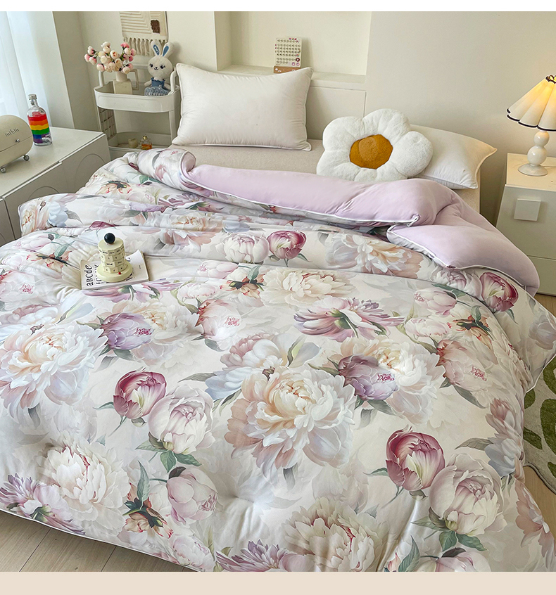 • 91家纺网 家纺一手货源 找家纺 小禹仔家纺  2025新款亲肤柔软大豆被数码印花针织棉大豆被冬被子被芯春秋被 云裳兰,云裳兰