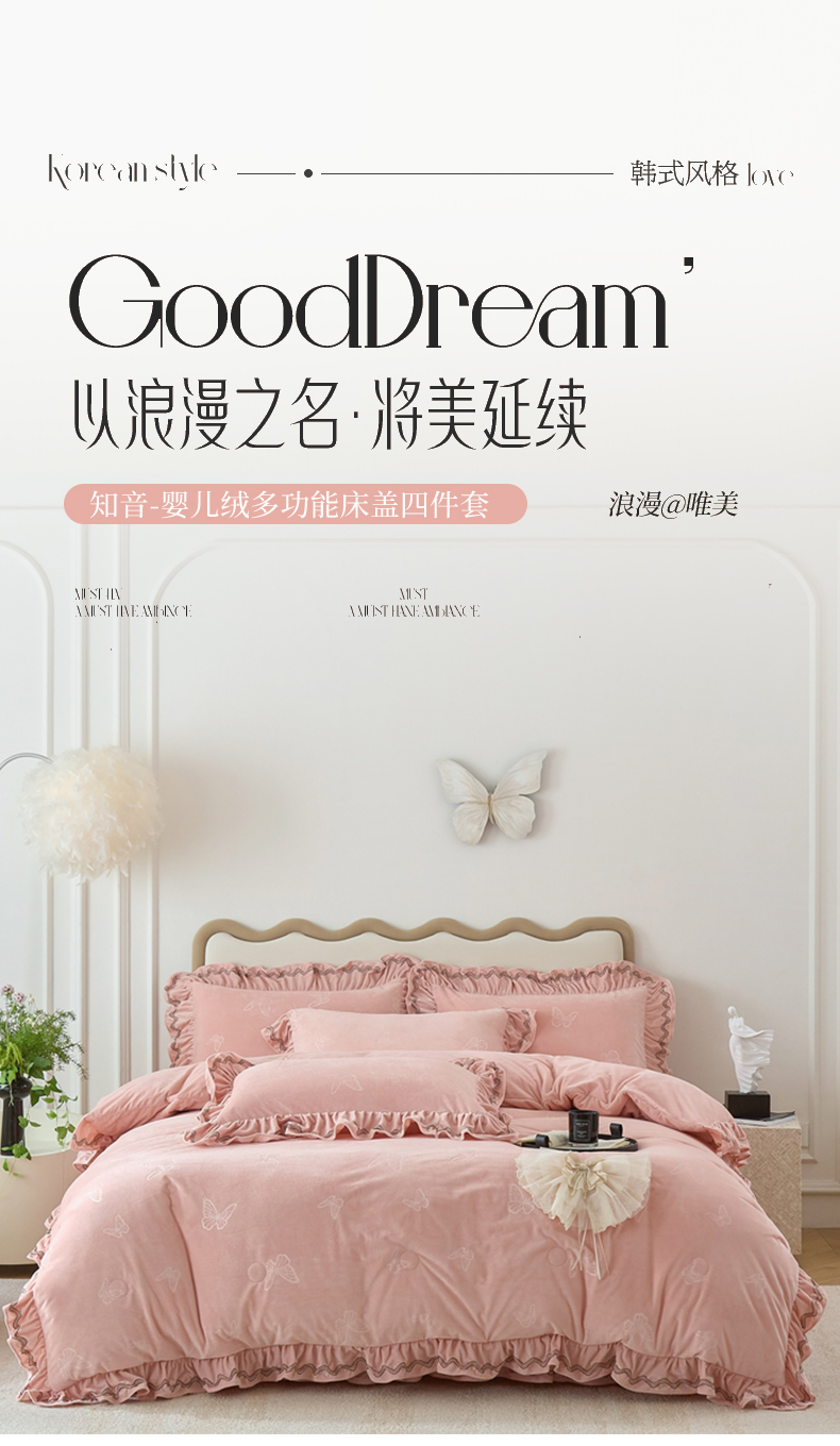 金绣美居 2025新款婴儿绒多功能床盖款四件套-知音(控价不低于229/239) 知音-新皮粉