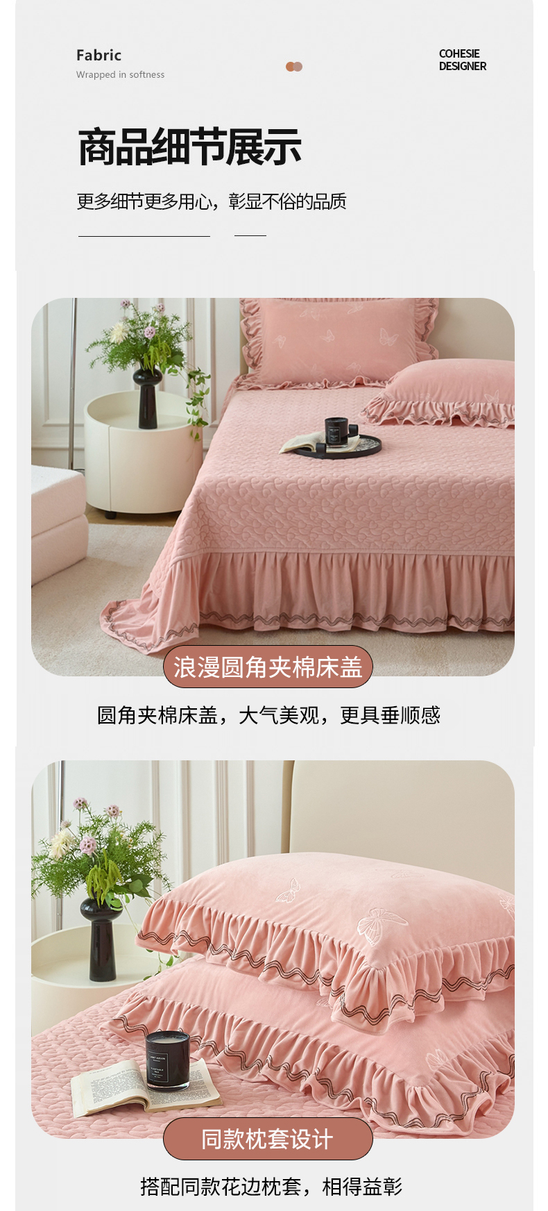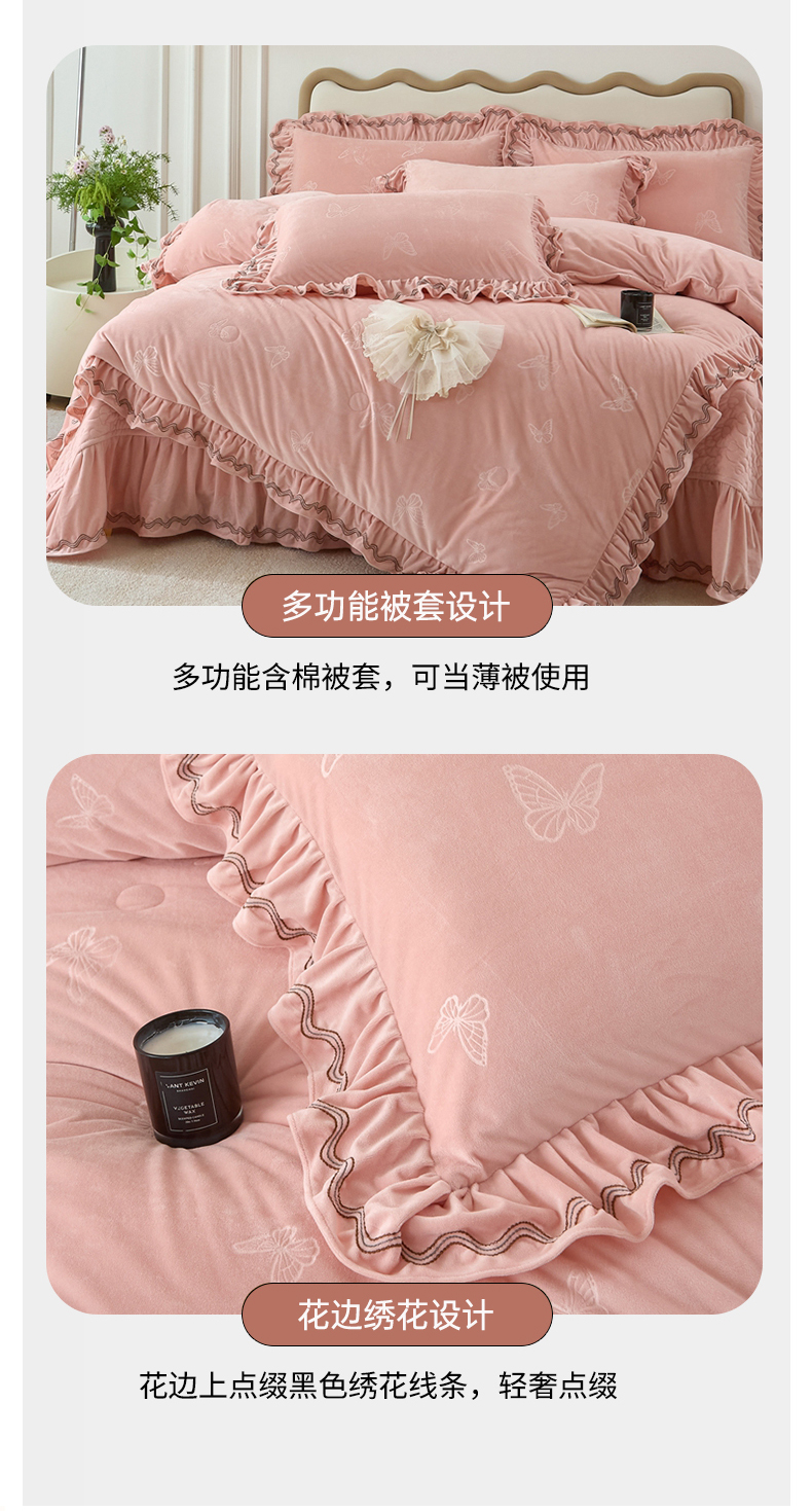 商品名称:金绣美居 2025新款婴儿绒多功能床盖款四件套-知音(控价不低于229/239) 知音-新皮粉
