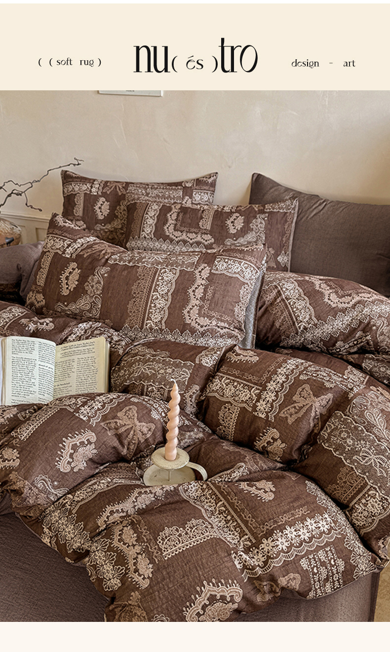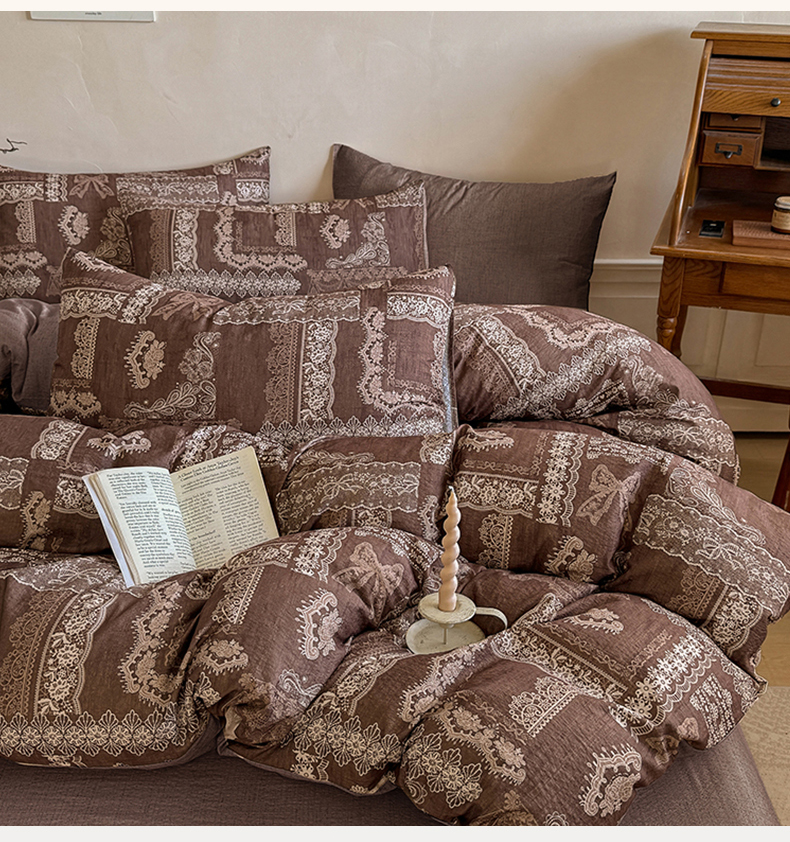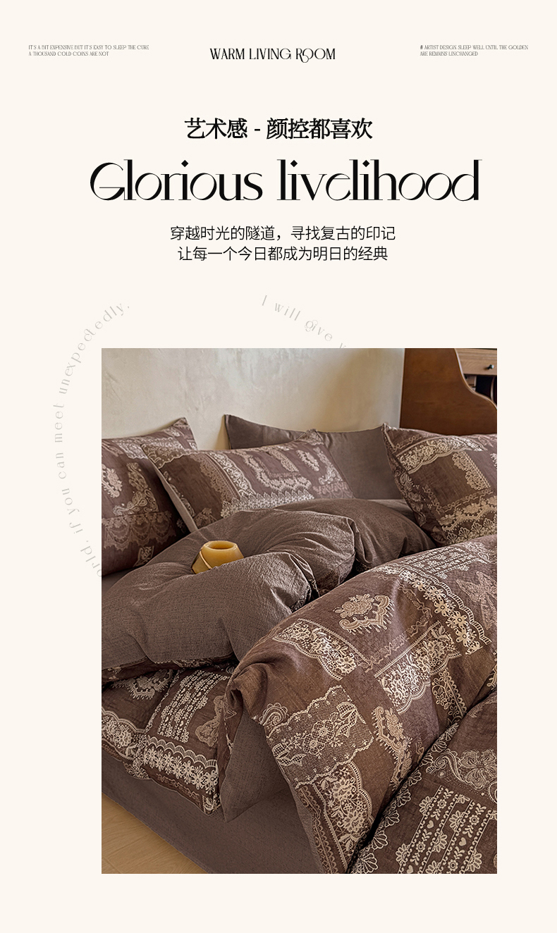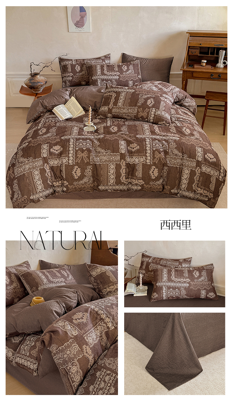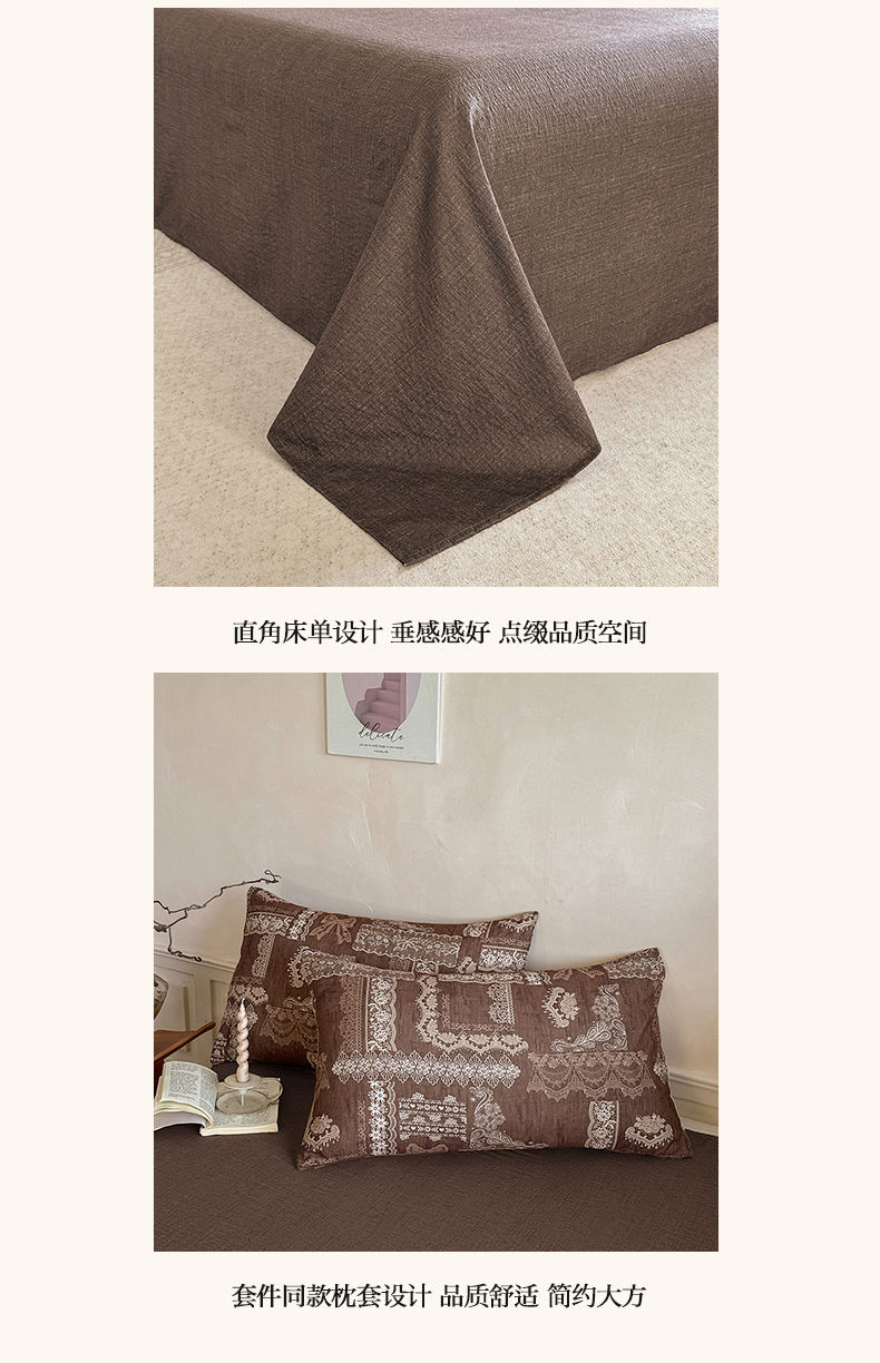 壹号库家纺 2025年新品A类仿麻中古风皱皱纱双层纱四件套 西西里