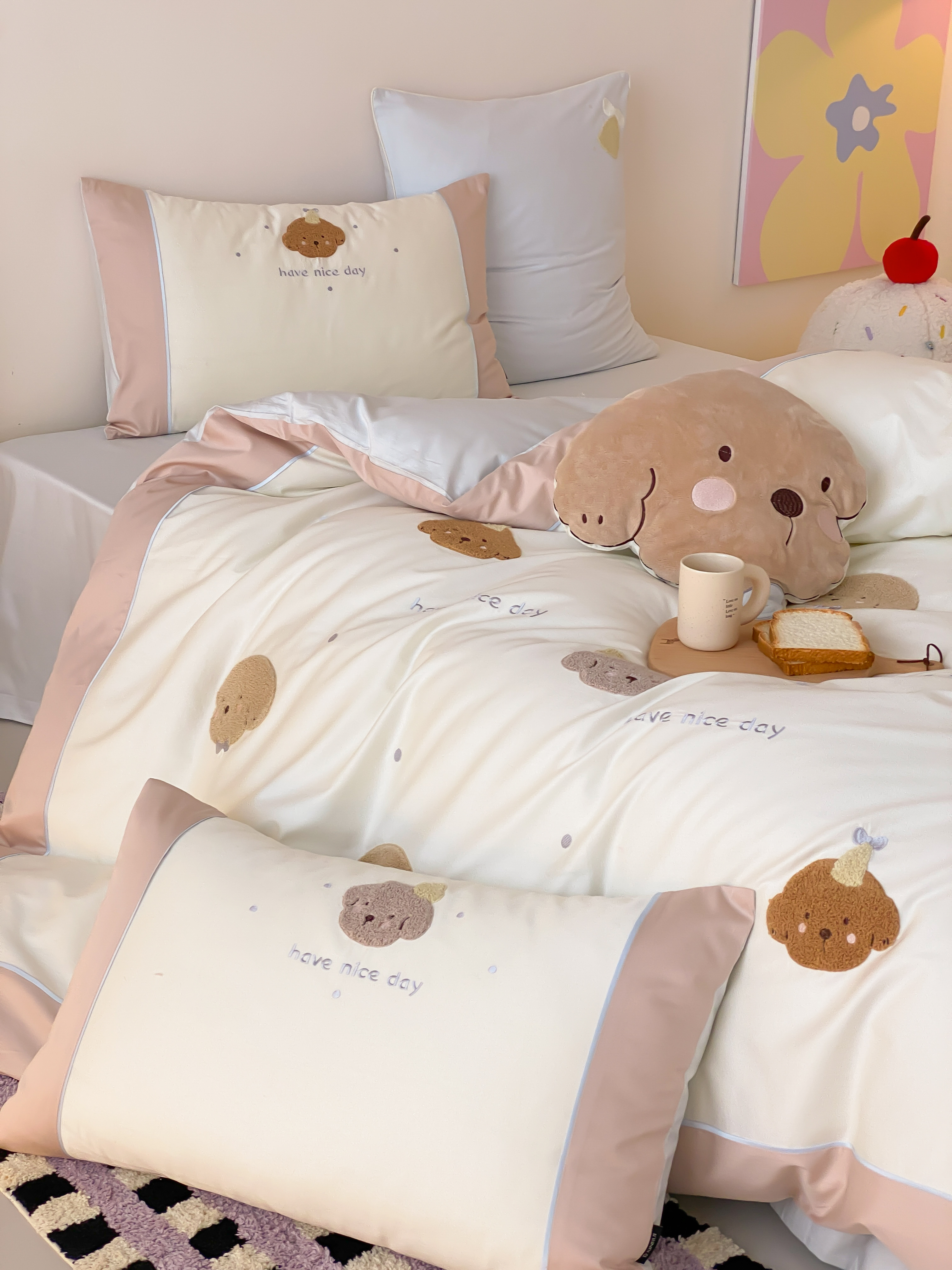 (总)馨蕊家居 2026新款新品超细旦磨毛高奢系列四件套,磨毛卡通-软萌奶球,磨毛卡通-奶油泡芙,磨毛卡通-奶糖