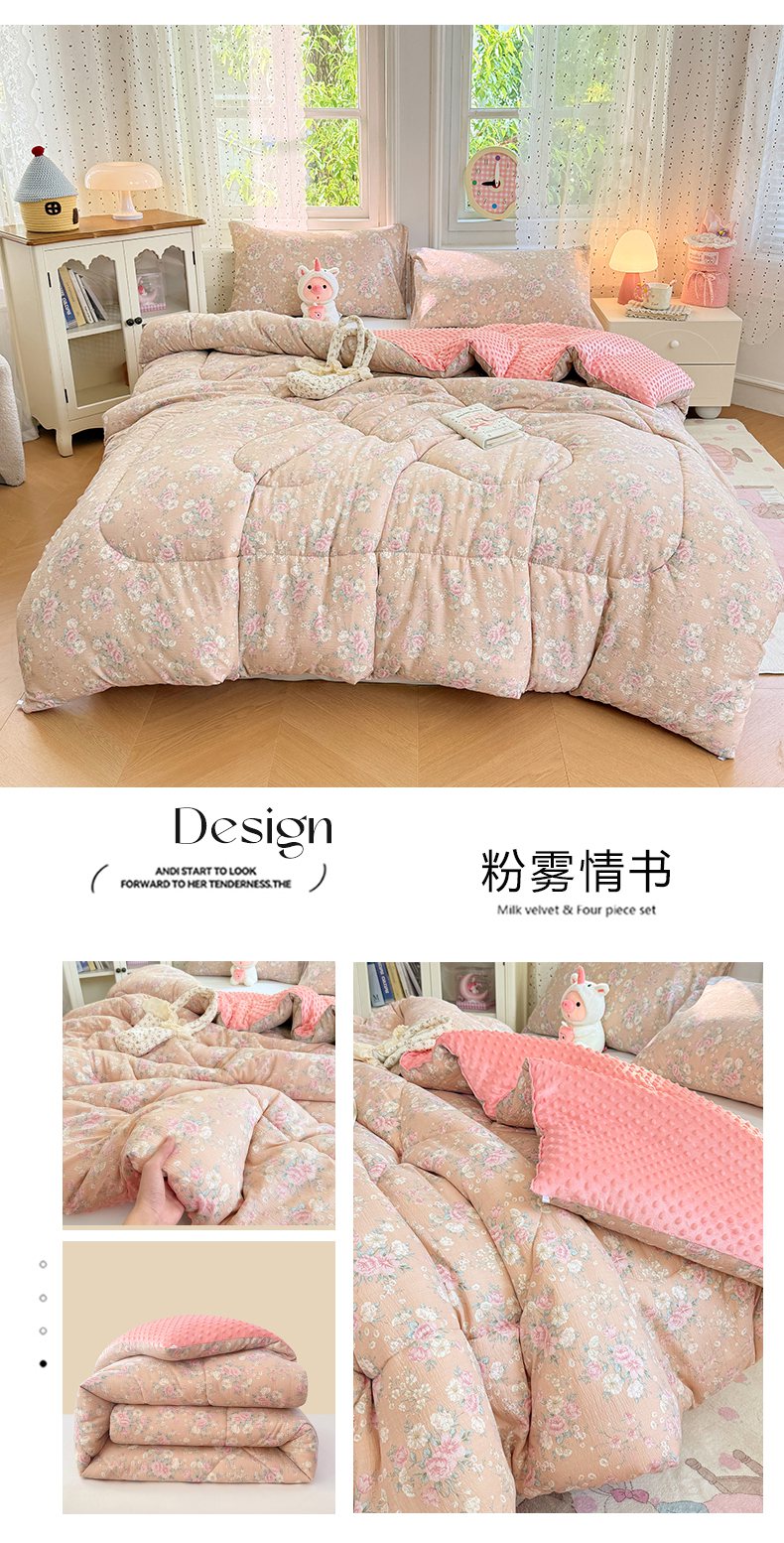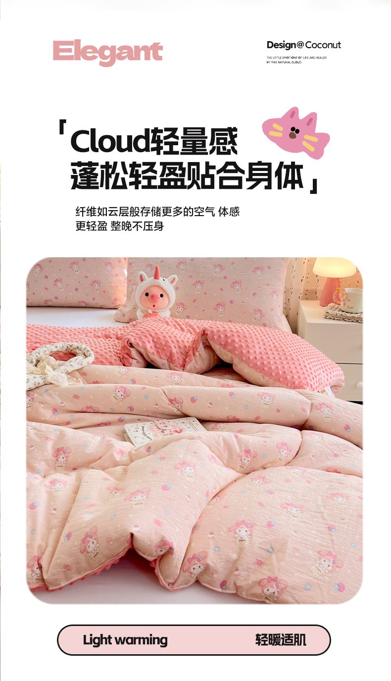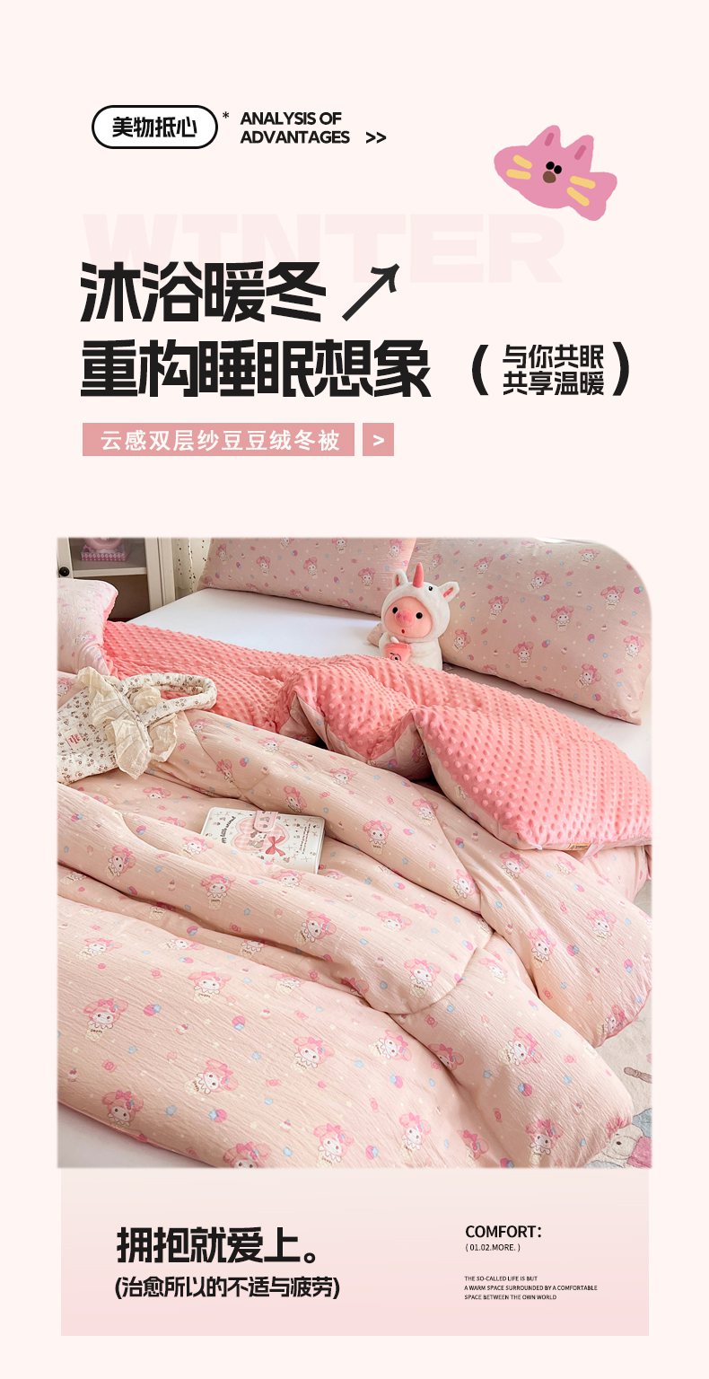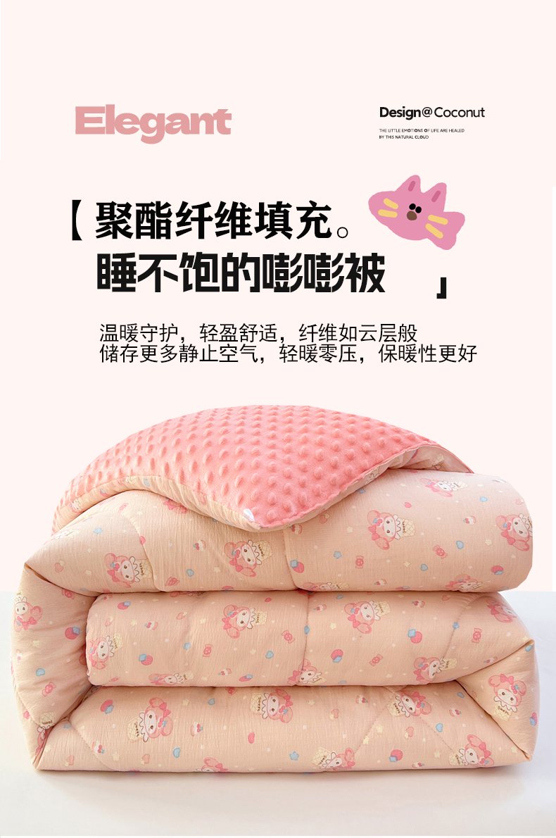 • 91家纺网 家纺一手货源 找家纺 VIP被业 2025新款云感棉双层纱豆豆绒冬被被子被芯 桃气兔叽