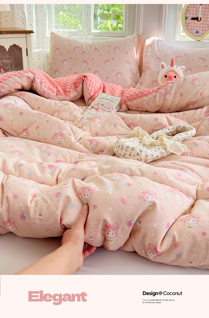 VIP被业 2025新款云感棉双层纱豆豆绒冬被被子被芯 桃气兔叽