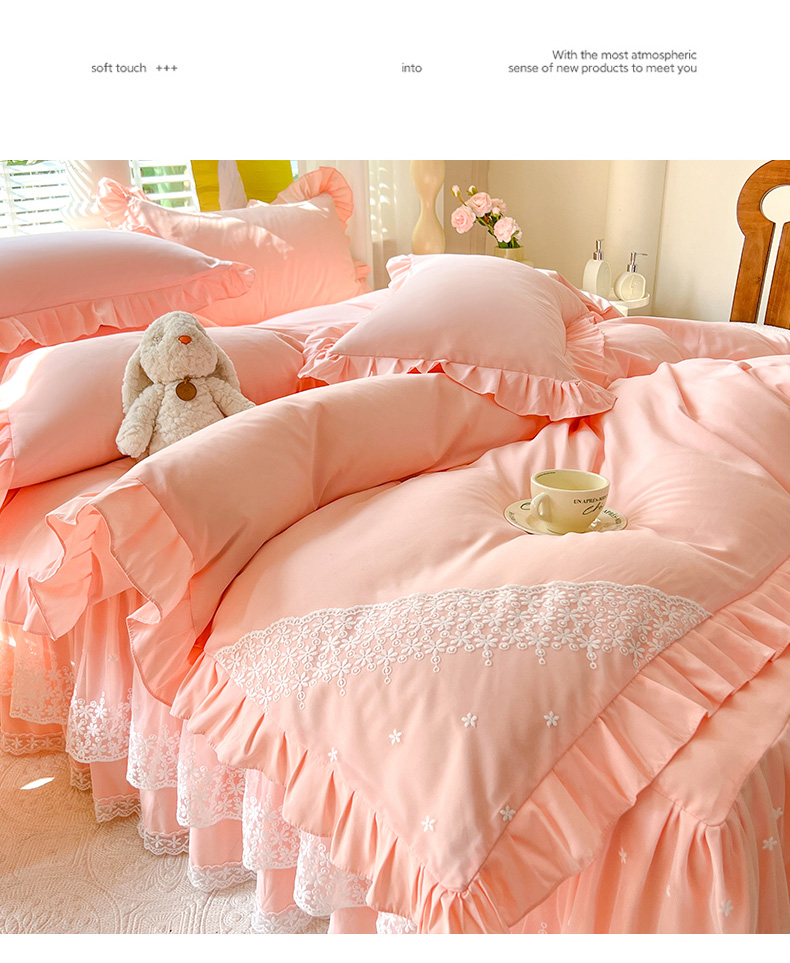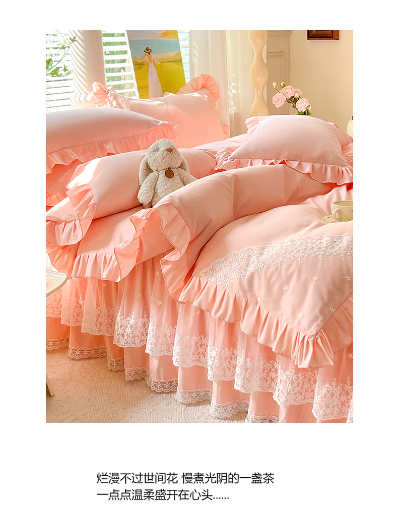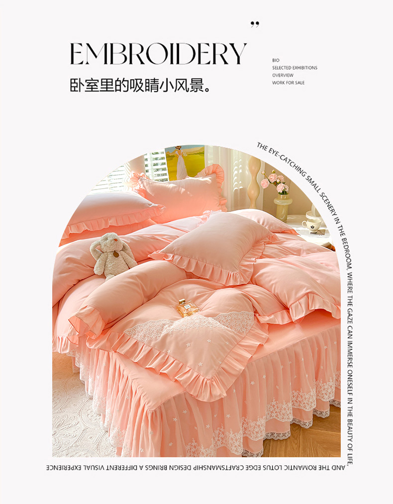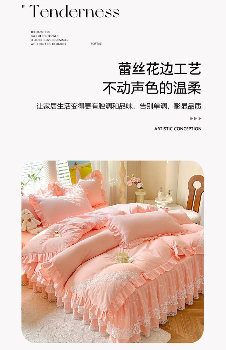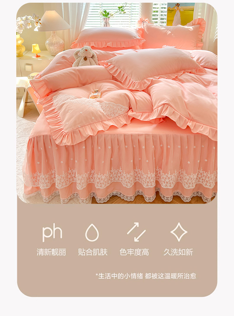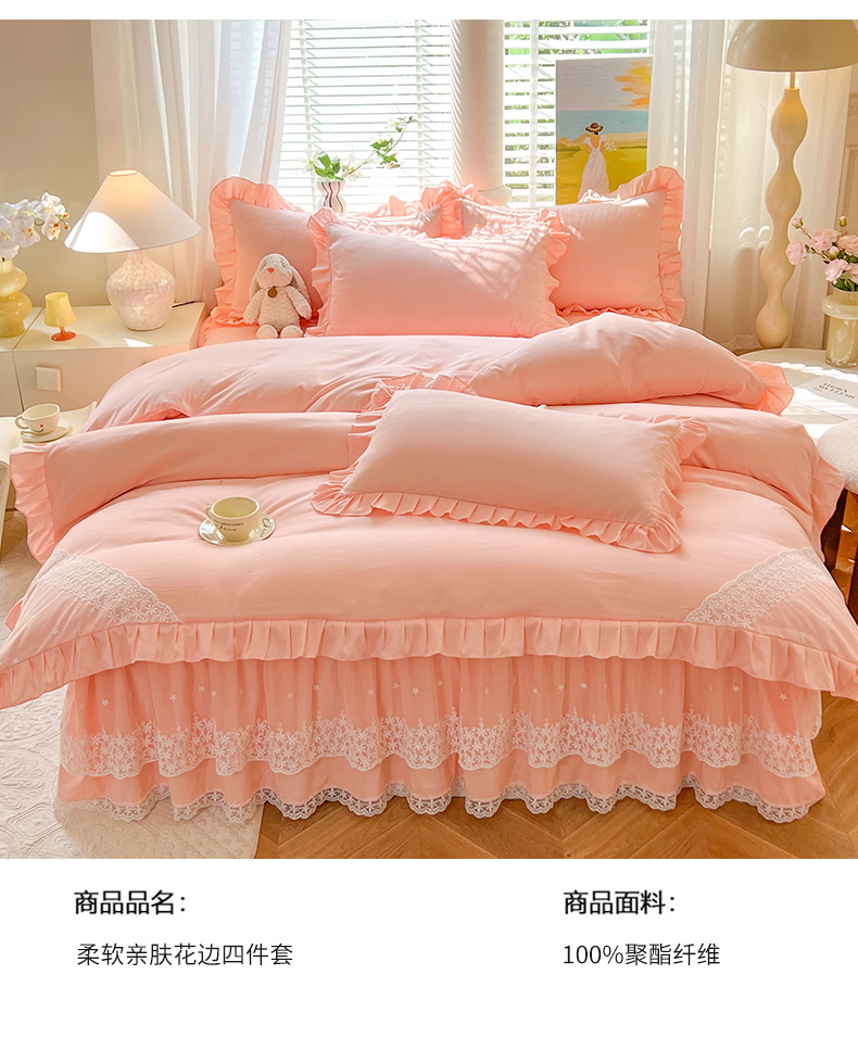 商品名称:后庭寝室 2025新款柔软亲肤花边蕾丝床裙四件套-花颜系列 花颜-玉色