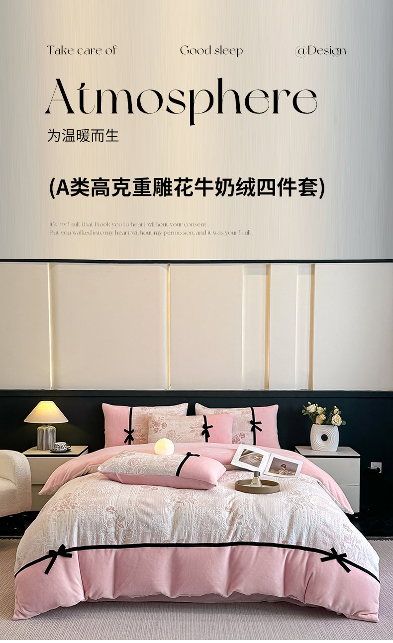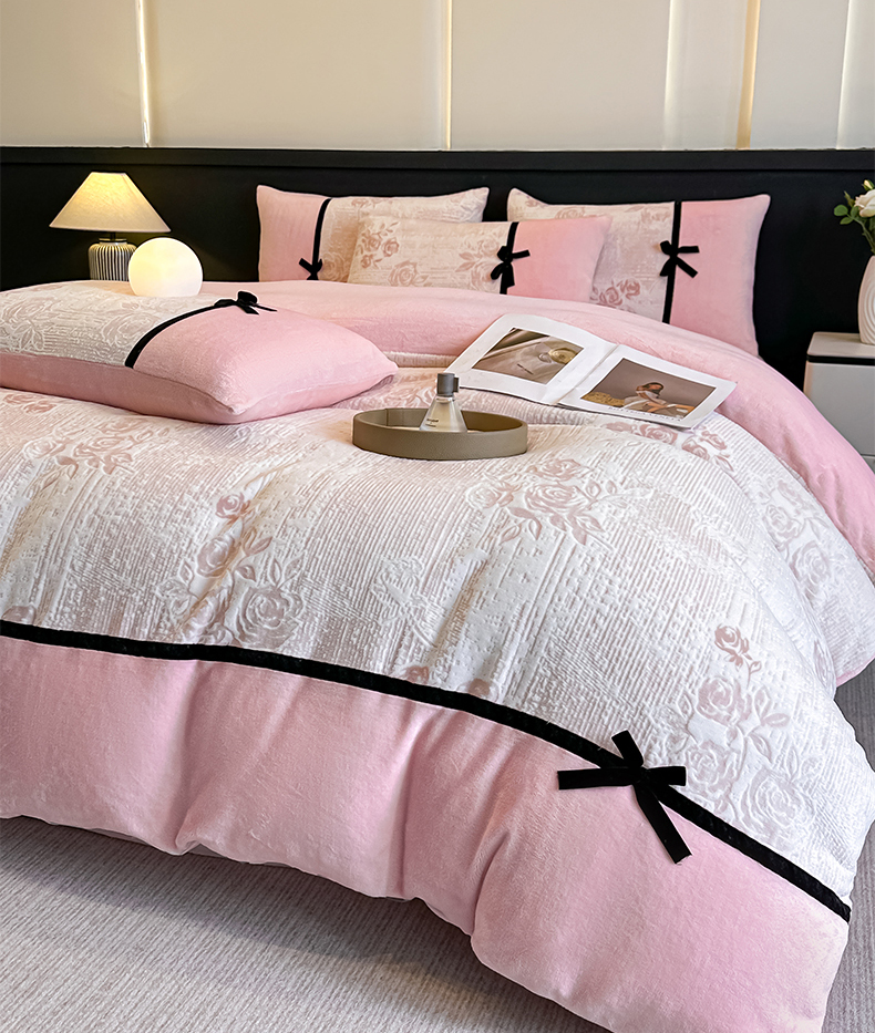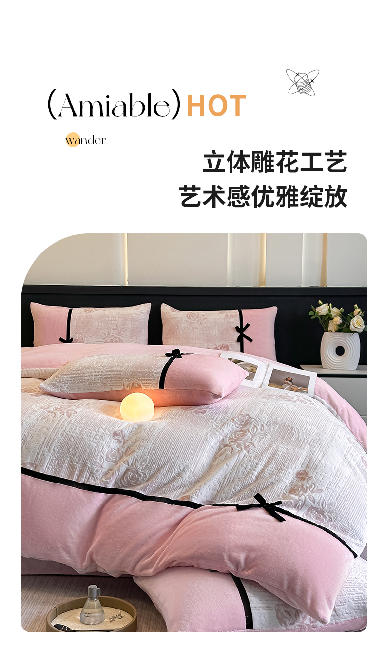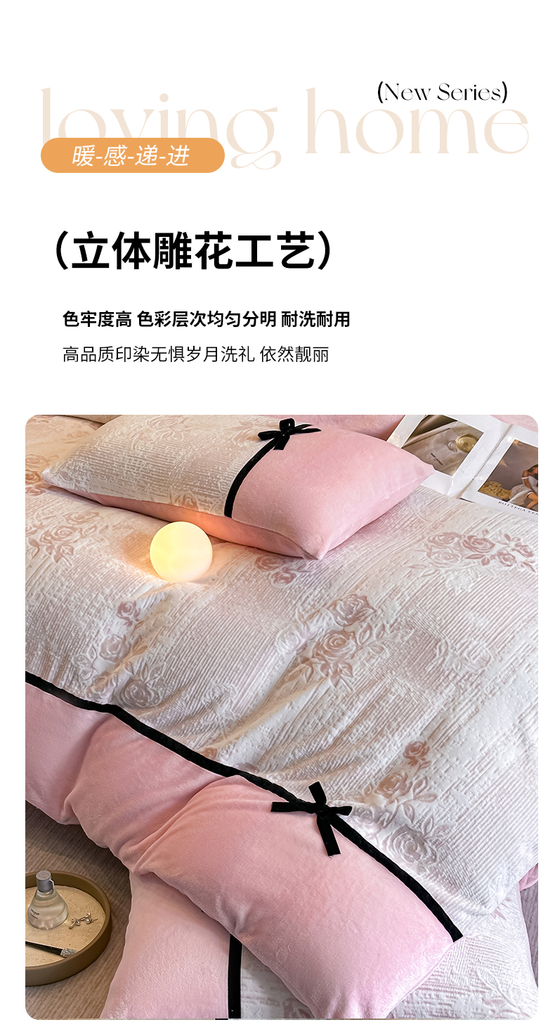 当前位置: 91家纺网 > 商品网购 > 床品套件 > 四件套 > 牛奶绒四件套 > 凯美家居 2025新款A类雕花牛奶绒四件套-美拉德系列 小岛蔷薇 粉
