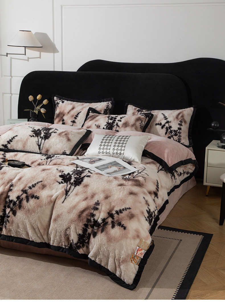 (总)库里梦家纺 2025网红直播热款10公分包边兔毛牛奶绒印花四件套-包边款,百合-卡其-包边款,黑玫瑰-咖-包边款,黑玫瑰-卡其-包边款,蝴蝶梦-灰-包边款,蝴蝶梦-咖-包边款,诛仙草-粉-包边款