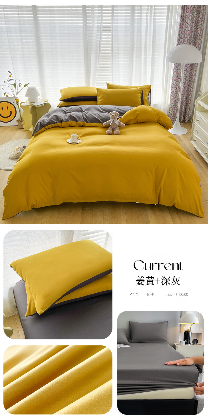 当前位置: 91家纺网 > 商品网购 > 床品套件 > 四件套 > 磨毛活性四件套 > 赫然家纺 2026新款纯色磨毛系列床笠款四件套 姜黄+深灰