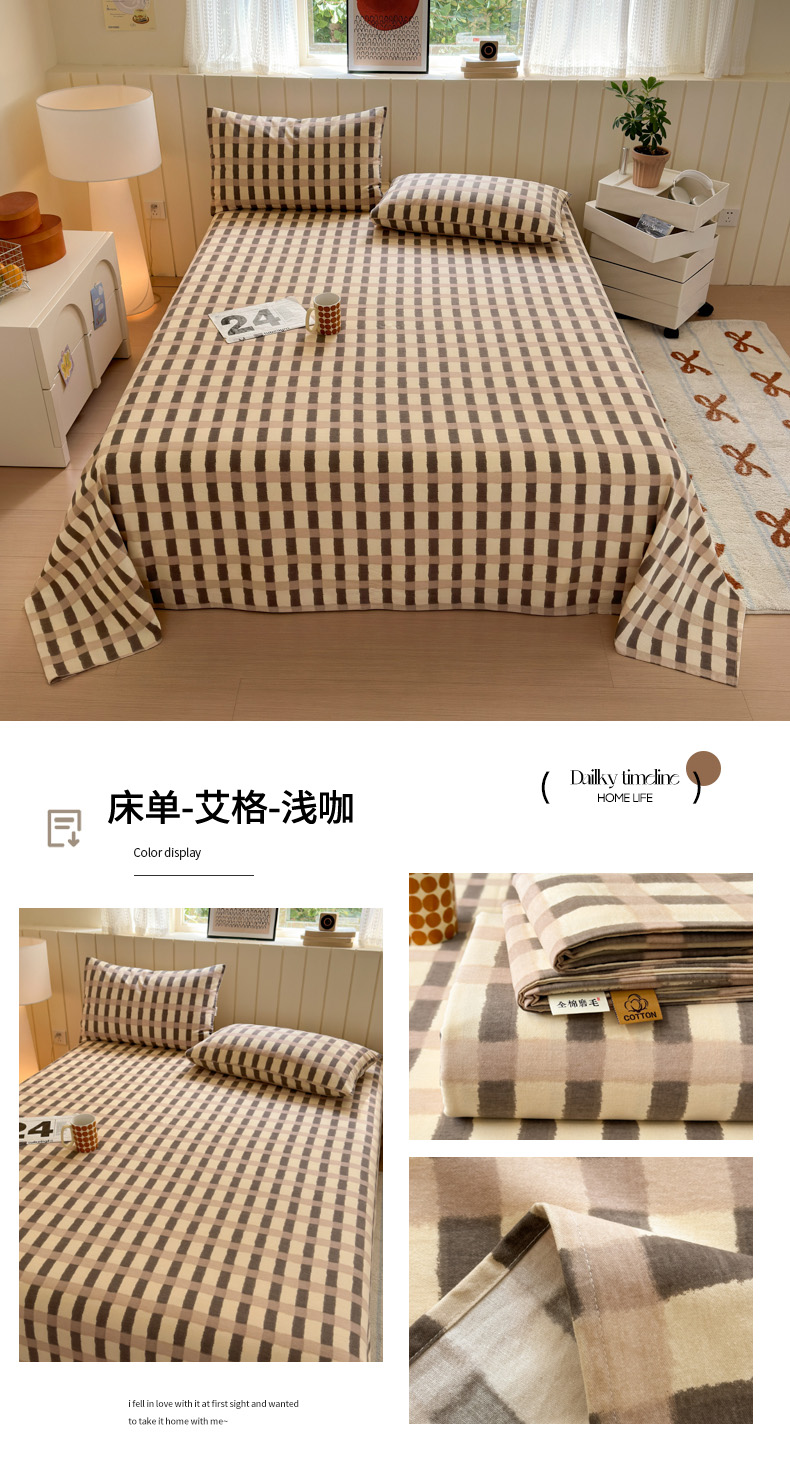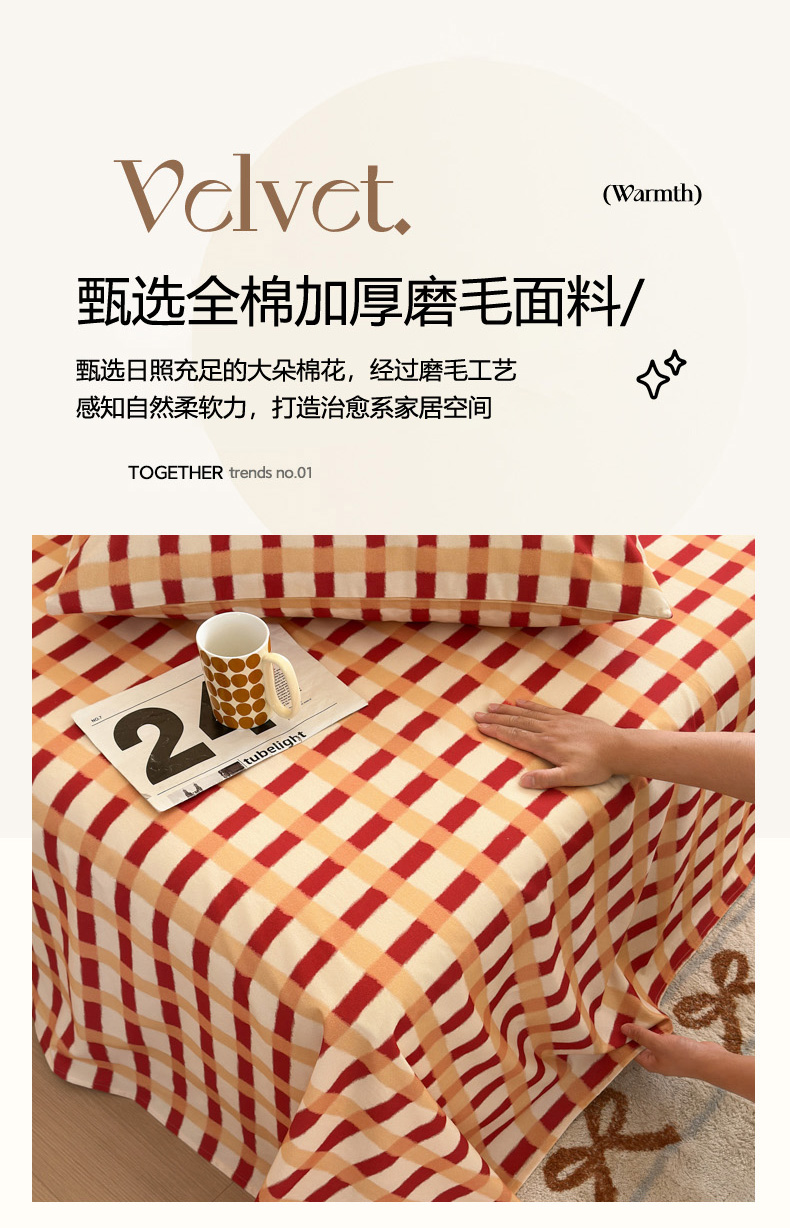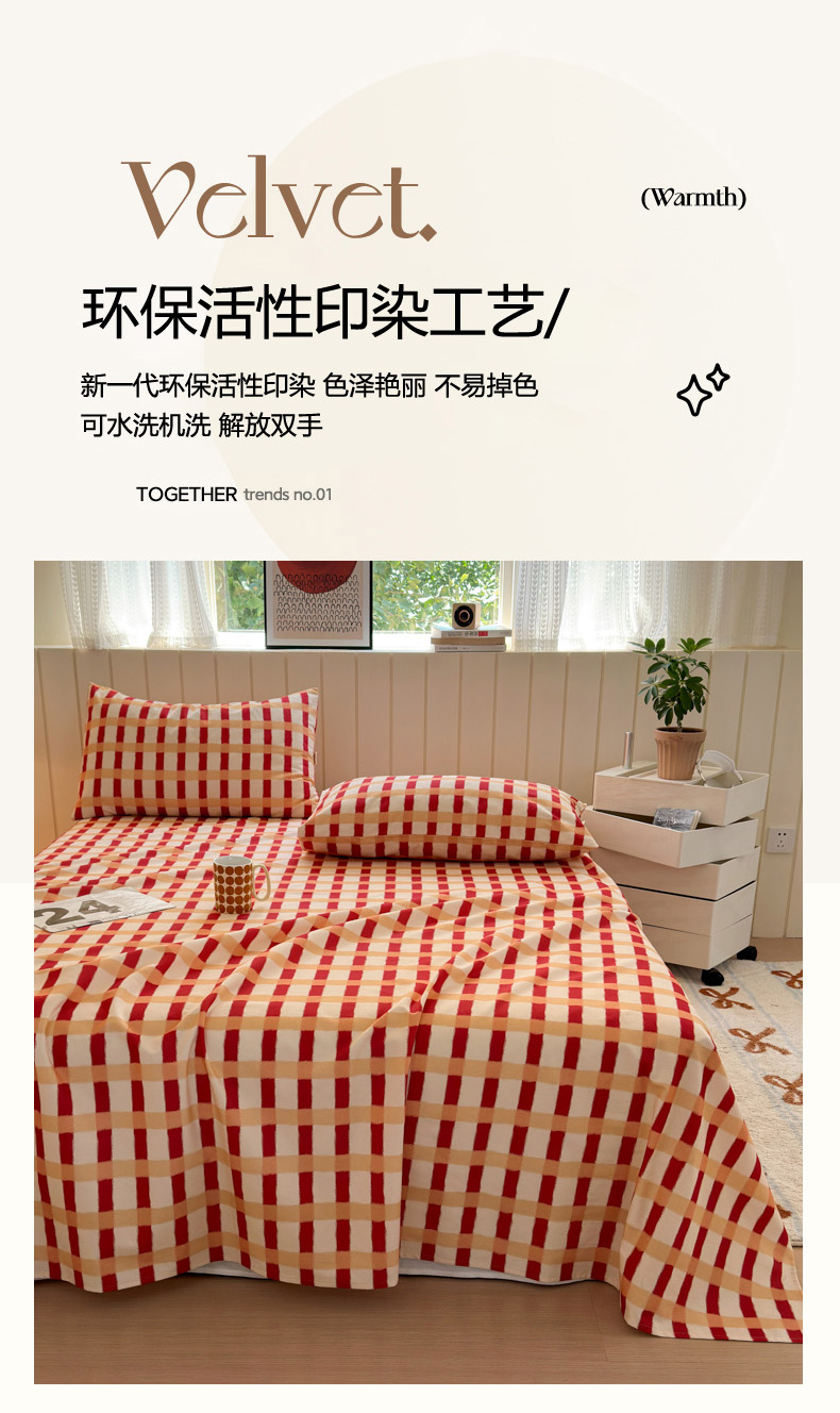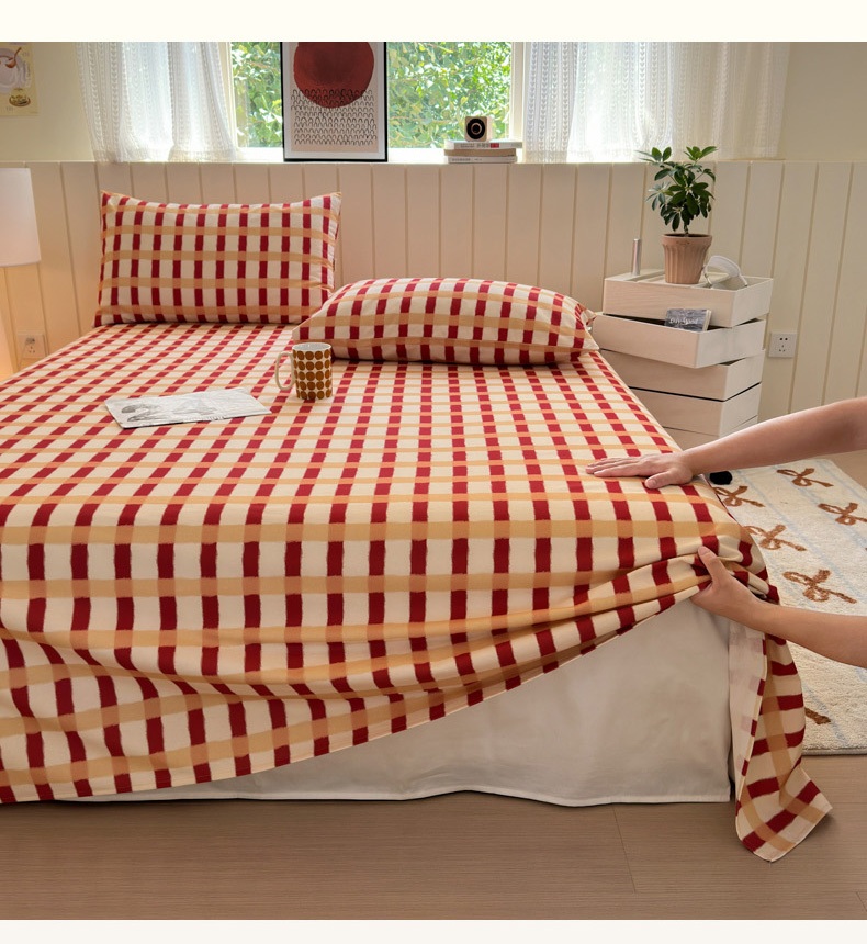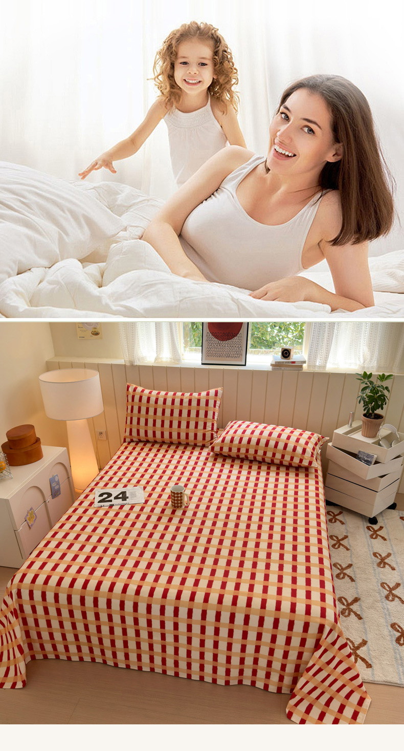 如意朵 2025新款时尚印花全棉加厚磨毛床单 艾格-红
