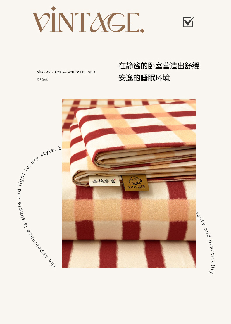 商品名称:如意朵 2025新款时尚印花全棉加厚磨毛床单 艾格-红