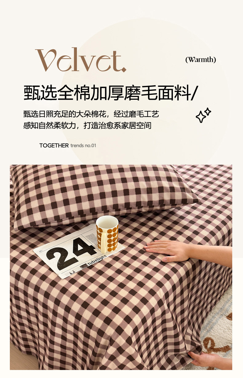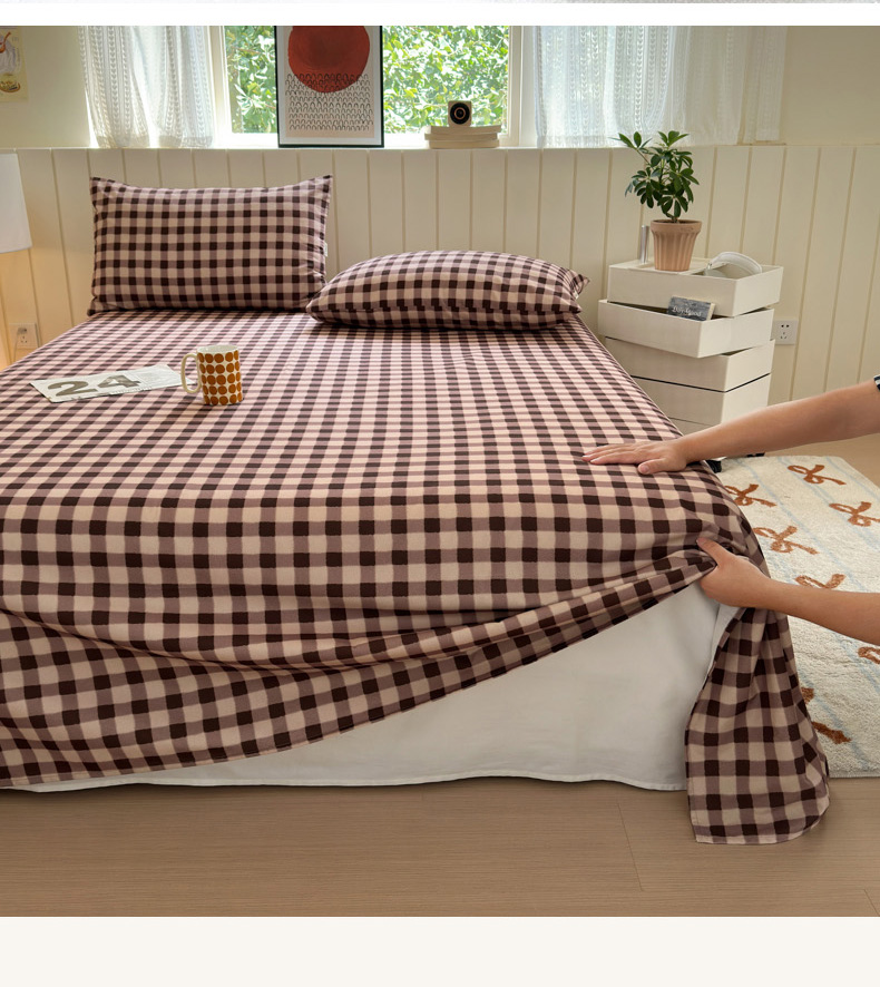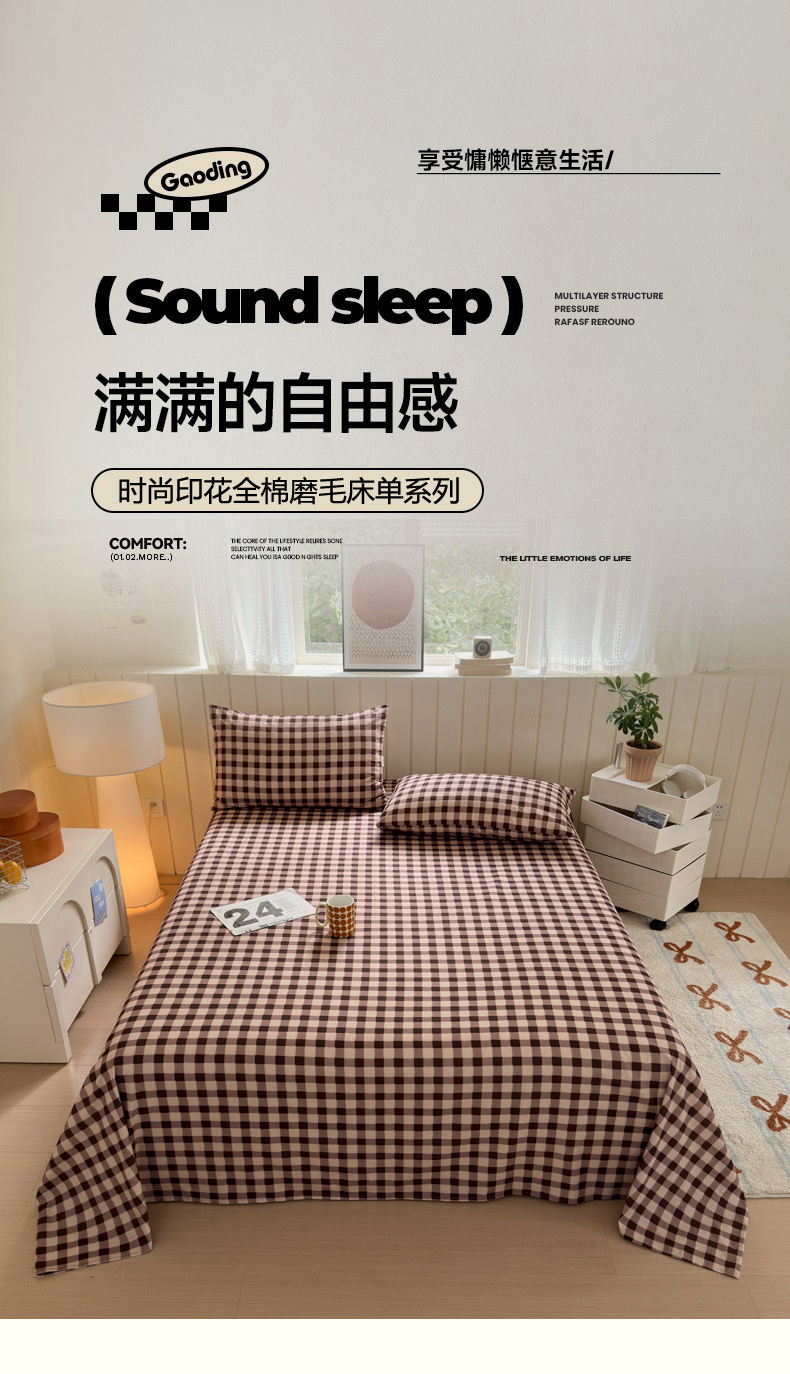 商品名称:如意朵 2025新款时尚印花全棉加厚磨毛床单 可可-咖