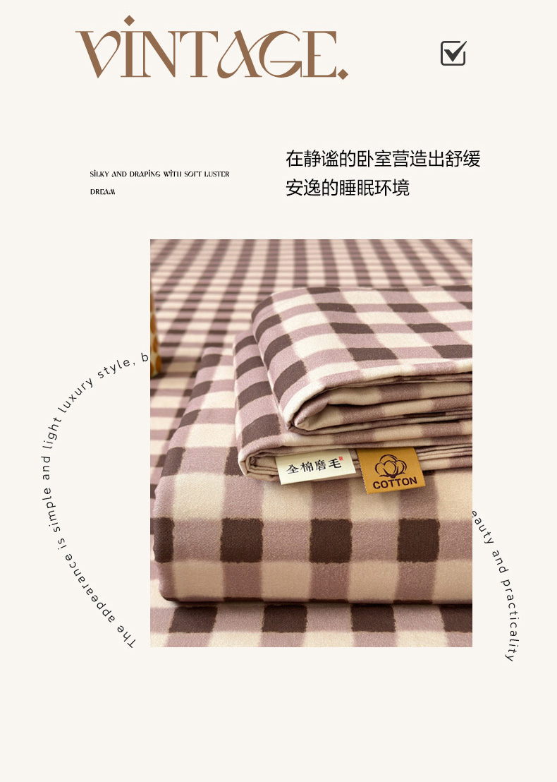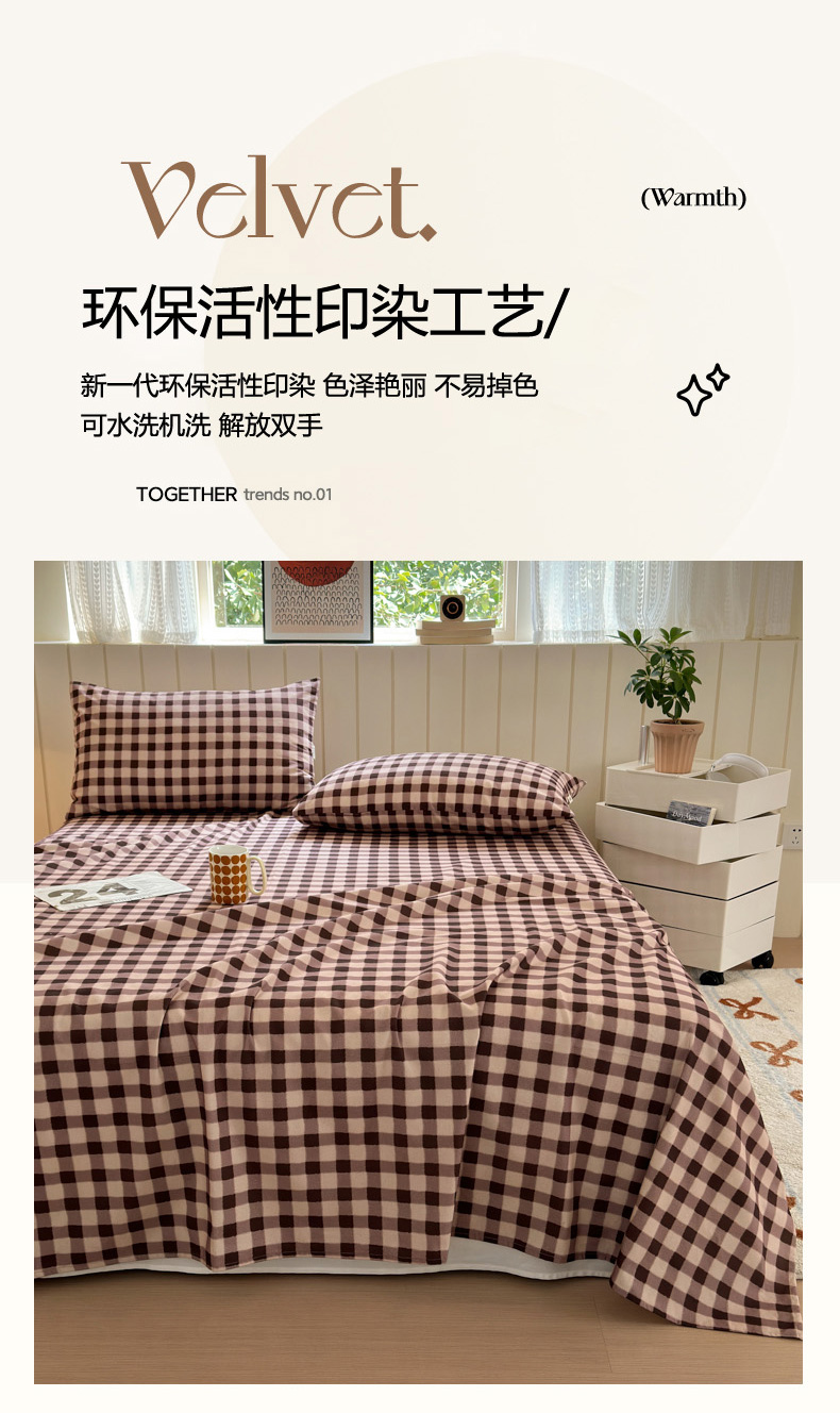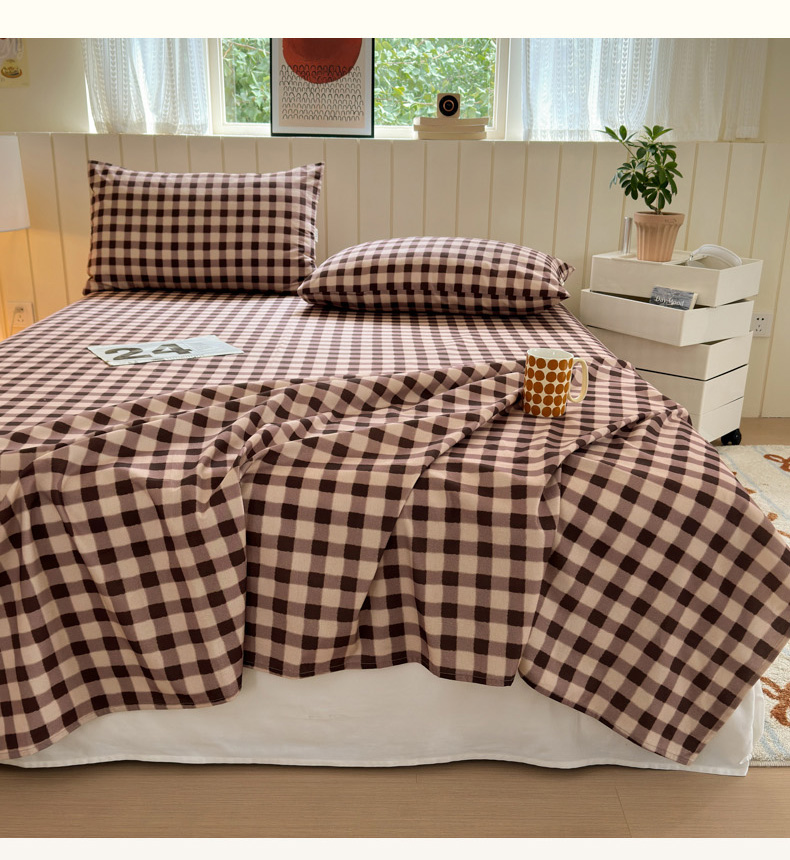 如意朵 2025新款时尚印花全棉加厚磨毛床单 可可-咖