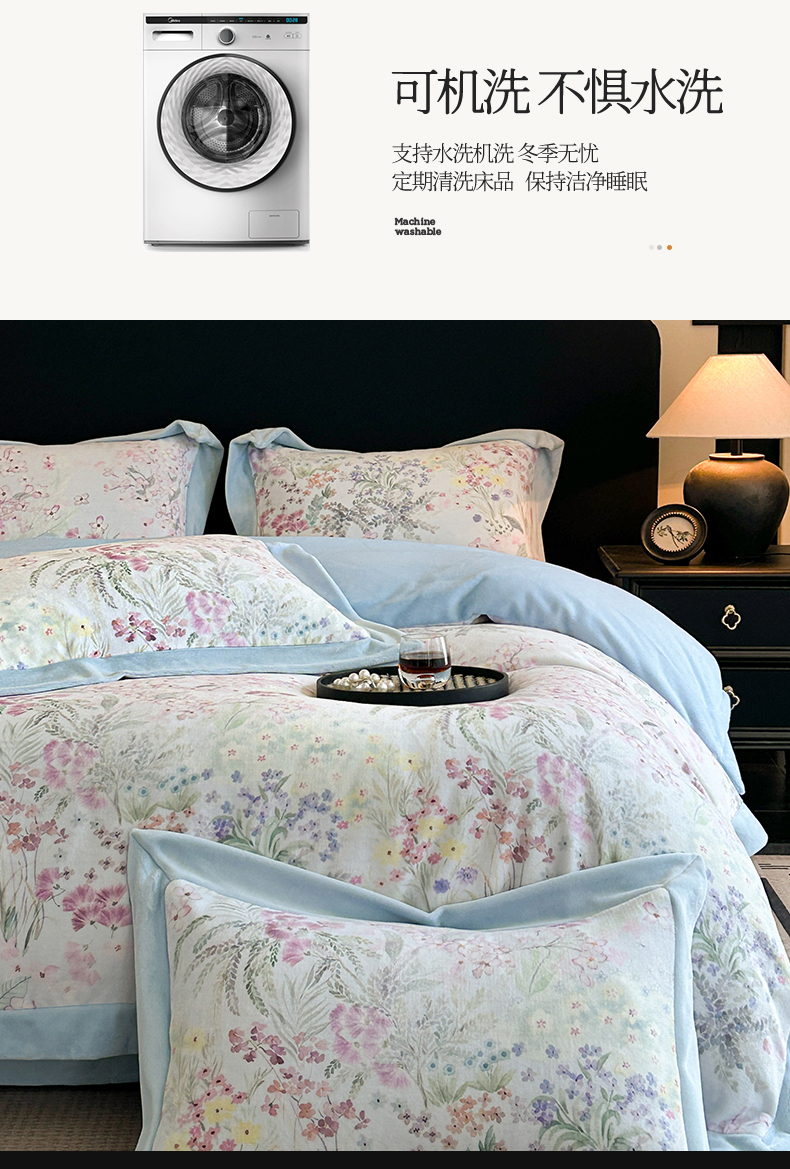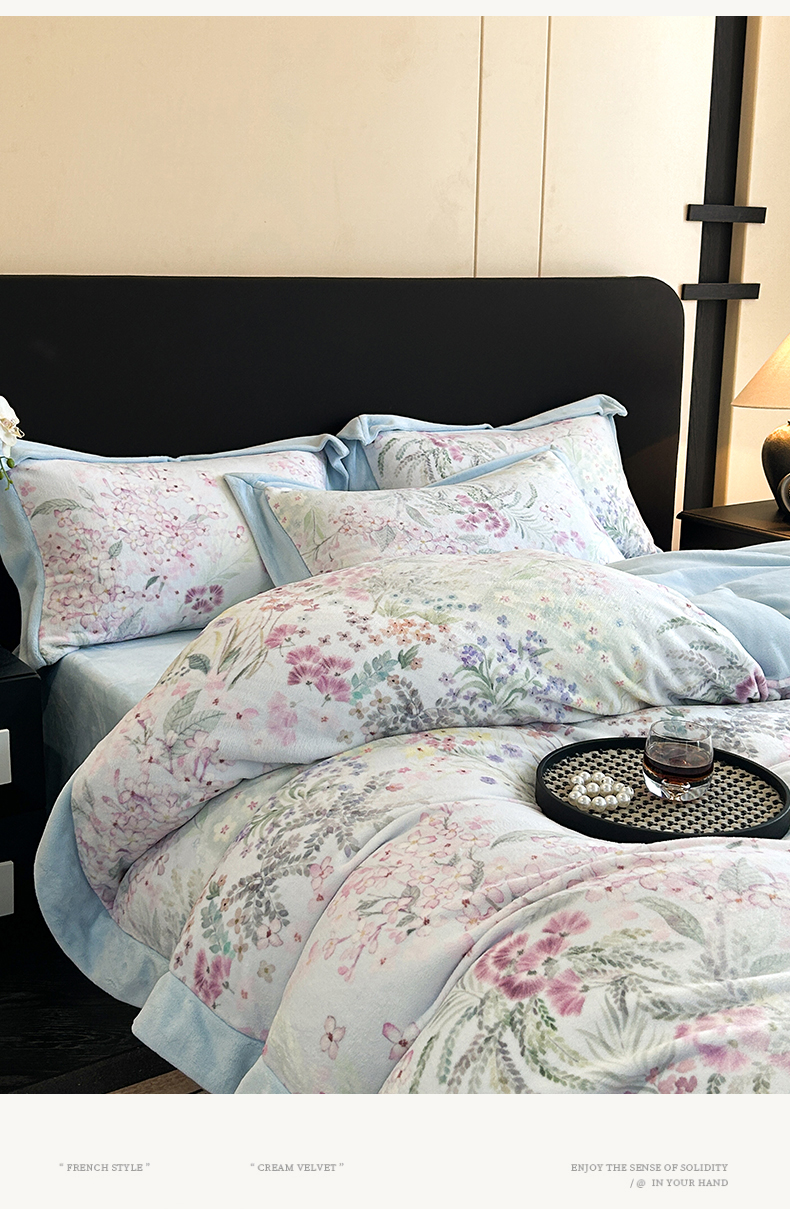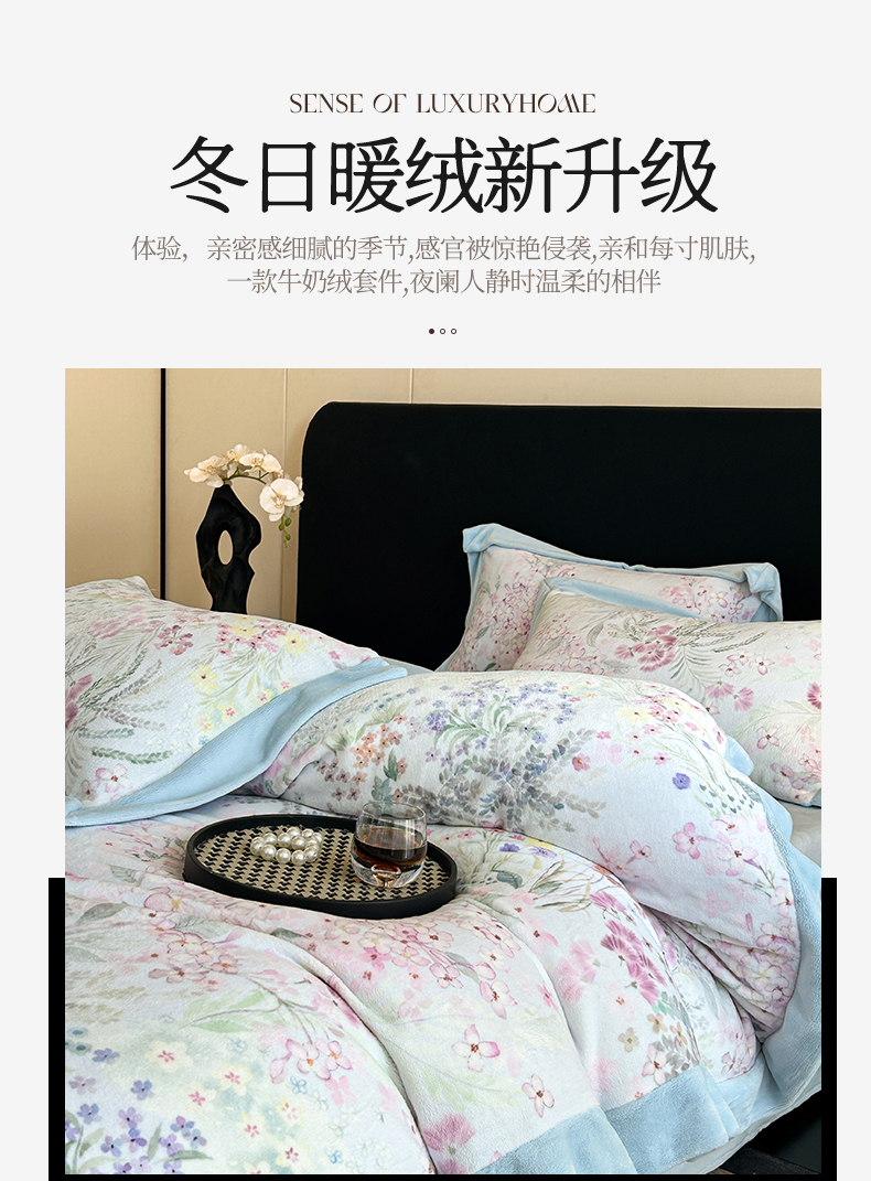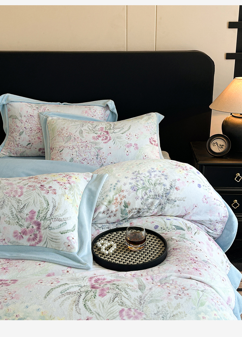 当前位置: 91家纺网 > 商品网购 > 床品套件 > 四件套 > 牛奶绒四件套 > 笙意家纺 2025新款加厚牛奶绒法式数码印花宽边四件套 花海