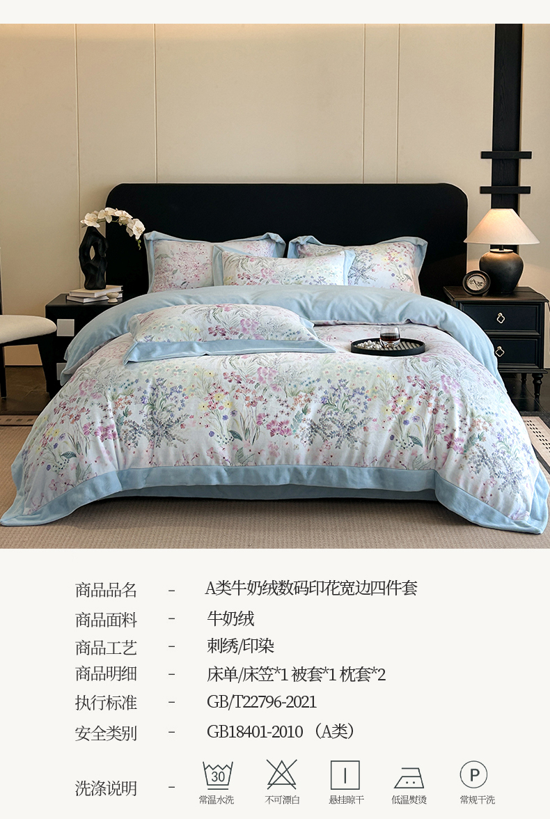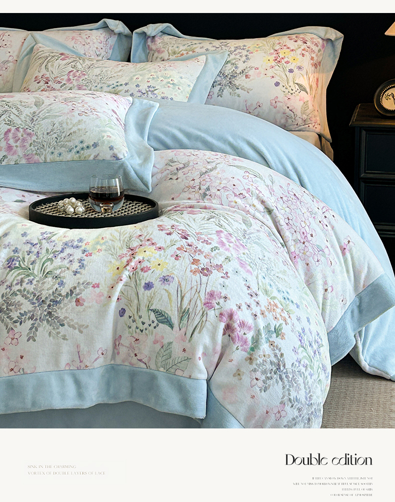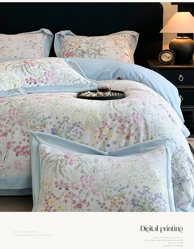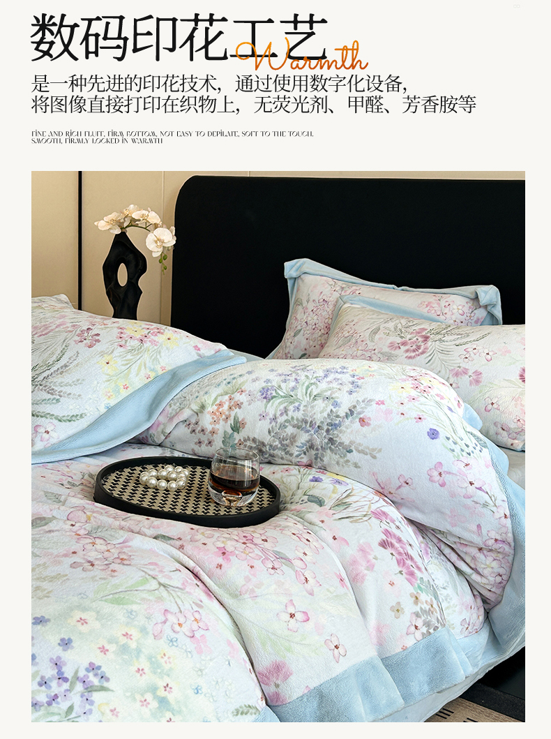 当前位置: 91家纺网 > 商品网购 > 床品套件 > 四件套 > 牛奶绒四件套 > 笙意家纺 2025新款加厚牛奶绒法式数码印花宽边四件套 花海