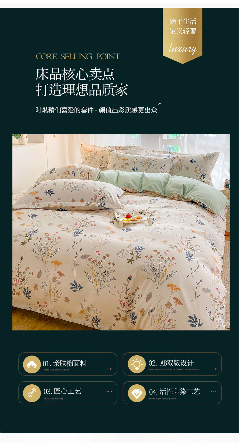 南通菲度家纺 2025新款高克重芦荟棉四件套-大床 花开盛夏