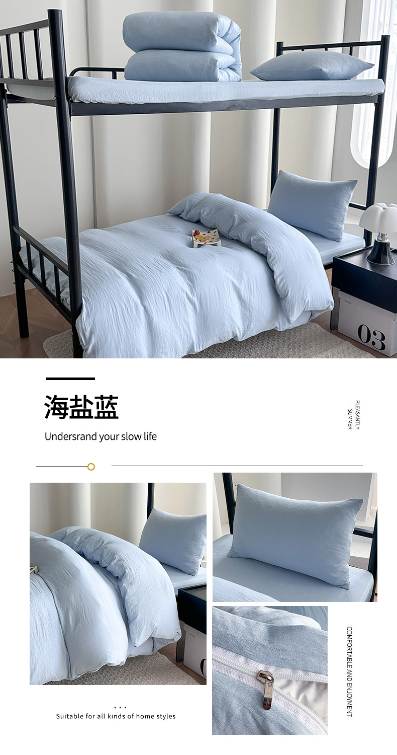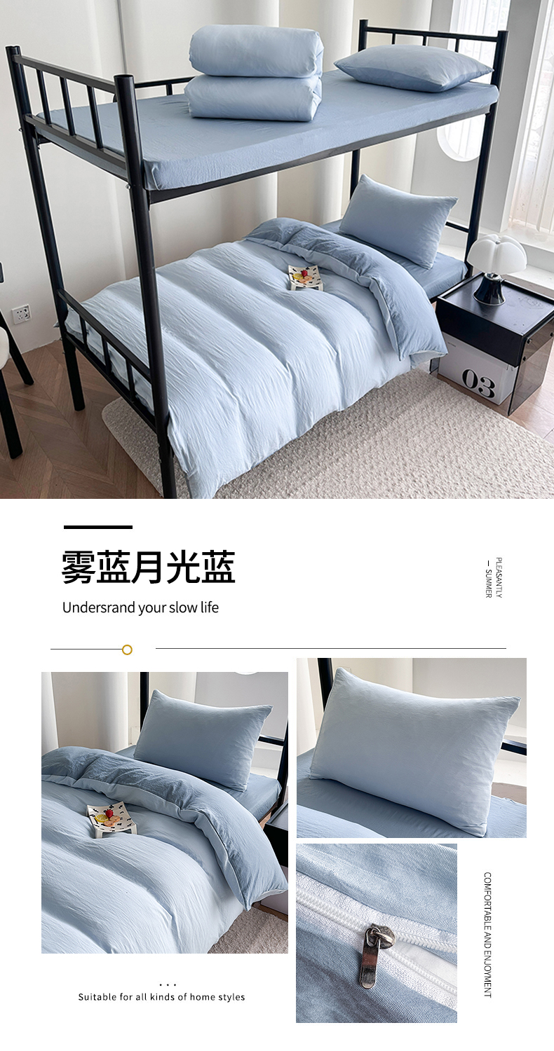 当前位置: 91家纺网 > 商品网购 > 床品套件 > 四件套 > 水洗棉四件套 > 南通菲度家纺 2025新款超柔皱皱水洗棉学生宿舍四件套 浅粉灰