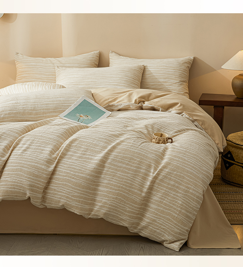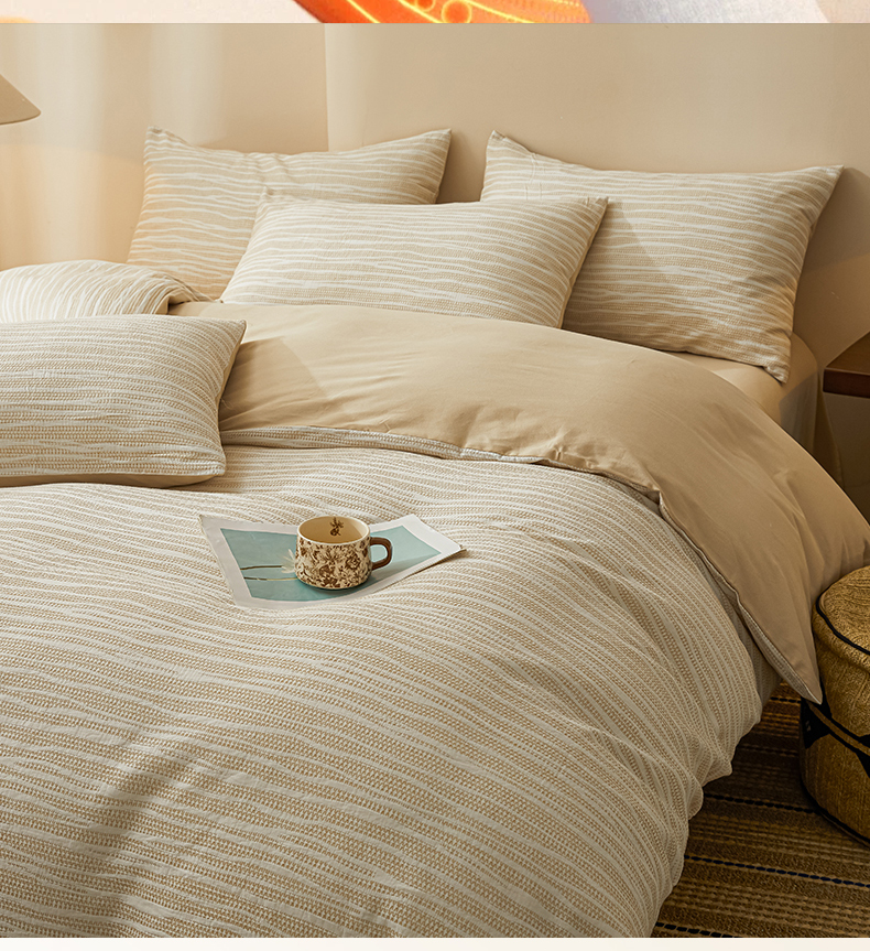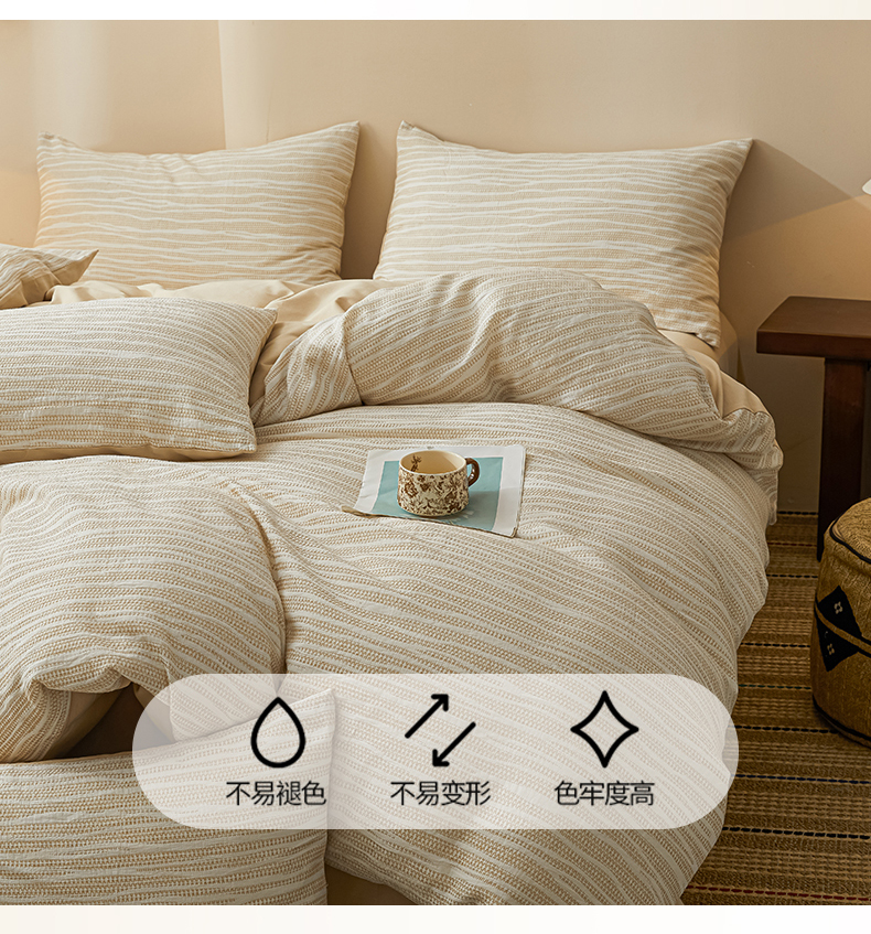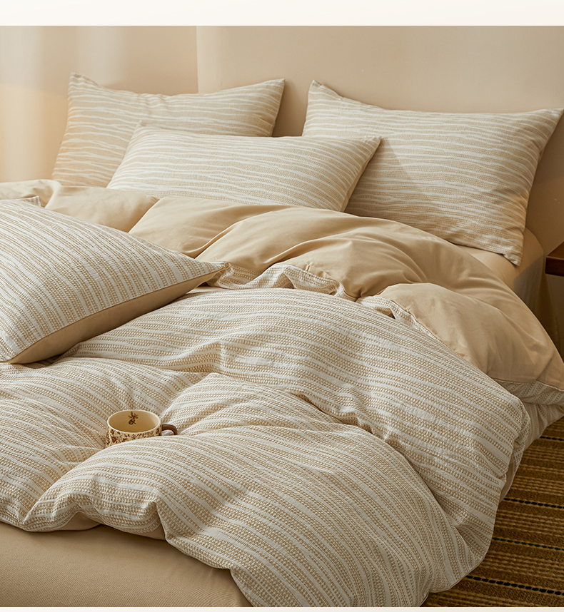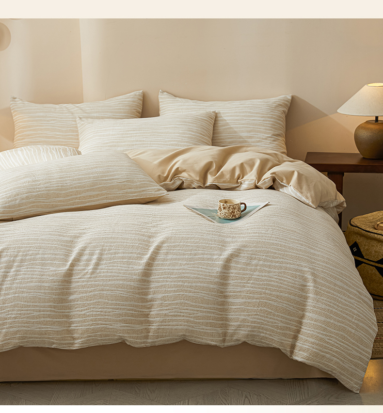 (总)莱茵家居 2026新款A类全棉色织日系芝麻锻纹套件-暮云系列,暮云-白灰,暮云-灰白,暮云-棕咖,暮云-米白