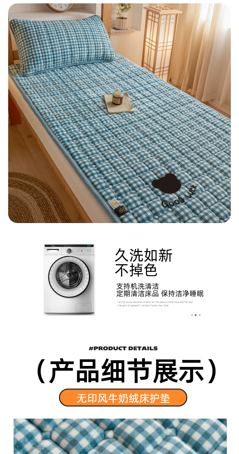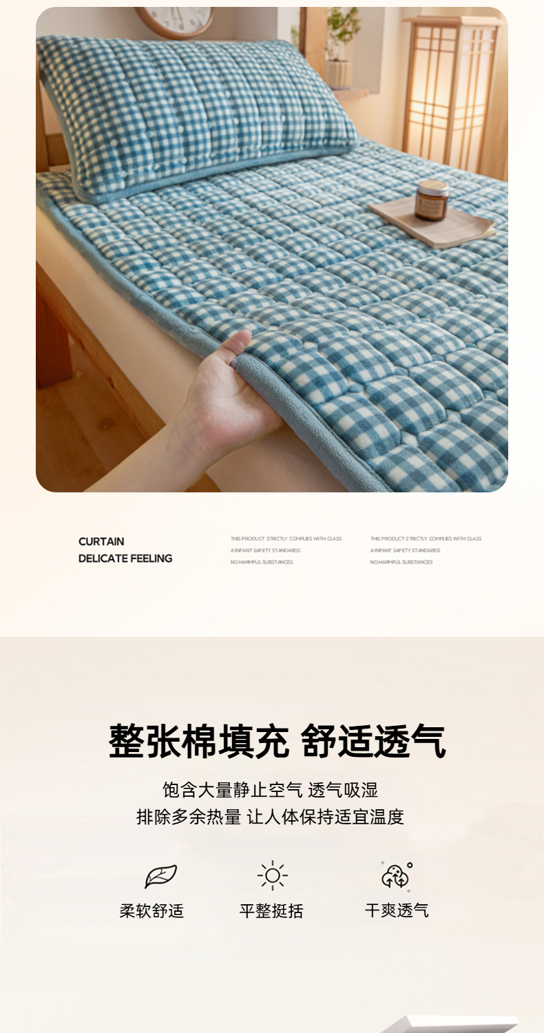 当前位置: 91家纺网 > 商品网购 > 床垫/床褥 > 普通床垫 > 爱屋及屋 2025新款无印风牛奶绒床护垫-学生床 牛奶绒-蓝小格