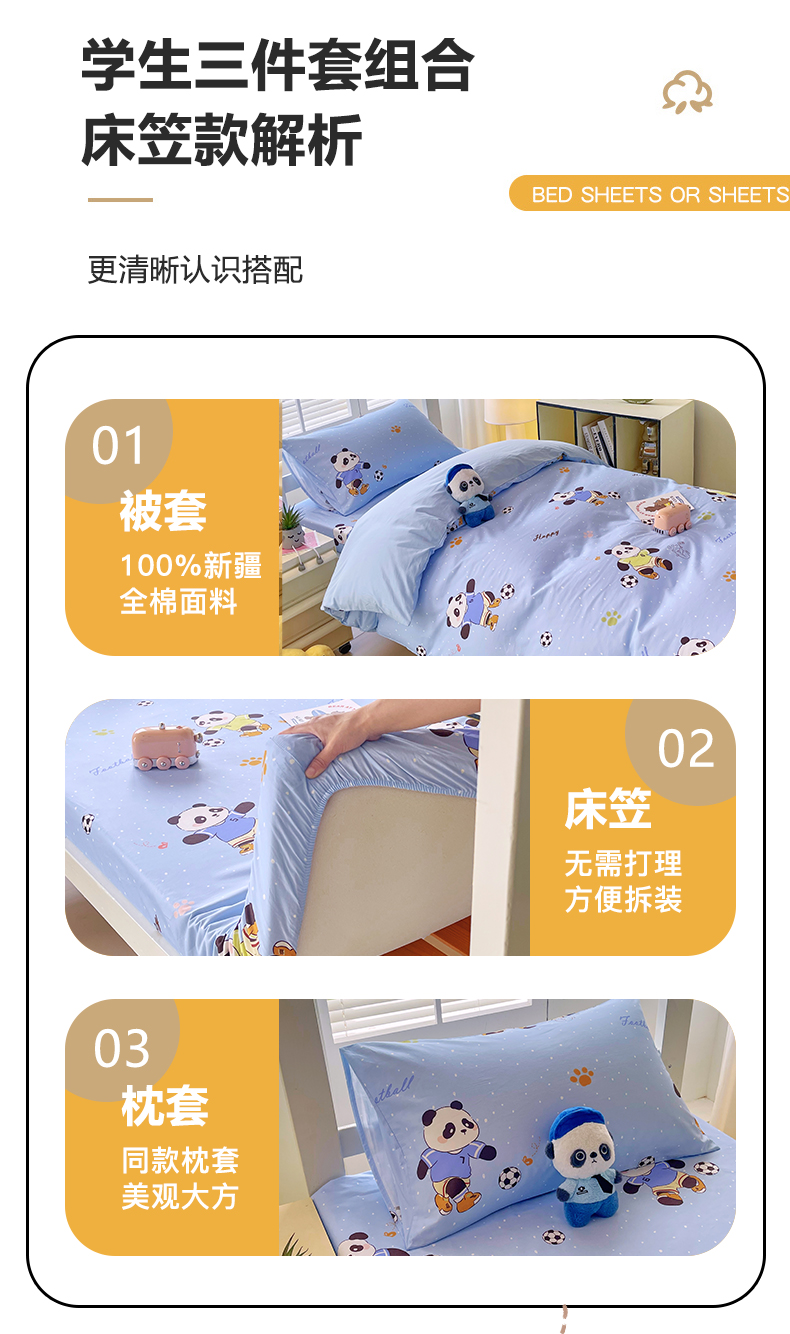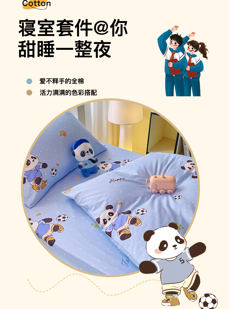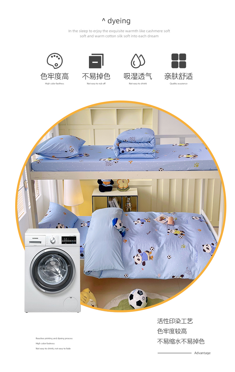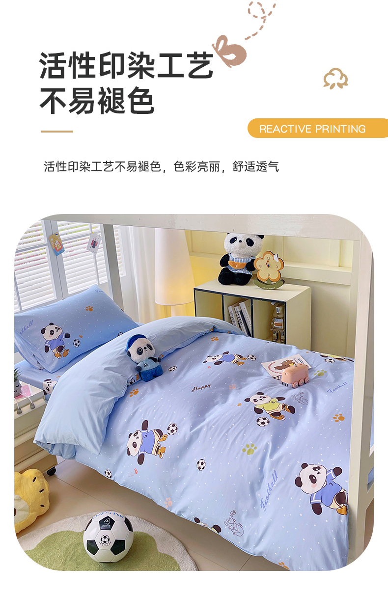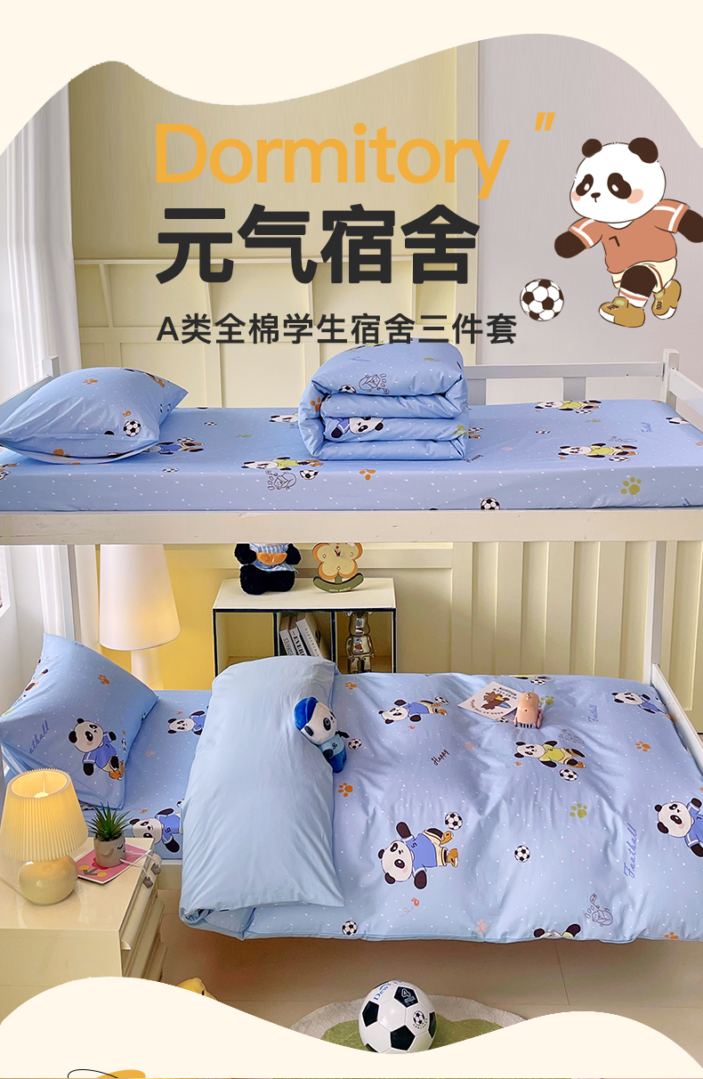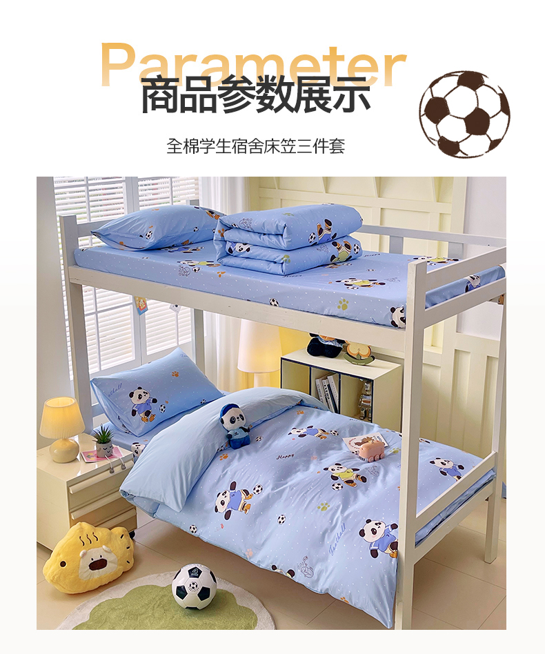 当前位置: 91家纺网 > 商品网购 > 床品套件 > 三件套 > 金鑫汇家纺 2025新款A类全棉纯棉印花学生床宿舍上下铺三件套 足球争霸赛-蓝
