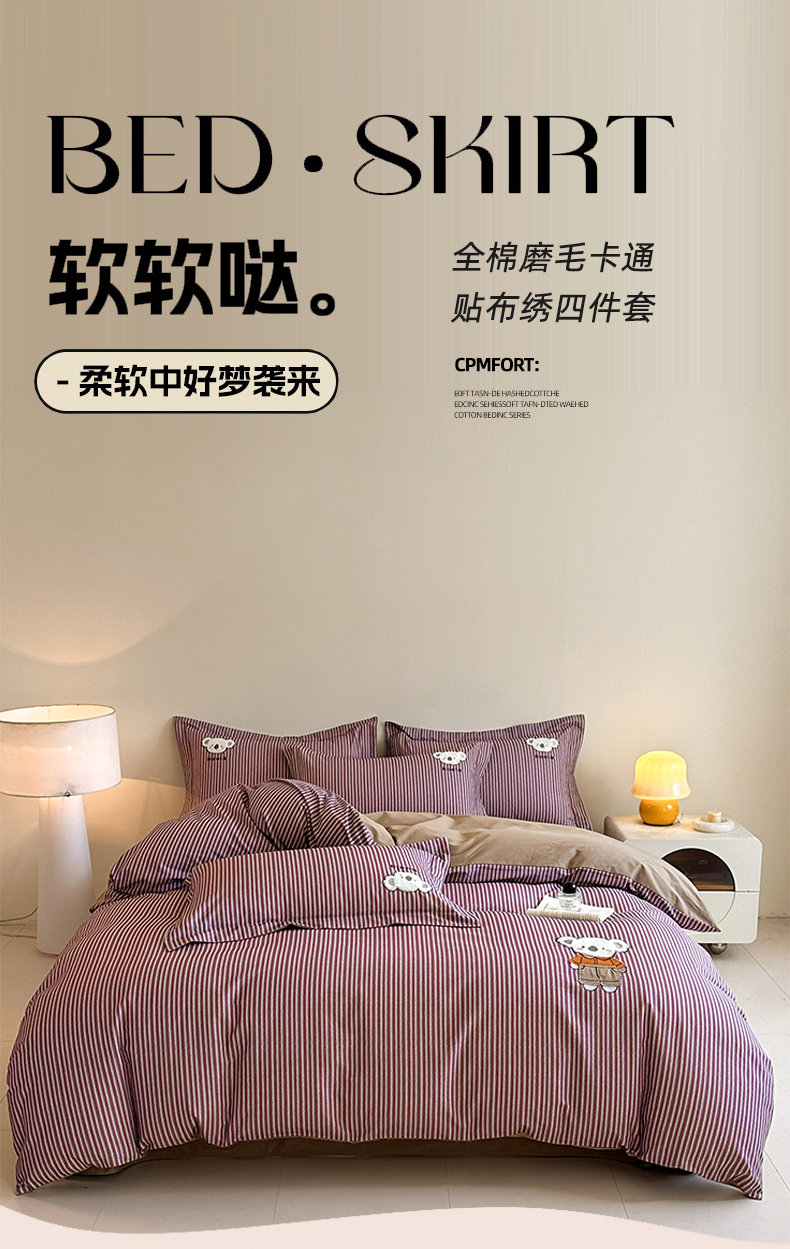 当前位置: 91家纺网 > 商品网购 > 床品套件 > 四件套 > 普通磨毛四件套 > (总)禾时 2025新款全棉磨毛卡通刺绣四件套