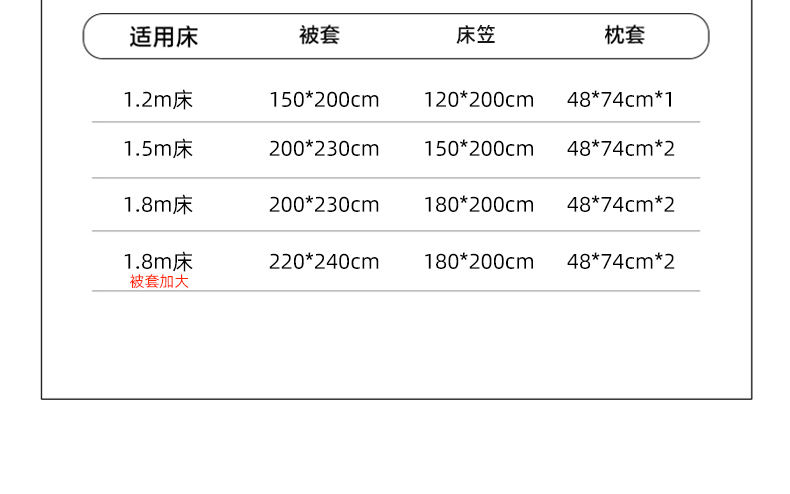 1.8m床笠款被套加大四件套 | ¥180.00 |