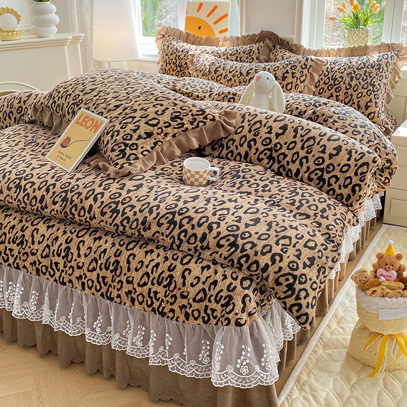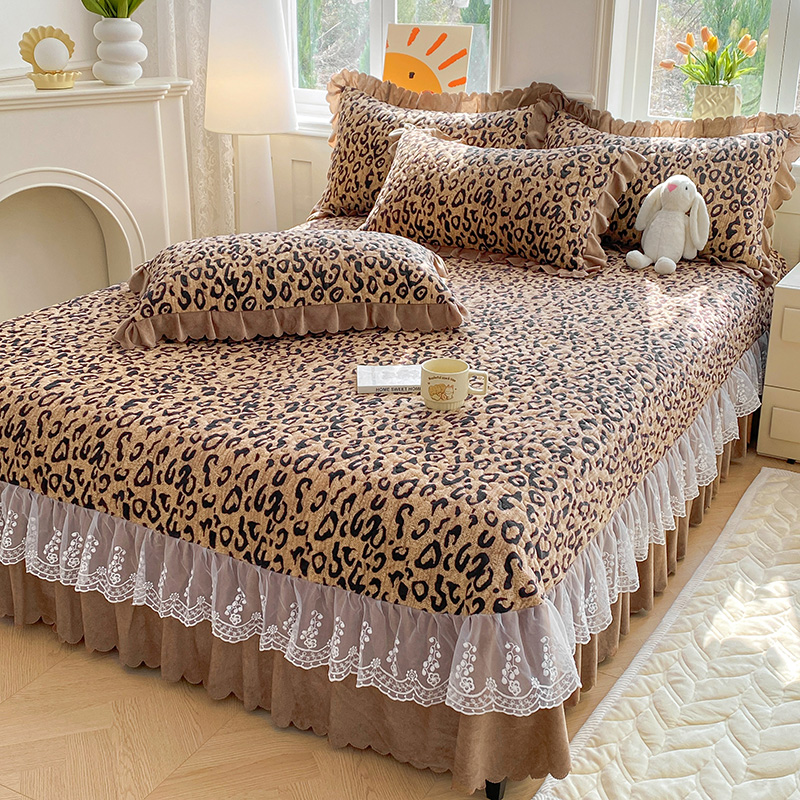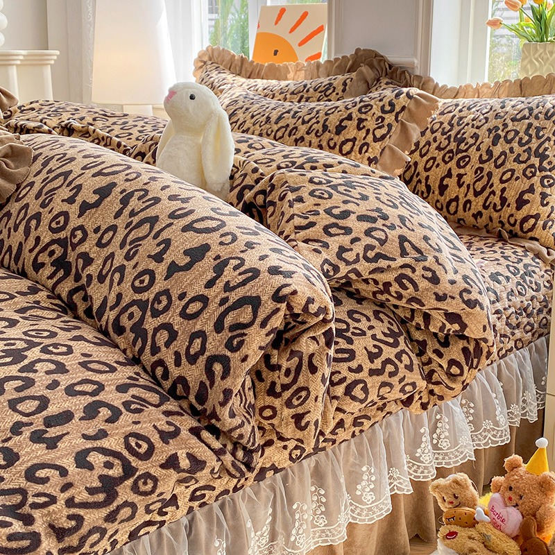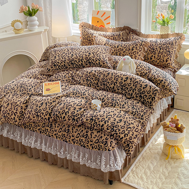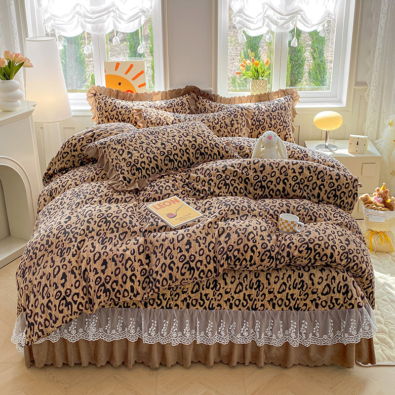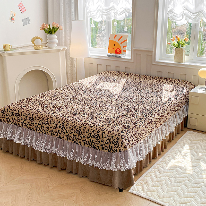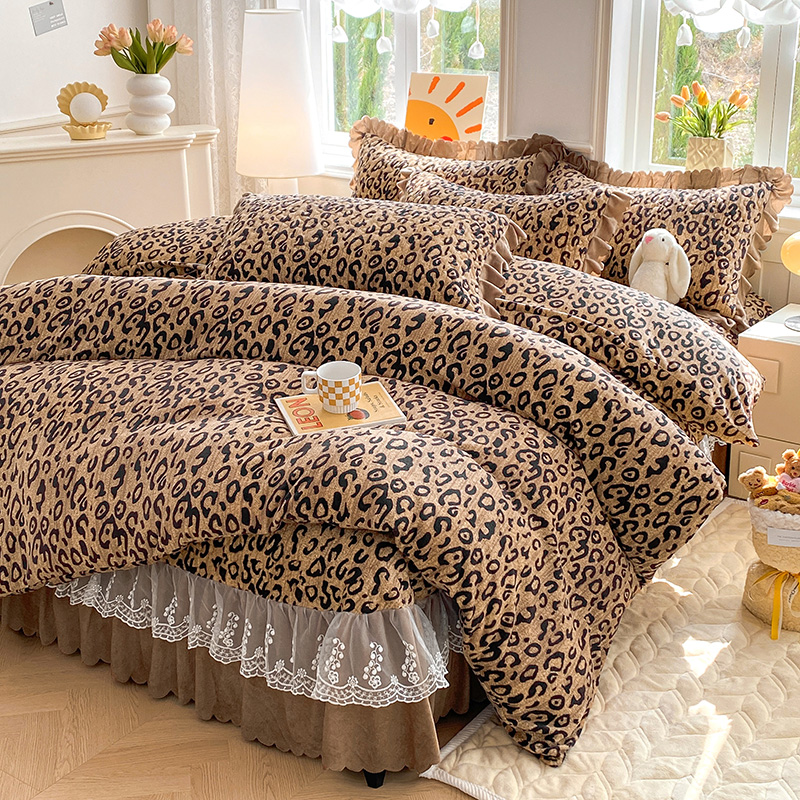 当前位置: 91家纺网 > 商品网购 > 床品套件 > 四件套 > 牛奶绒四件套 > 提花大世界 2025新款爆款高克重牛奶绒印花夹棉蕾丝花边床盖床三件四件套 豹纹