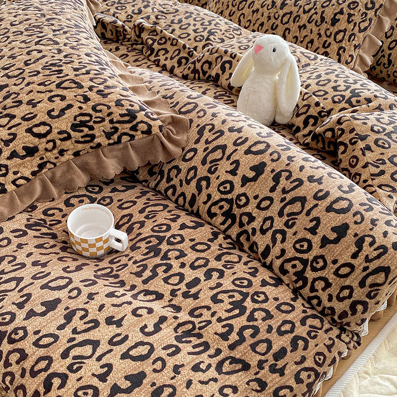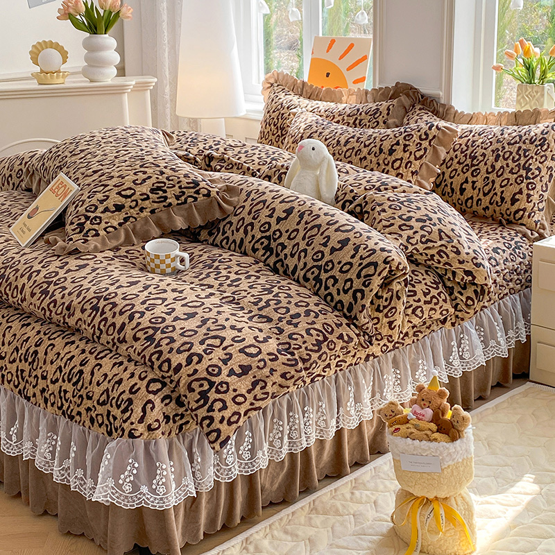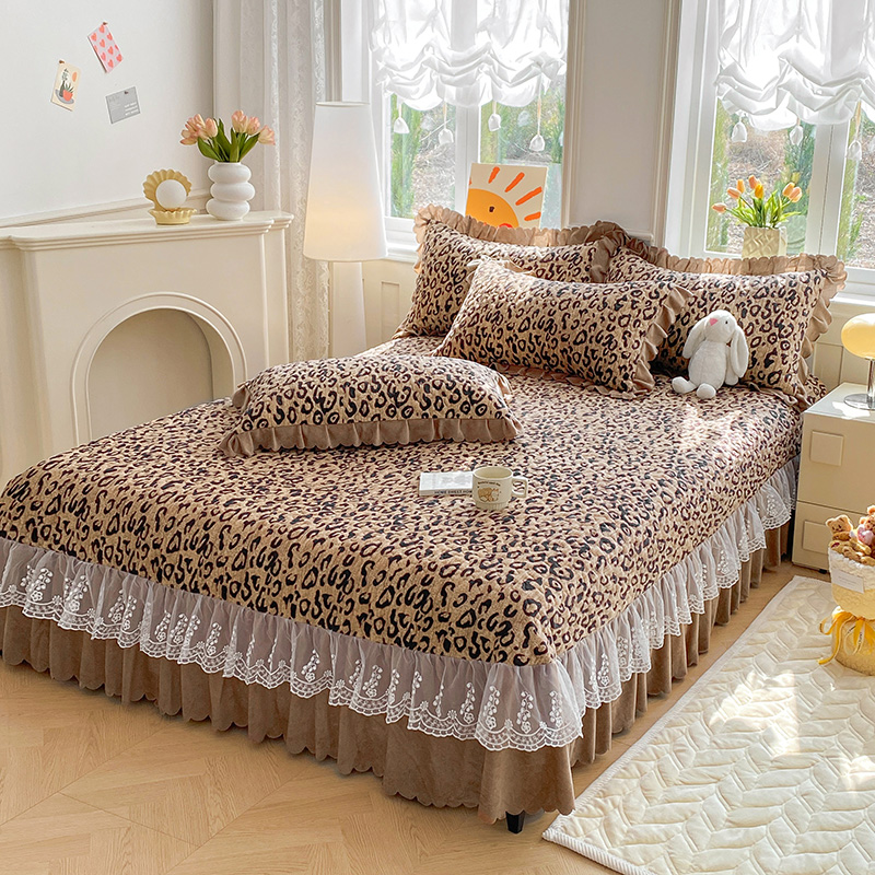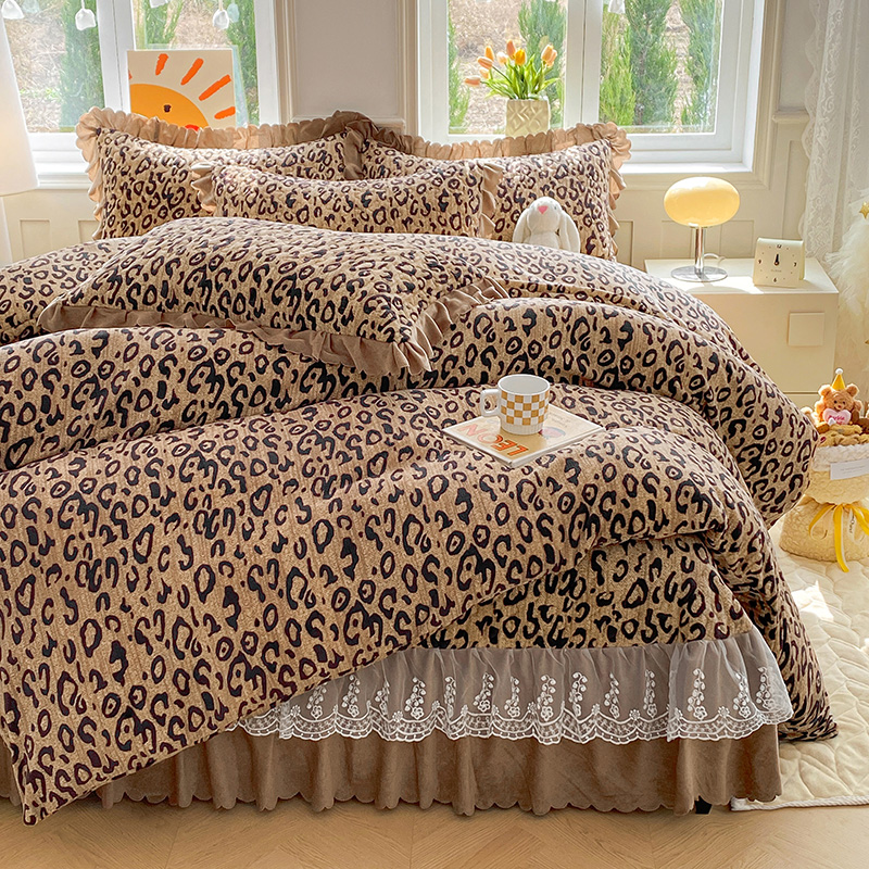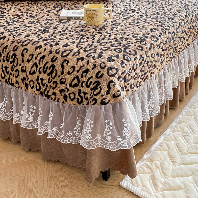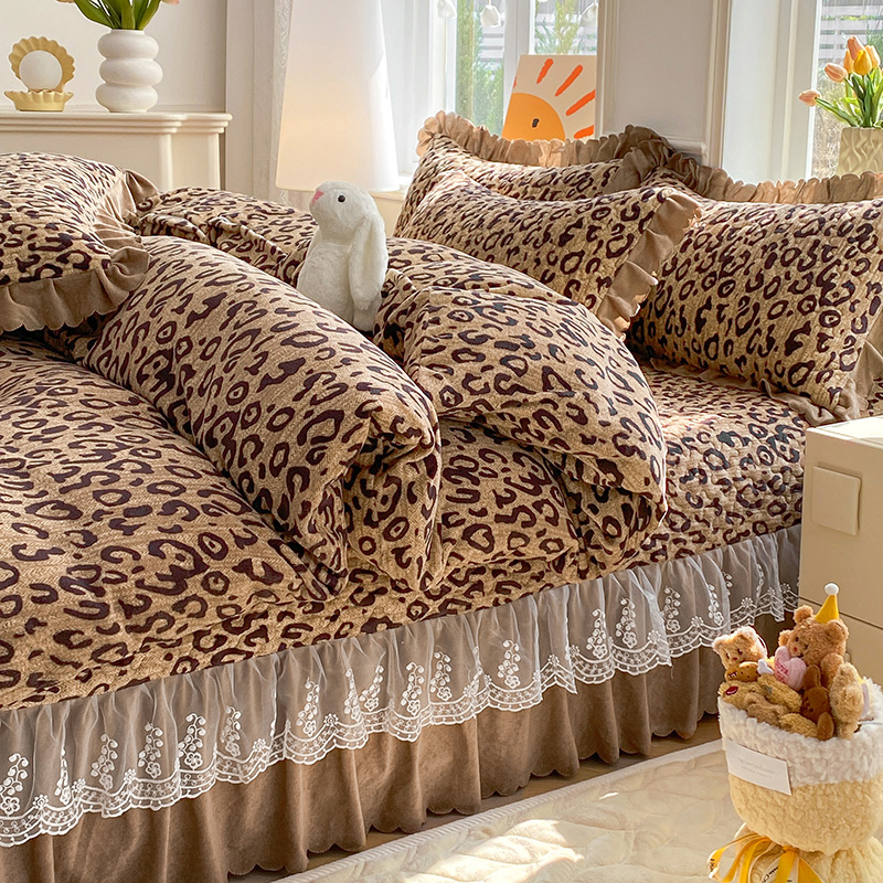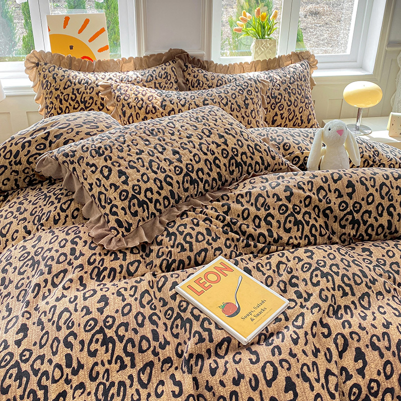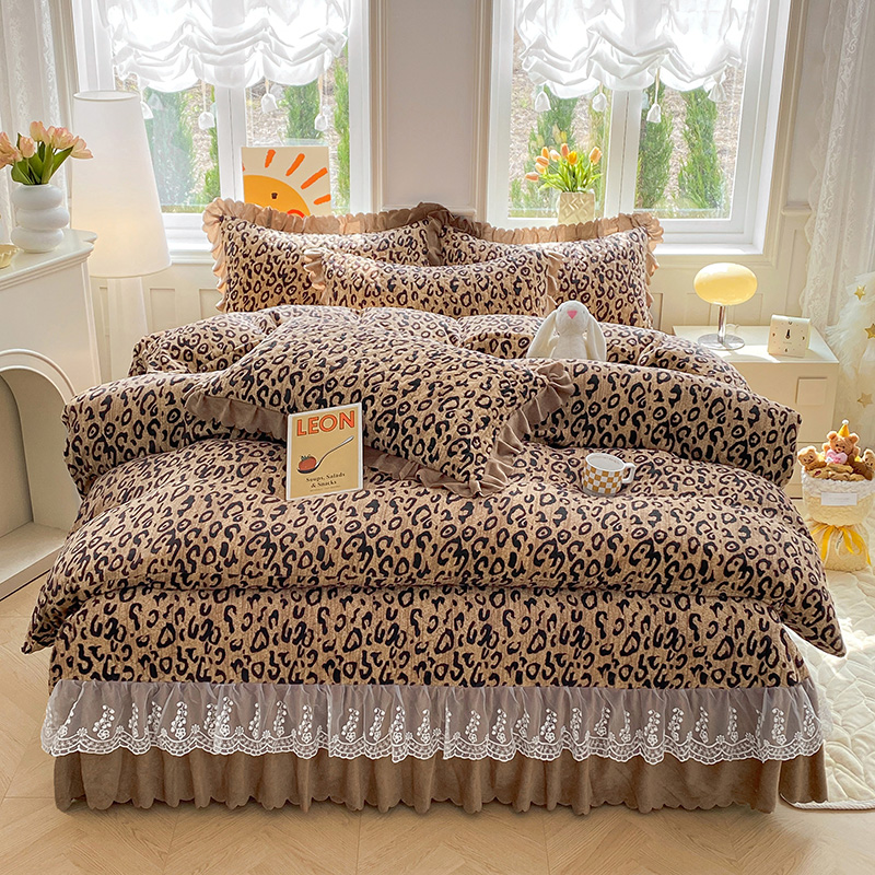当前位置: 91家纺网 > 商品网购 > 床品套件 > 四件套 > 牛奶绒四件套 > 提花大世界 2025新款爆款高克重牛奶绒印花夹棉蕾丝花边床盖床三件四件套 豹纹