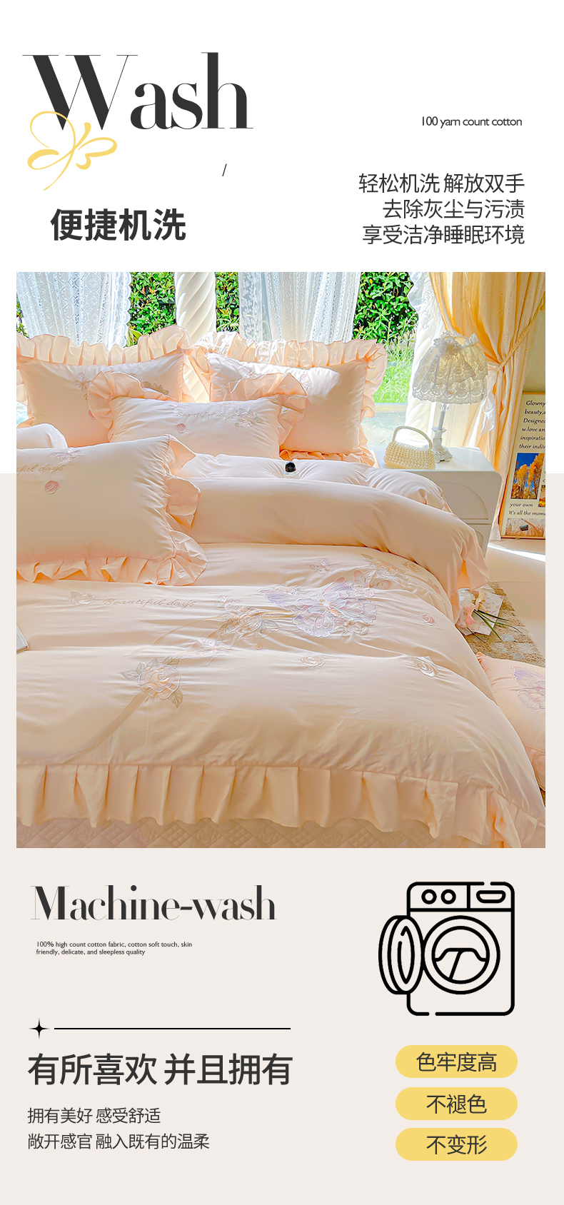 宜凡家纺 2025新款长绒棉绣花夹棉床盖四件套--蝶恋笙花系列 蝶恋笙花 芙蓉玉