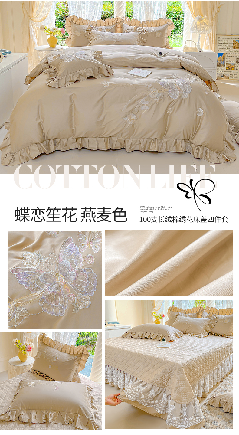 商品名称:宜凡家纺 2025新款长绒棉绣花夹棉床盖四件套--蝶恋笙花系列 蝶恋笙花 芙蓉玉