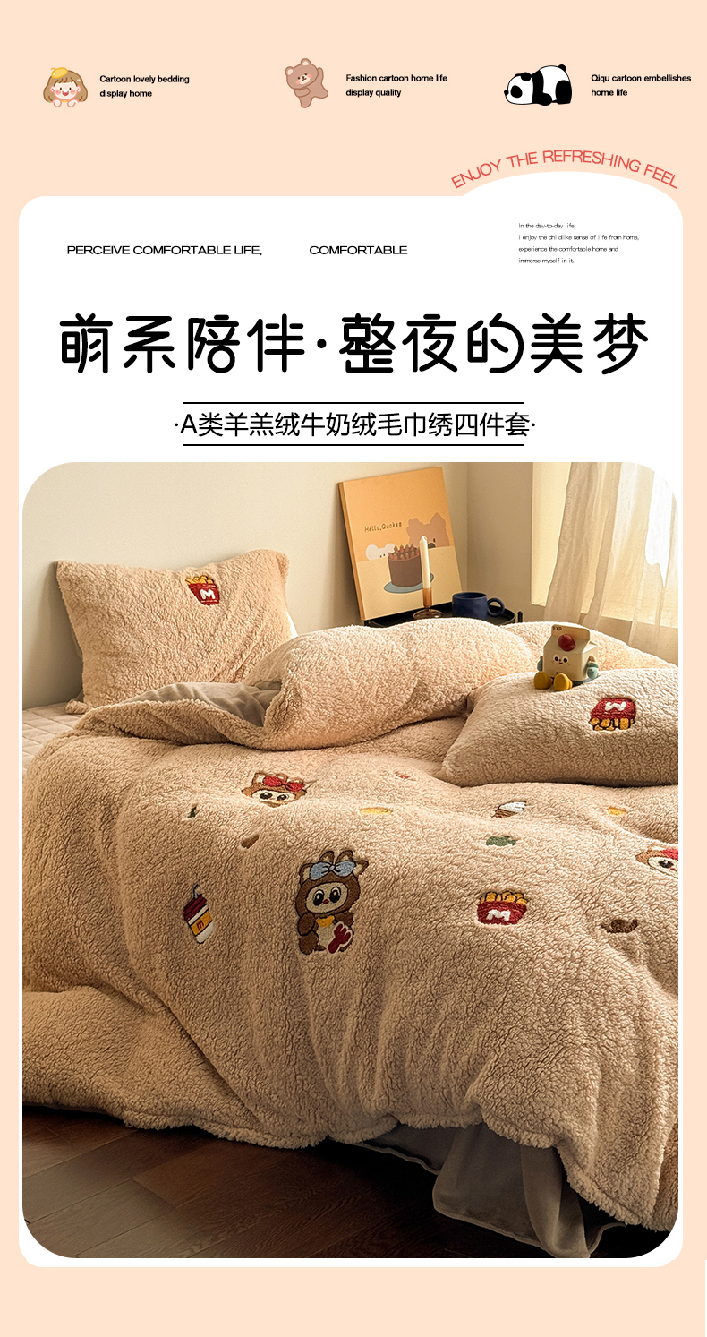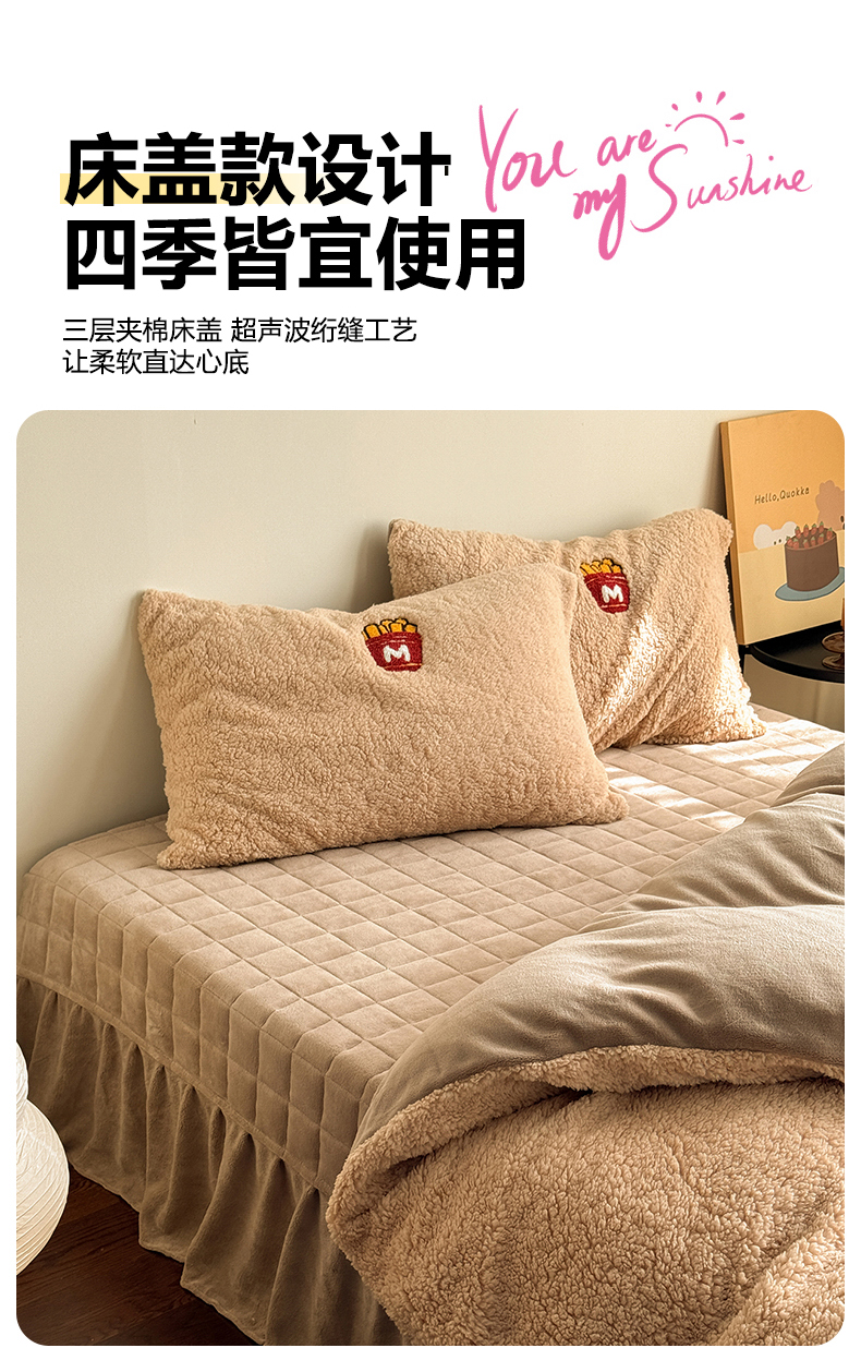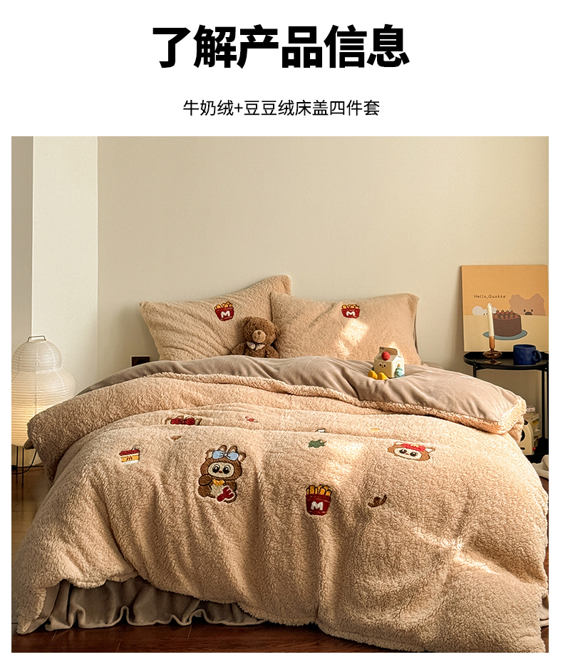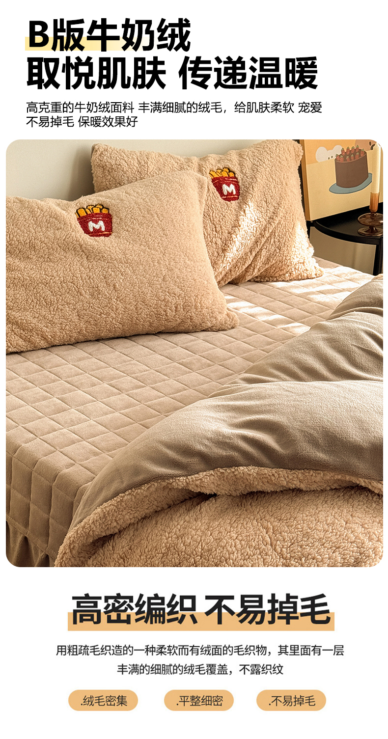 当前位置: 91家纺网 > 商品网购 > 床品套件 > 四件套 > 牛奶绒四件套 > TT.one 塔塔家居 2025新款羊羔绒牛奶绒暖绵绵毛巾绣床单床裙床盖款四件套 甜蜜热可可
