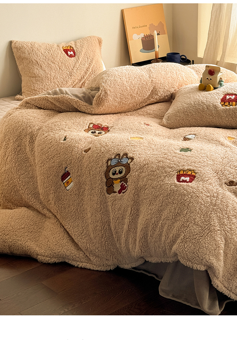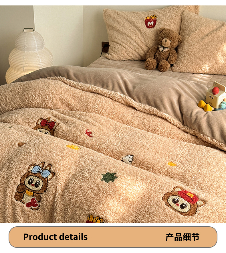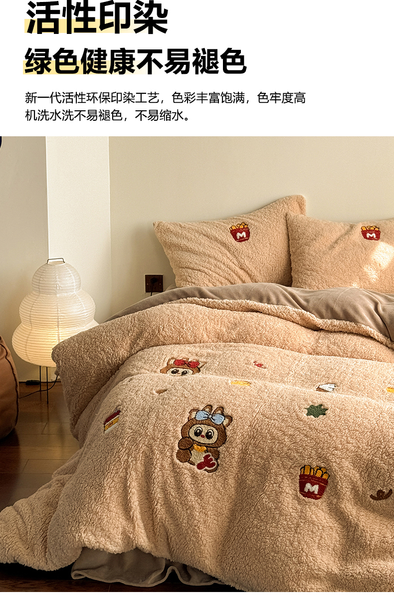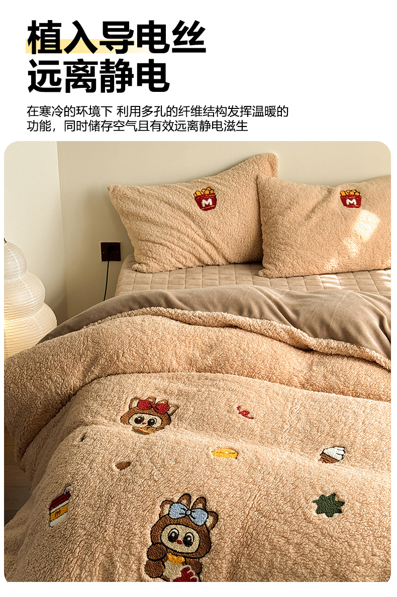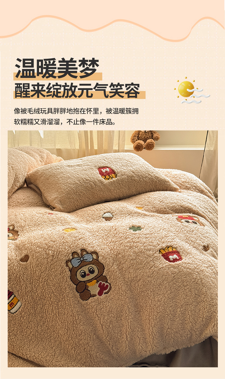 当前位置: 91家纺网 > 商品网购 > 床品套件 > 四件套 > 牛奶绒四件套 > TT.one 塔塔家居 2025新款羊羔绒牛奶绒暖绵绵毛巾绣床单床裙床盖款四件套 甜蜜热可可