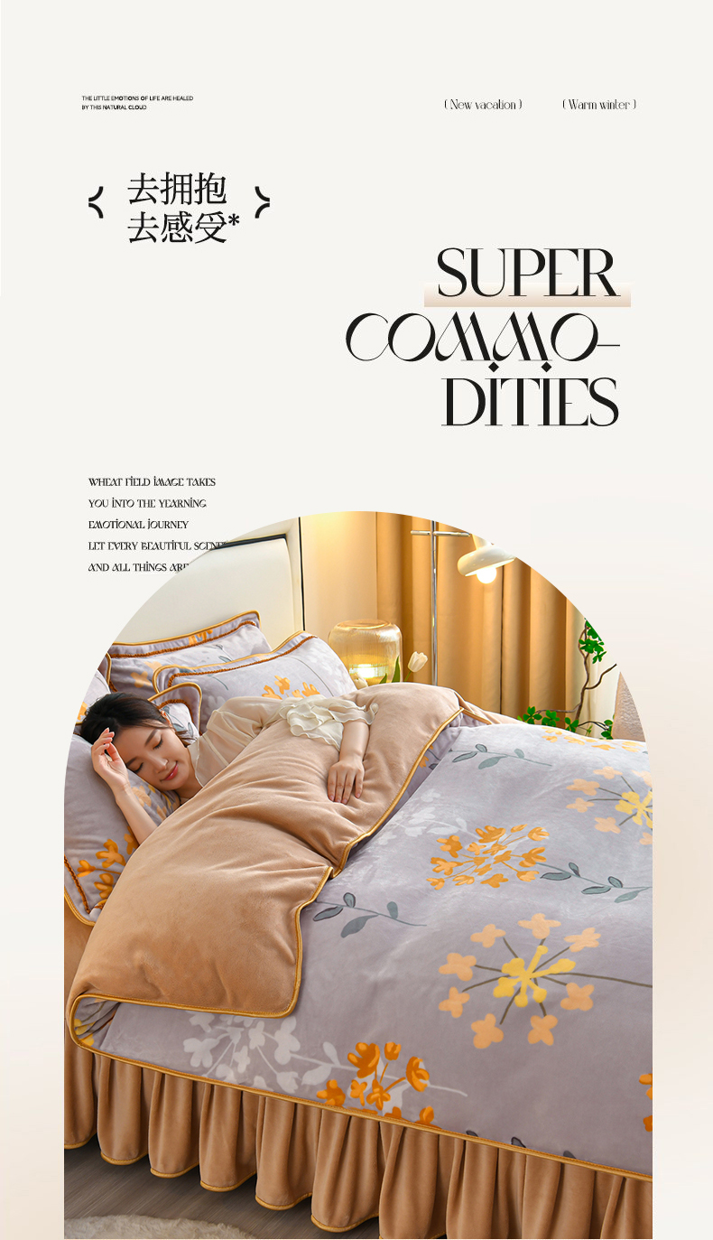 商品名称:橘姿家纺 2025新款9-10斤牛奶绒四件套金貂绒四件套 约定