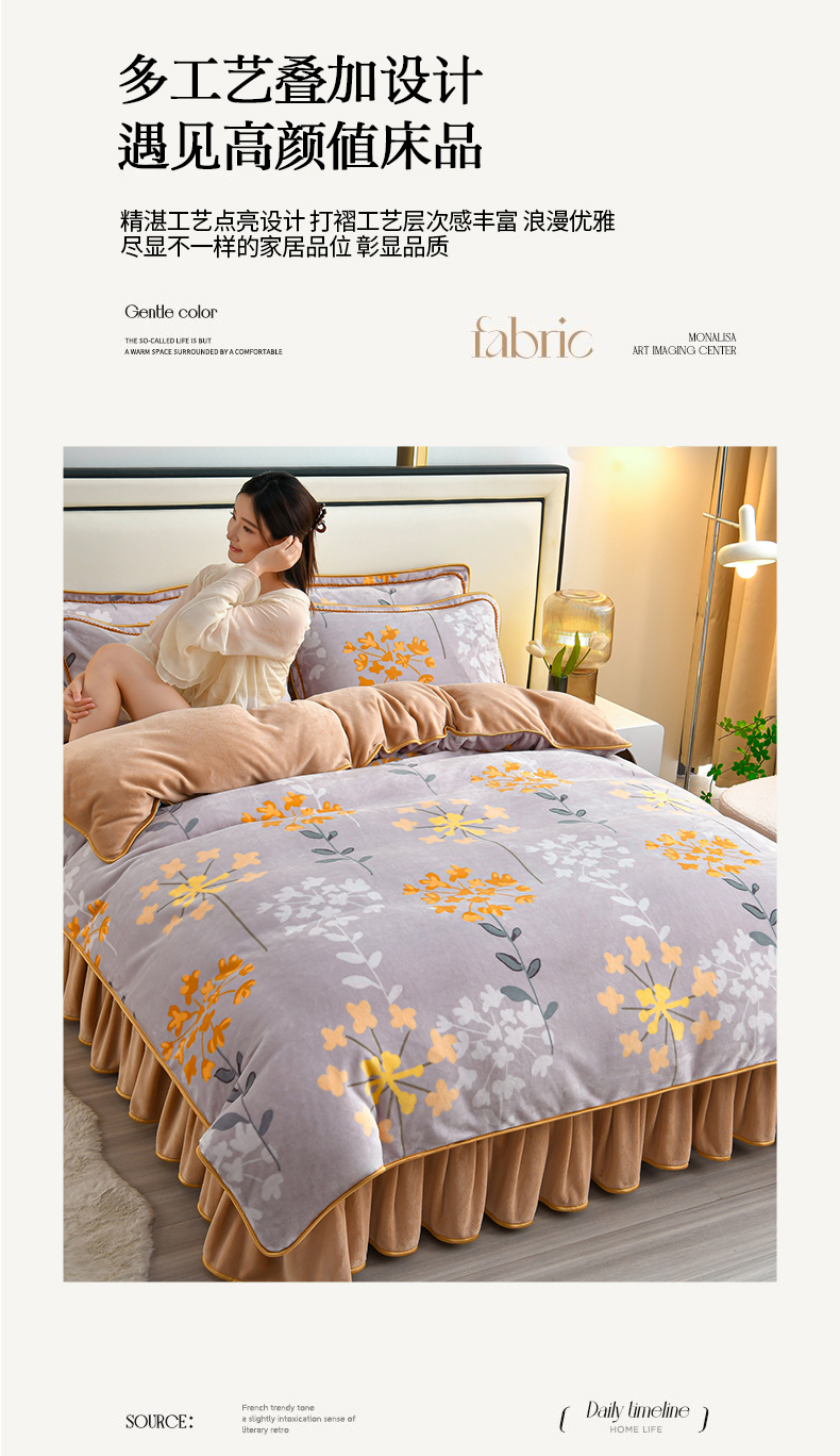 (总)橘姿 2025新款8-9斤床裙款牛奶绒四件套金貂绒法兰绒宝宝绒,蝶舞花香,芳颜,荷塘月色,简约时尚,静若幽香,乐薇花园,玫瑰情缘,鹿之恋,天生一对,邂逅,心相印,一鹿有你,时尚潮流,银杏叶语,爱恋粉,爱情花语,爱语,爱之依恋,百合情缘,发财树,富贵牡丹,花香怡人,花样情怀,花语,欢乐兔,蓝大格,浪漫甜心,暖意,青花瓷韵,情人草灰,深林麋鹿,时尚豹纹,时尚小熊,相爱一生大红,心动萌宝,幸运树,叶叶枫情,一叶倾心,英伦时尚,在一起