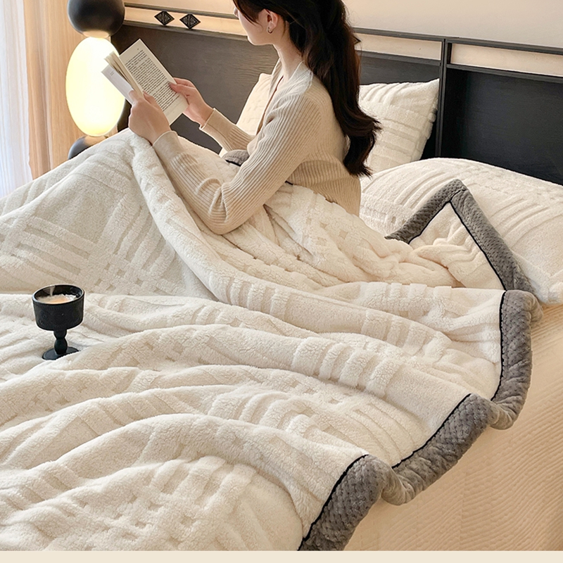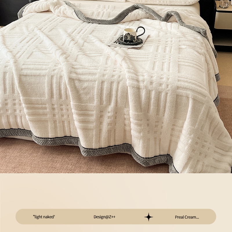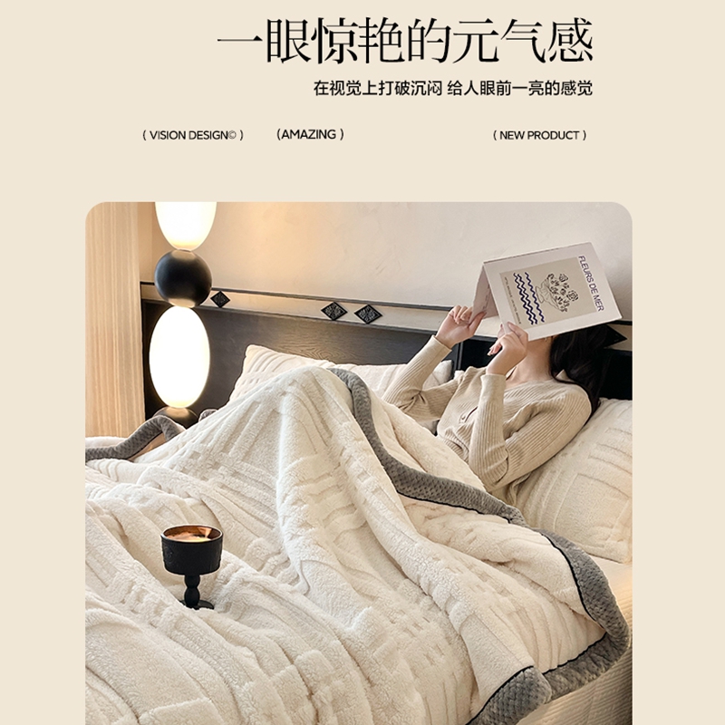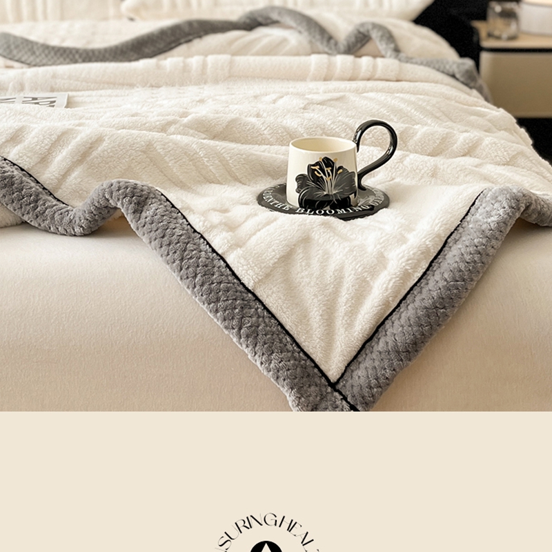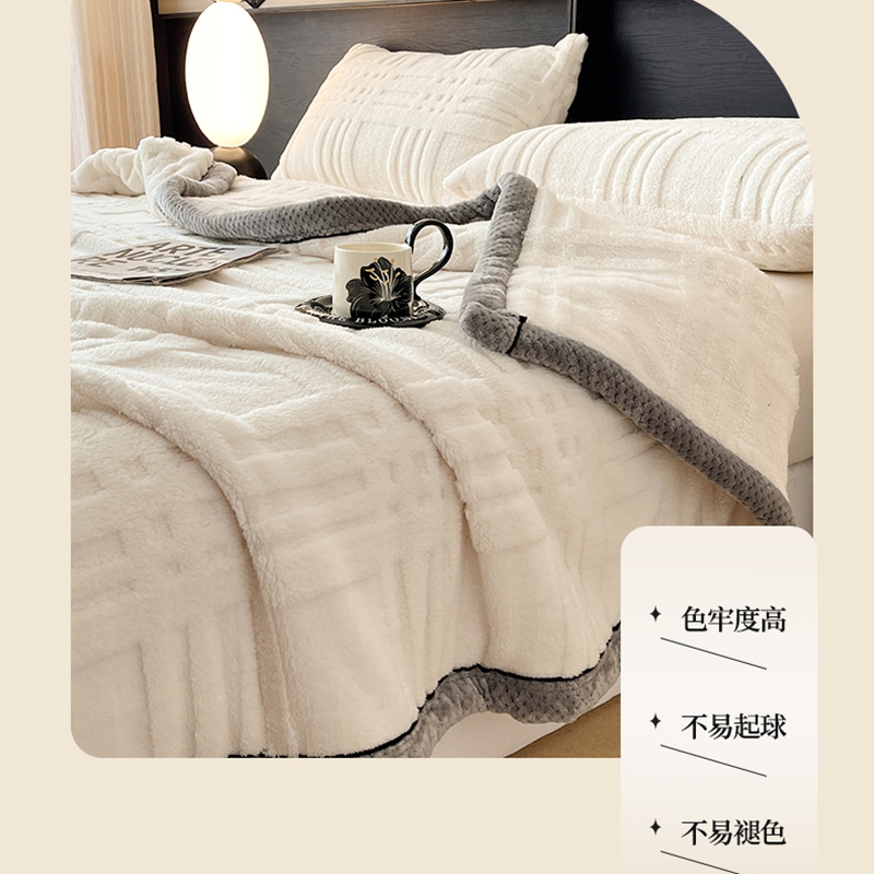 欧邦 2025新款包边舒棉绒双面绒毛毯-格调系列 格调-霜白